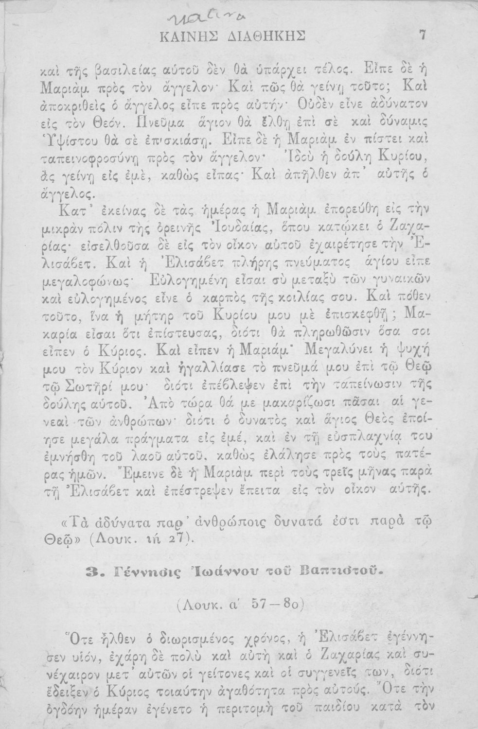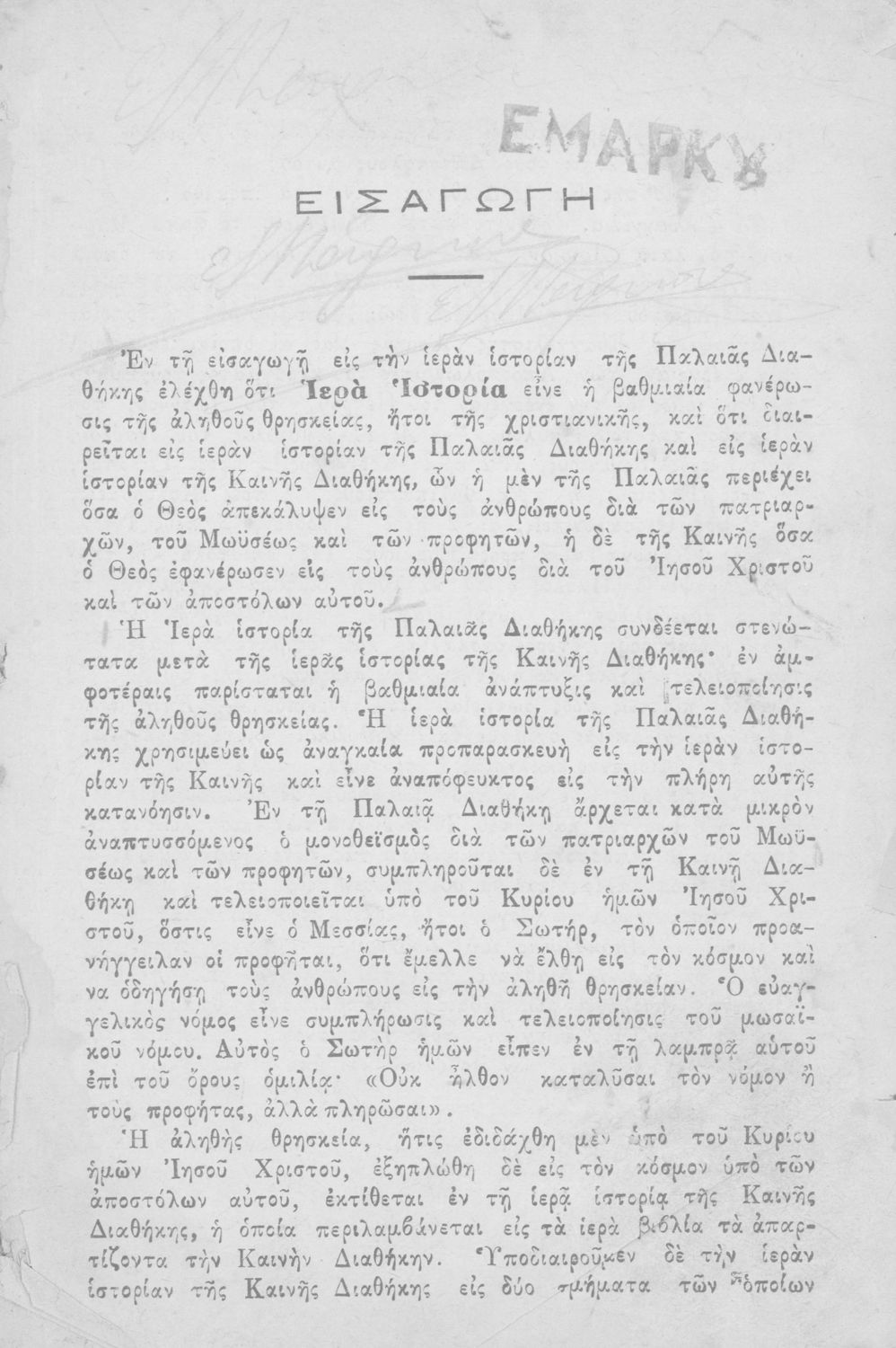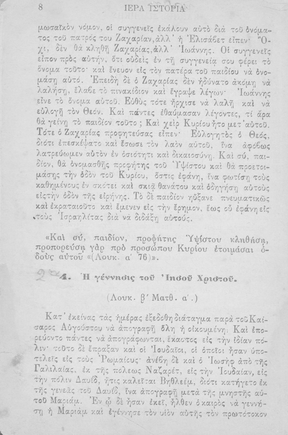 Σχολικό εγχειρίδιο Θρησκευτικών για τα Ελληνικά Σχολεία και τα Παρθεναγωγεία που αποτελεί μια εξιστόρηση της Καινής Διαθήκης από την γέννηση του Ιησού Χριστού ως το έργο των Αποστόλων