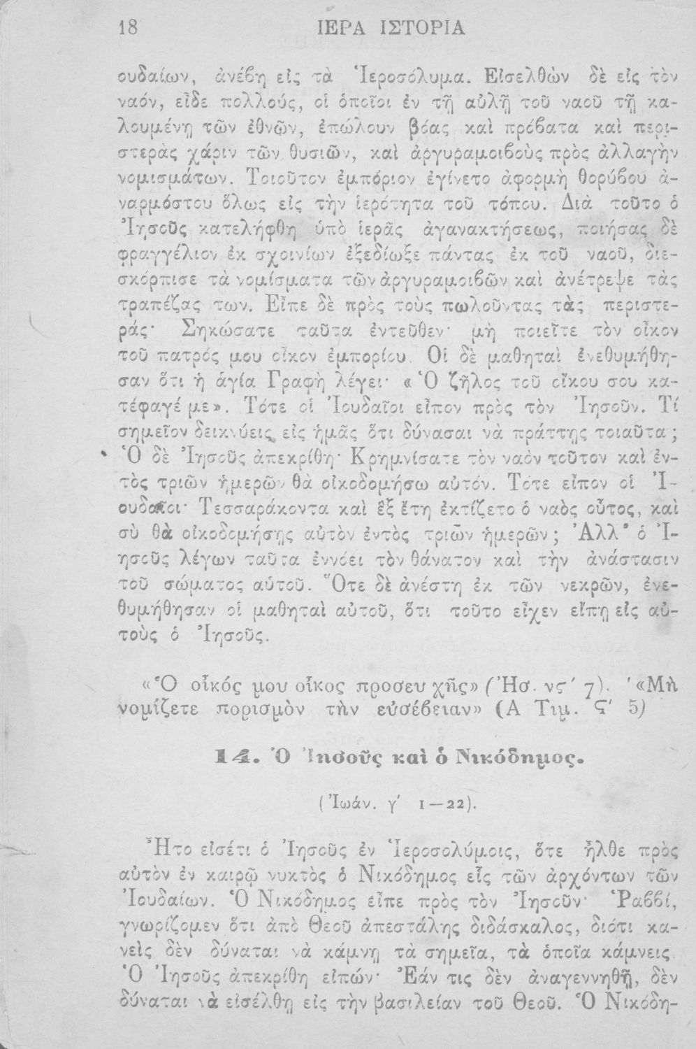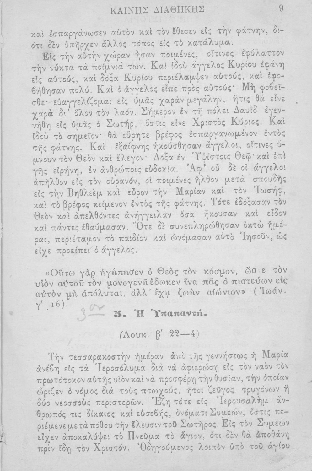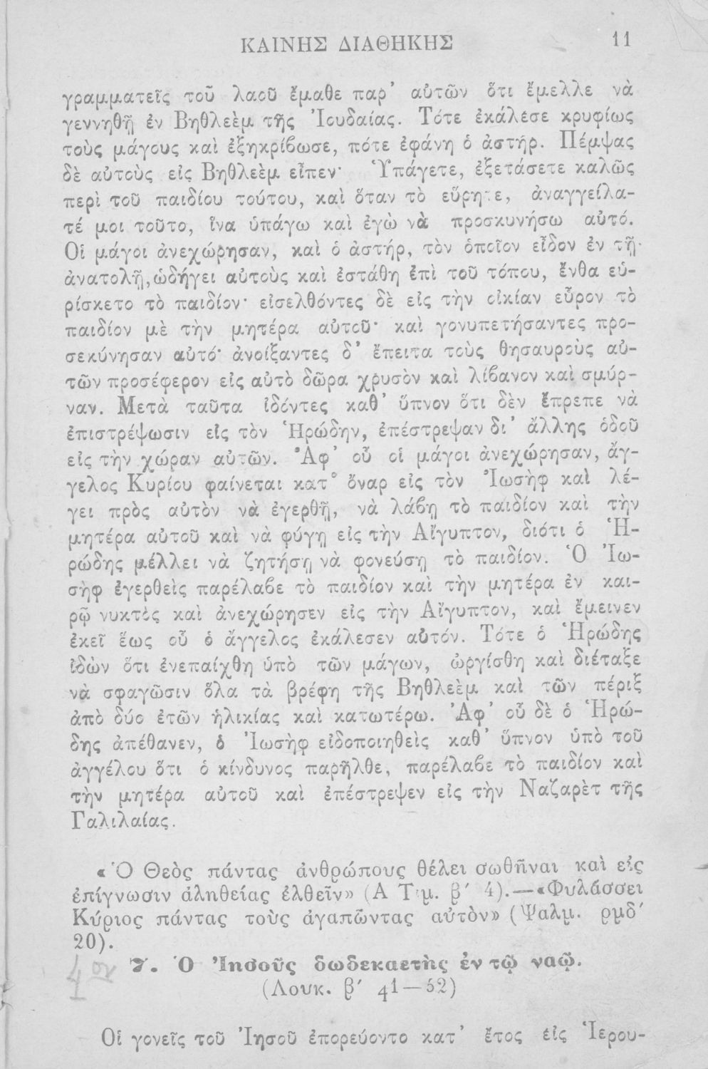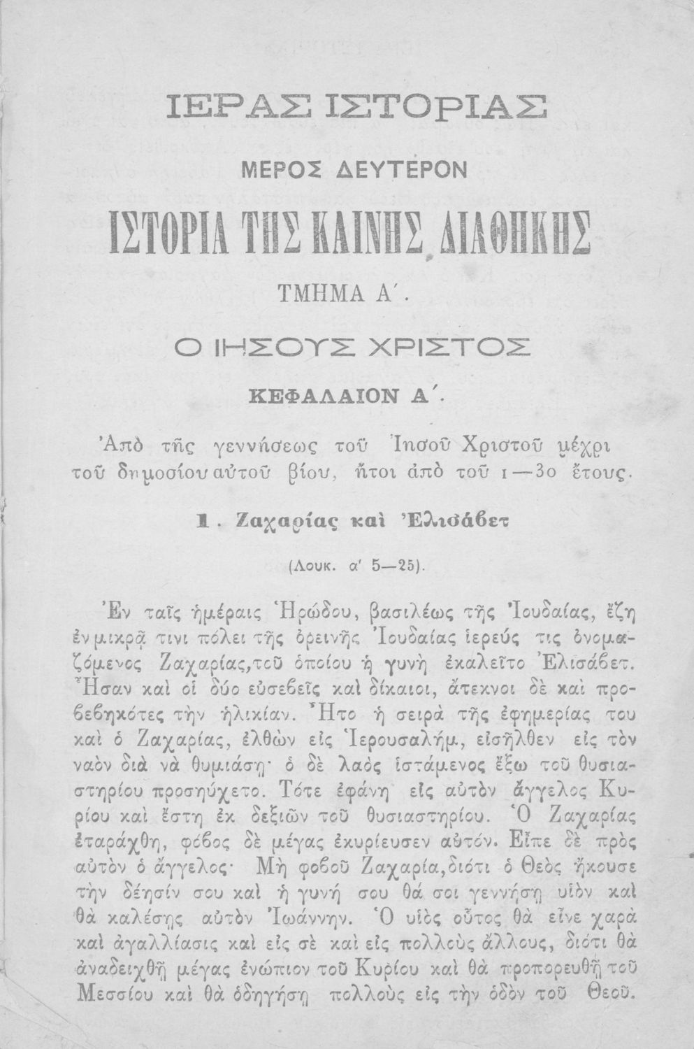 Σχολικό εγχειρίδιο Θρησκευτικών για τα Ελληνικά Σχολεία και Παρθεναγωγεία που συνιστά μία εξιστόρηση της Καινής Διαθήκης από τη γέννηση της Θεοτόκου ως την ανάληψη του Χριστού και τη δράση των Αποστόλων.