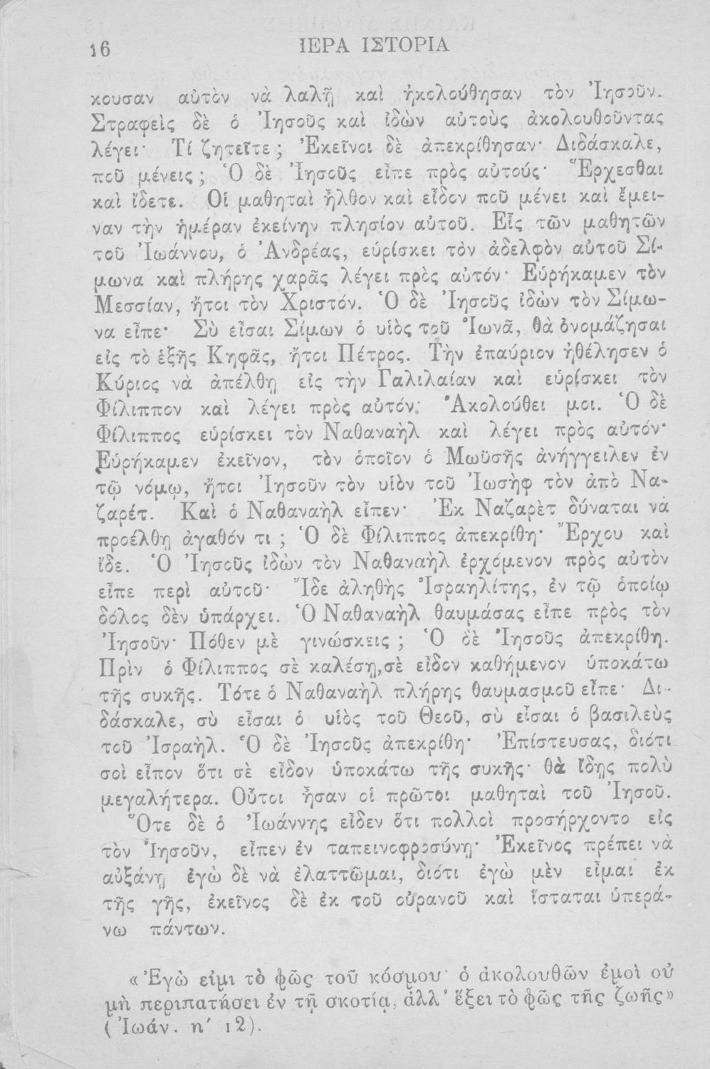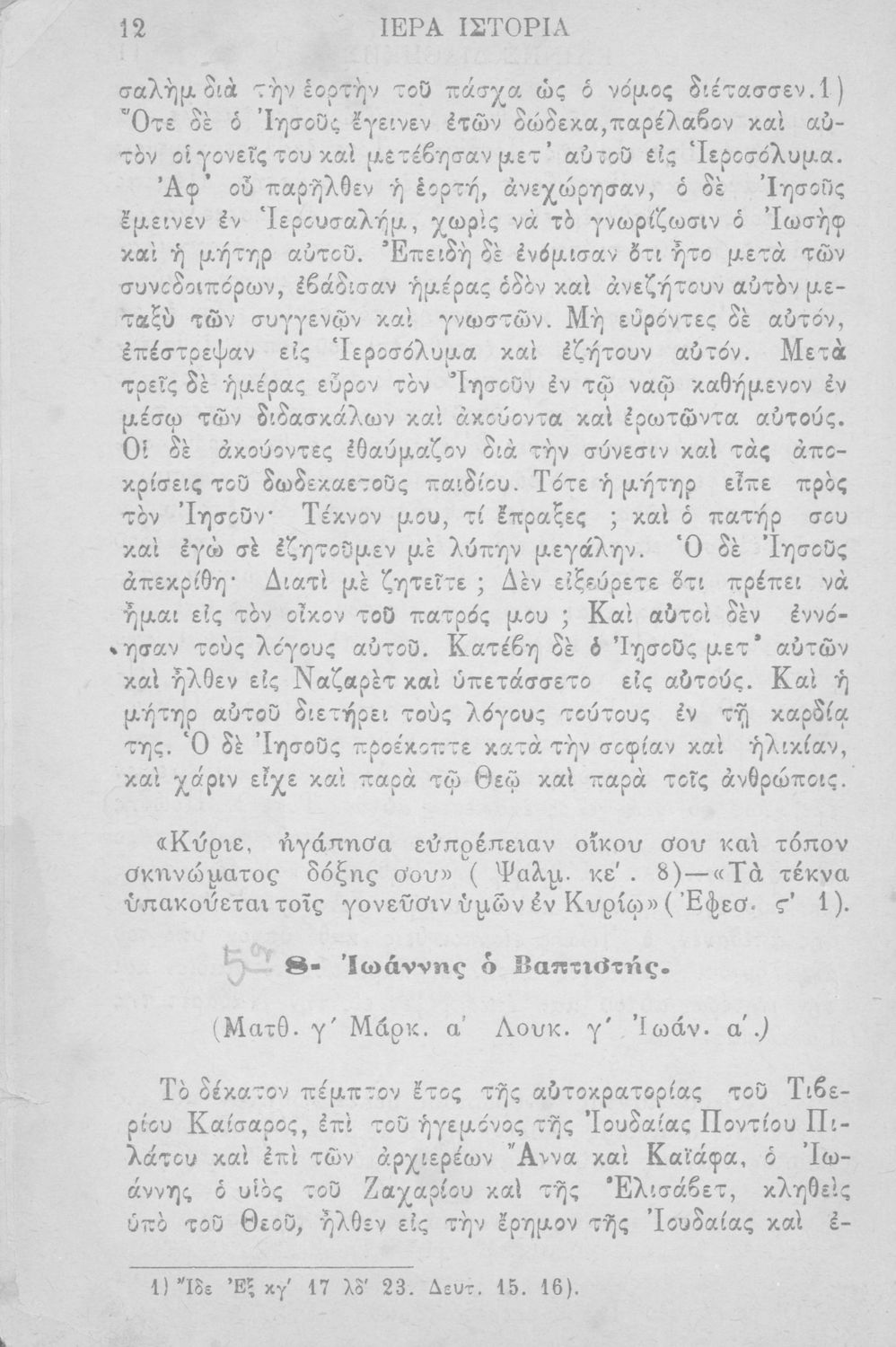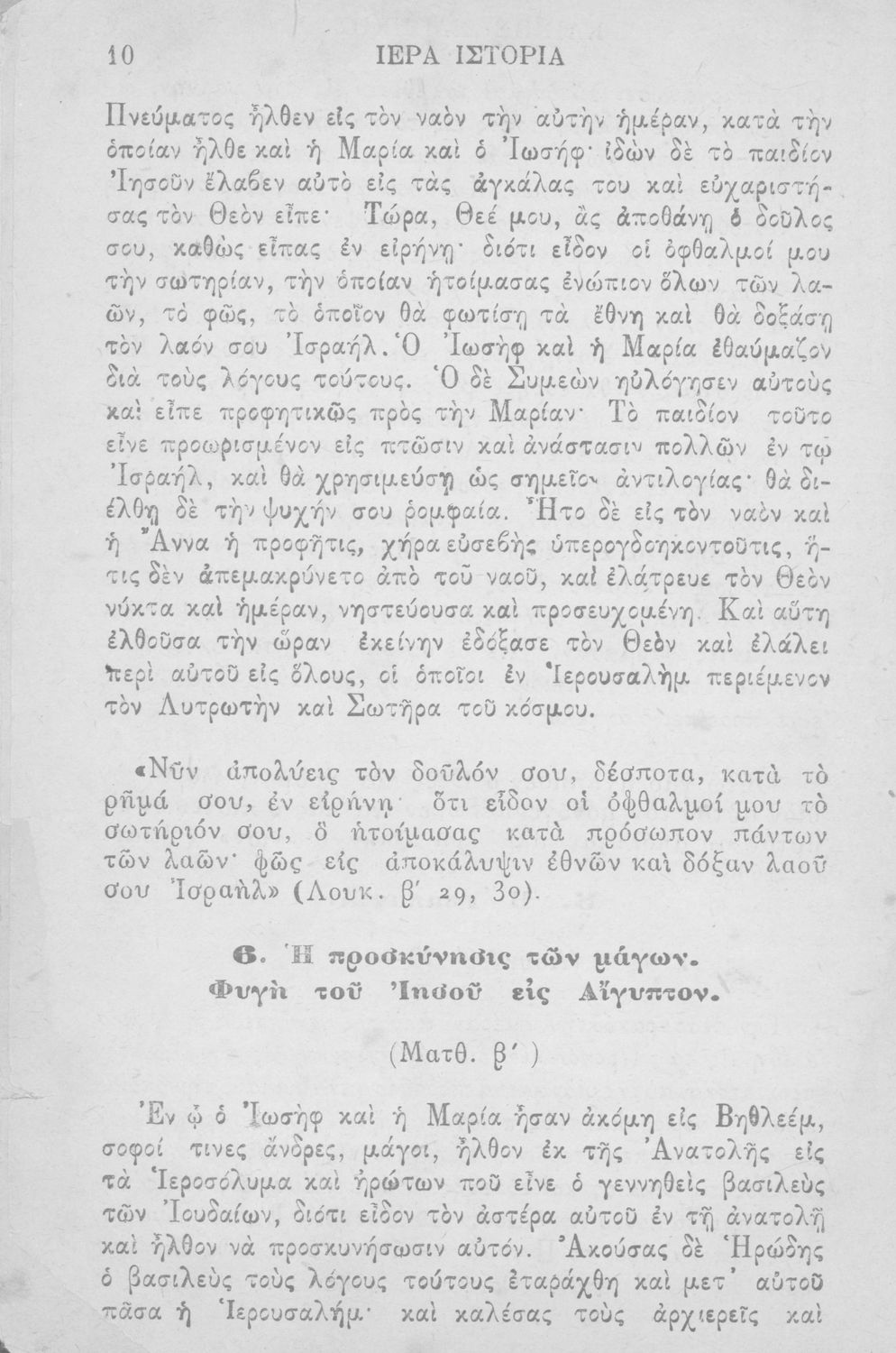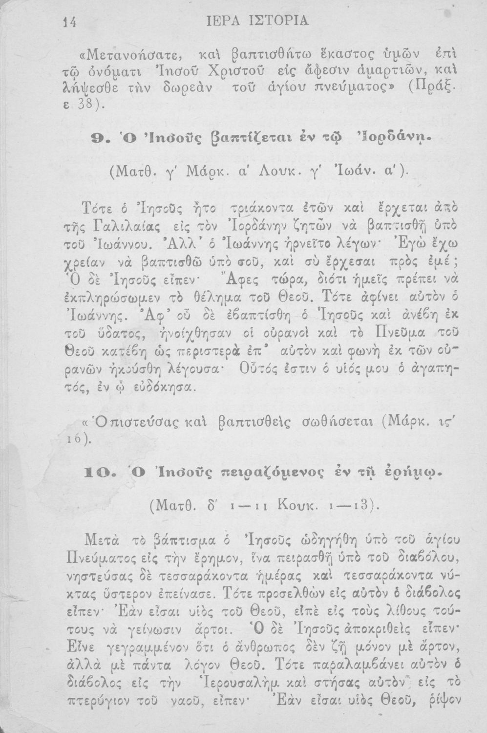 Σχολικό εγχειρίδιο Θρησκευτικών για τα Ελληνικά Σχολεία και Παρθεναγωγεία που συνιστά μία εξιστόρηση της Καινής Διαθήκης από τη γέννηση της Θεοτόκου ως την ανάληψη του Χριστού και τη δράση των Αποστόλων.