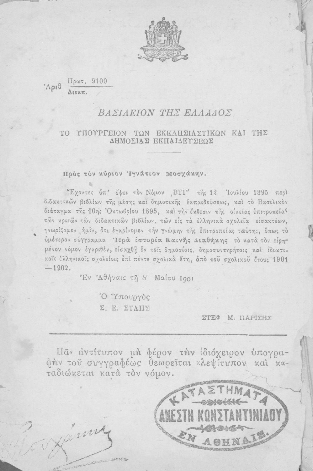 Υπουργική απόφαση / Σύμβαση: 9100/8-5-1901