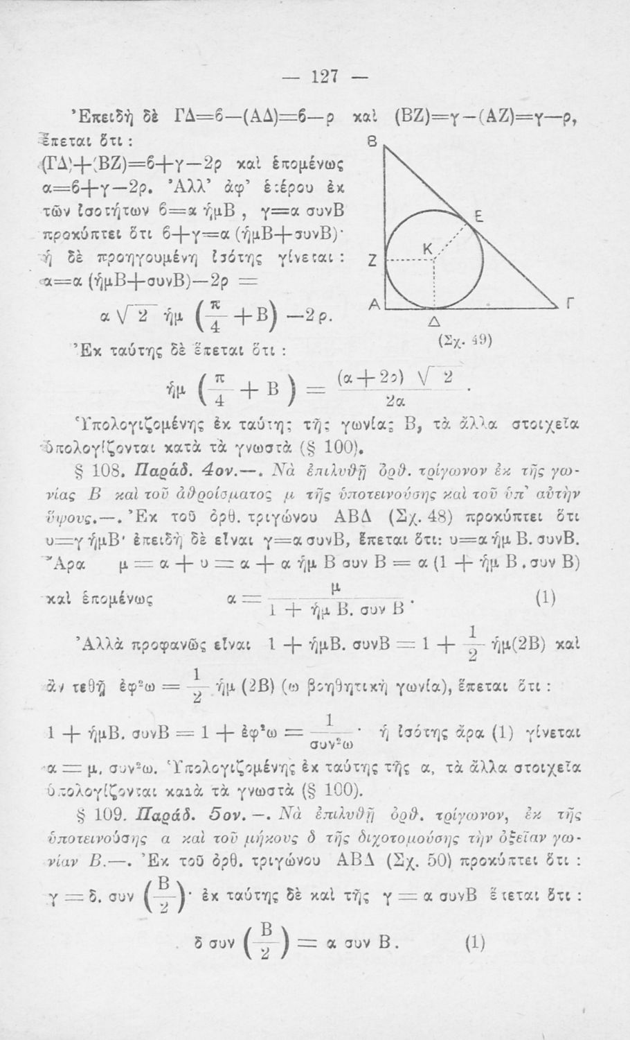 Σχολικό εγχειρίδιο Ευθύγραμμης Τριγωνομετρίας για τους μαθητές των Πρακτικών Λυκείων, των σπουδαστών των Μαθηματικών Φυσικής Χημείας και των μαθητών των Στρατιωτικών Σχολών που περιλαμβάνει εισαγωγή στην ...