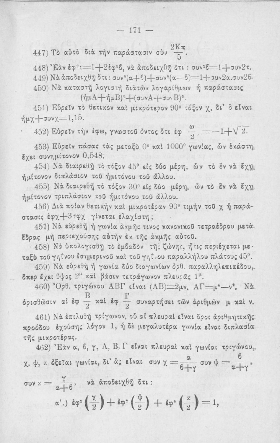 Ευθύγραμμος τριγωνομετρία προς χρήσιν των μαθητών των Πρακτικών Λυκείων, των σπουδαστών των μαθηματικών, φυσικής, χημείας και των μαθητών των Στρατιωτικών Σχολών