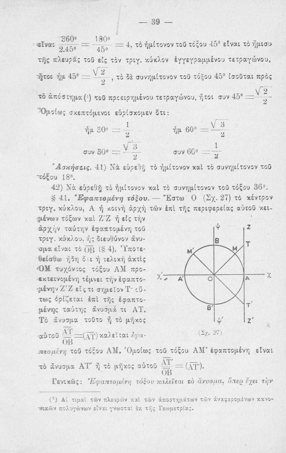 Σχολικό εγχειρίδιο Ευθύγραμμης Τριγωνομετρίας για τους μαθητές των Πρακτικών Λυκείων, των σπουδαστών των Μαθηματικών Φυσικής Χημείας και των μαθητών των Στρατιωτικών Σχολών που περιλαμβάνει εισαγωγή στην τριγωνομετρία και εστιάζει τις σχέσεις υπολογισμού μέσω τριγωνομετρικών εξισώσεων και τριγωνομετρικών συστημάτων.
