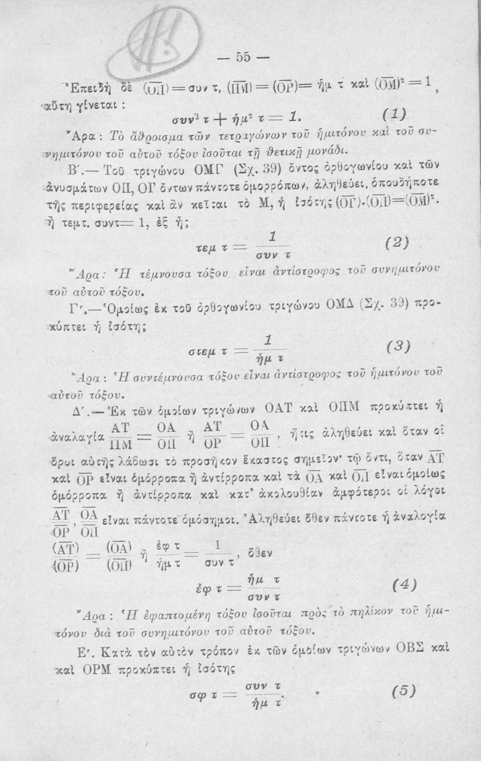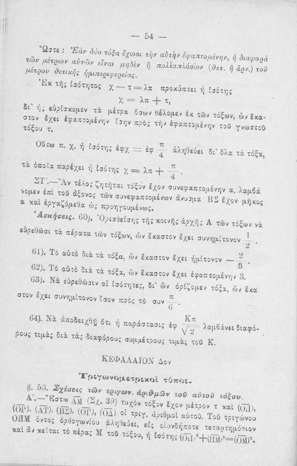 LDR 01735 2200205 4500 035 ## _a01-18208a 040 ## _aΙνστιτούτο Εκπαιδευτικής Πολιτικής 041 ## _ael 100 ## _aΝικολ. Δ. Νικολάου 110 ## _a18208a 245 0# _aΕυθύγραμμος τριγωνομετρία προς χρήσιν των μαθητών των Πρακτικών Λυκείων, των σπουδαστών των μαθηματικών, φυσικής, χημείας και των μαθητών των Στρατιωτικών Σχολών 250 ## _a1η Έκδοση 260 ## _aΑθήνα _bΔημ. Ν. Τζάκας, Στεφ. Δελαγραμμάτικας _c1922 300 ## _a175 _bΣκίτσα (ασπρόμαυρα) _c21 520 ## _aΣχολικό εγχειρίδιο Ευθύγραμμης Τριγωνομετρίας για τους μαθητές των Πρακτικών Λυκείων, των σπουδαστών των Μαθηματικών Φυσικής Χημείας και των μαθητών των Στρατιωτικών Σχολών που περιλαμβάνει εισαγωγή στην τριγωνομετρία και εστιάζει τις σχέσεις υπολογισμού μέσω τριγωνομετρικών εξισώσεων και τριγωνομετρικών συστημάτων. 521 ## _aΠρακτικό Λύκειο 522 ## _aΕλλάδα 546 ## _aΑπλή καθαρεύουσα 563 ## _aΣκληρό Εξώφυλλο 650 #4 _aΓραφικές παραστάσεις _aΗμίτονο _aΣυνημίτονο _aΤόξο _aΤριγωνομετρικές εξισώσεις _aΤριγωνομετρικές συναρτήσεις