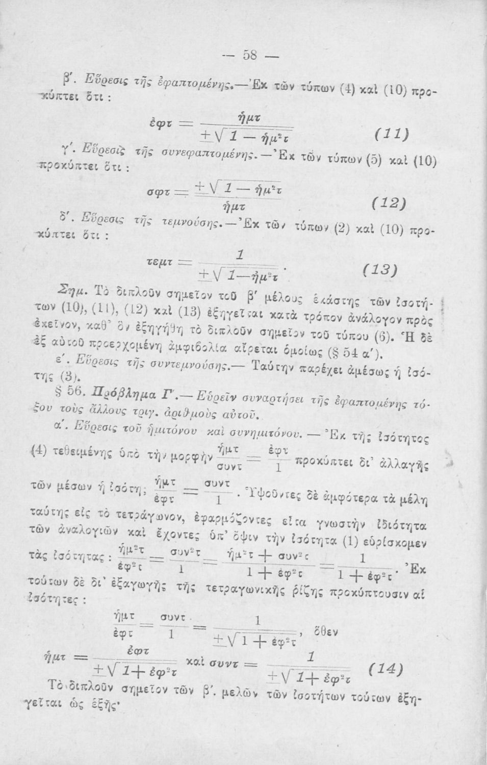 Σχολικό εγχειρίδιο Ευθύγραμμης Τριγωνομετρίας για τους μαθητές των Πρακτικών Λυκείων, των σπουδαστών των Μαθηματικών Φυσικής Χημείας και των μαθητών των Στρατιωτικών Σχολών που περιλαμβάνει εισαγωγή στην τριγωνομετρία και εστιάζει τις σχέσεις υπολογισμού μέσω τριγωνομετρικών εξισώσεων και τριγωνομετρικών συστημάτων.