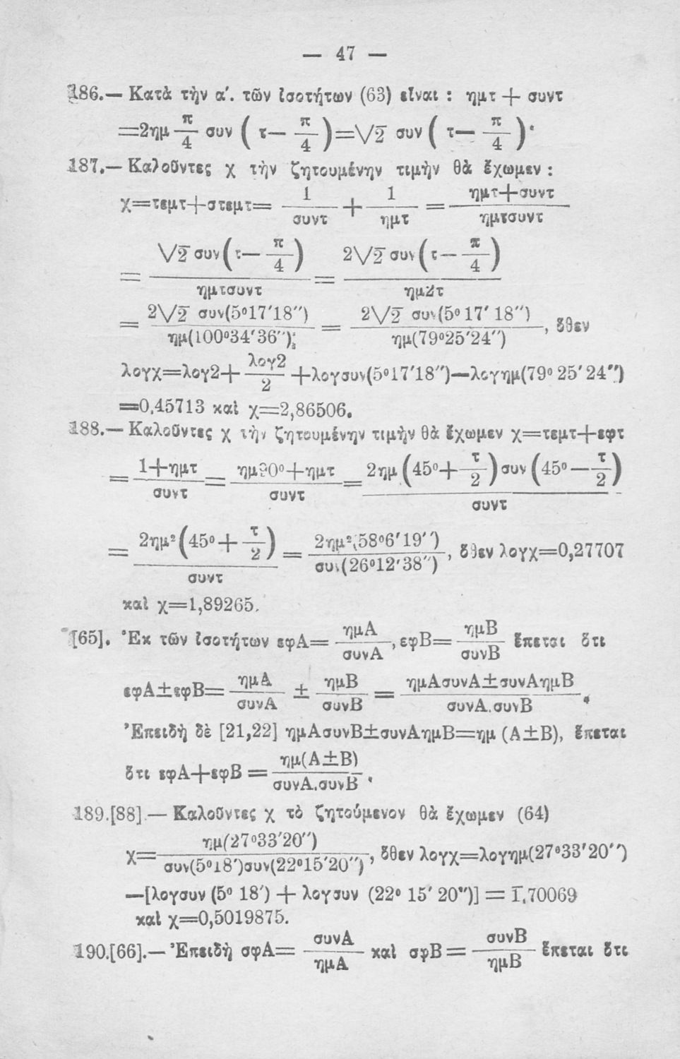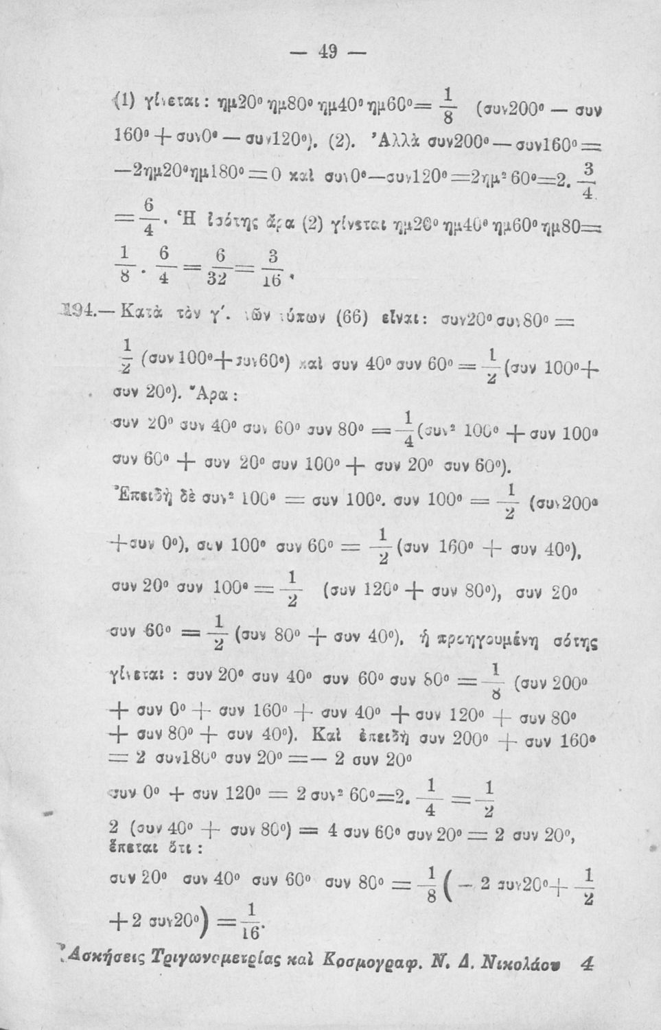 Ασκήσεις Τριγωνομετρίας και Κοσμογραφίας, ήτοι Λύσεις δια των εν τη Τριγωνομετρία και Κοσμογραφία Νικόλαου Δ. Νικολάου