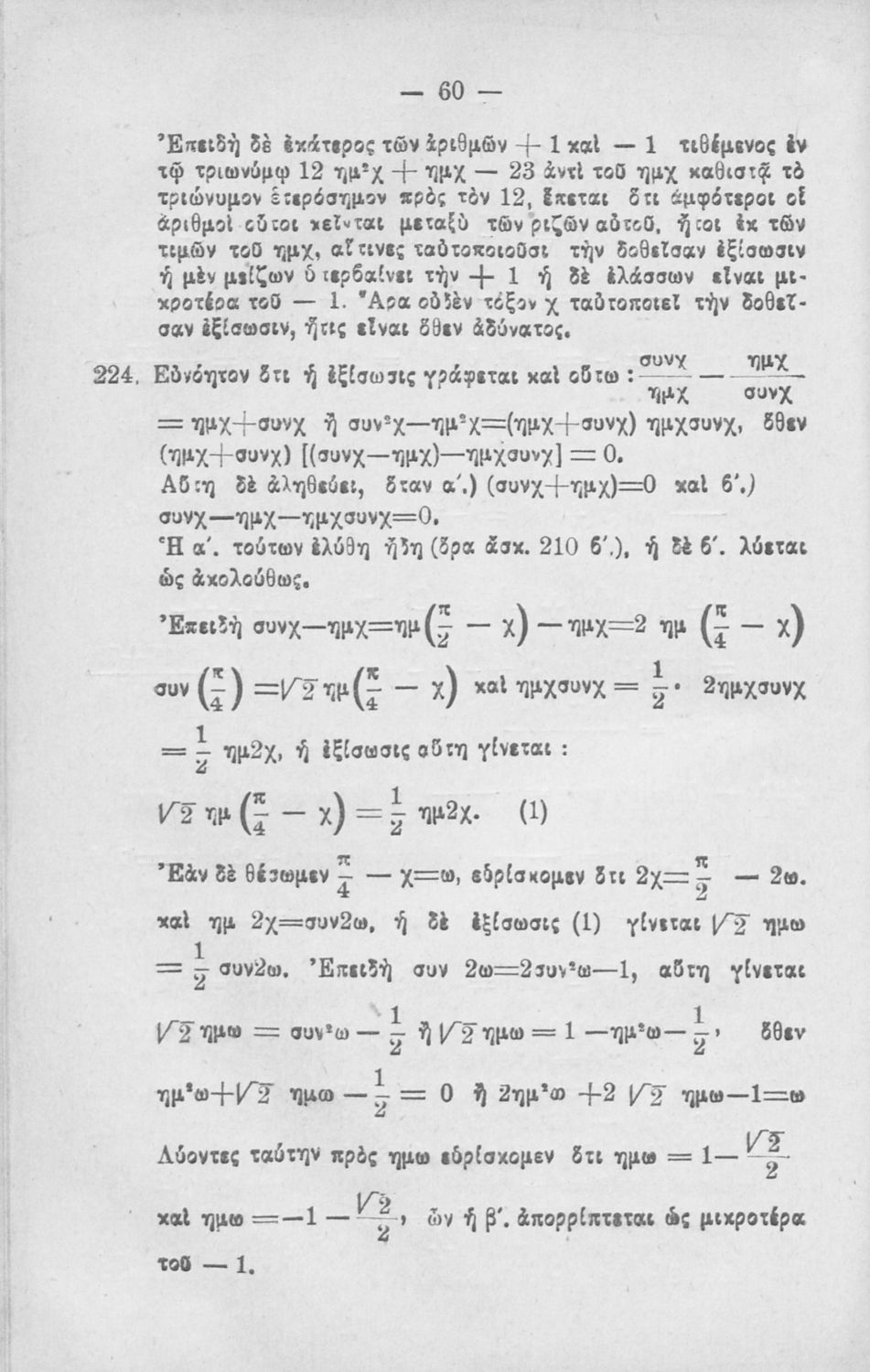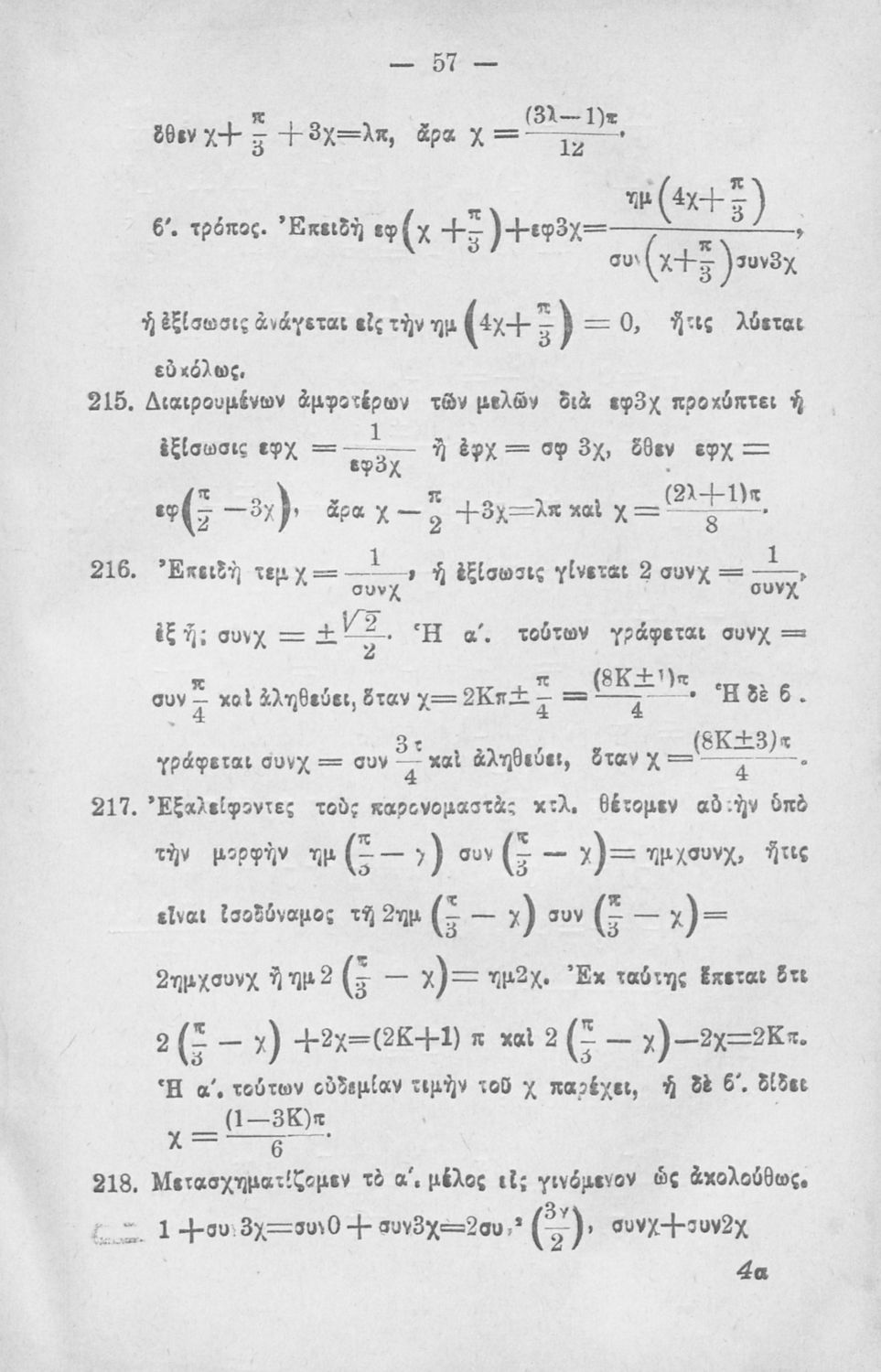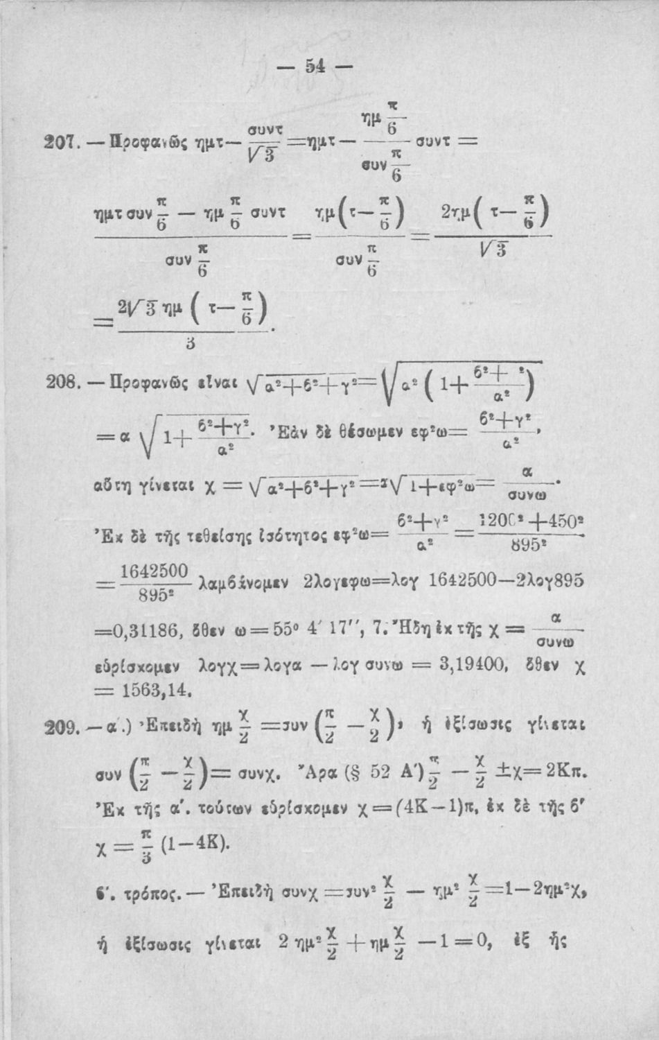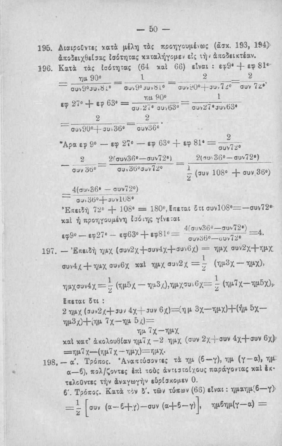 Σχολικό εγχειρίδιο Τριγωνομετρίας για τις Δ΄, Ε΄ και ΣΤ΄ Γυμνασίου που περιλαμβάνει θεωρία και ασκήσεις. Φέρει το σύμβολο της δικτατορίας.
