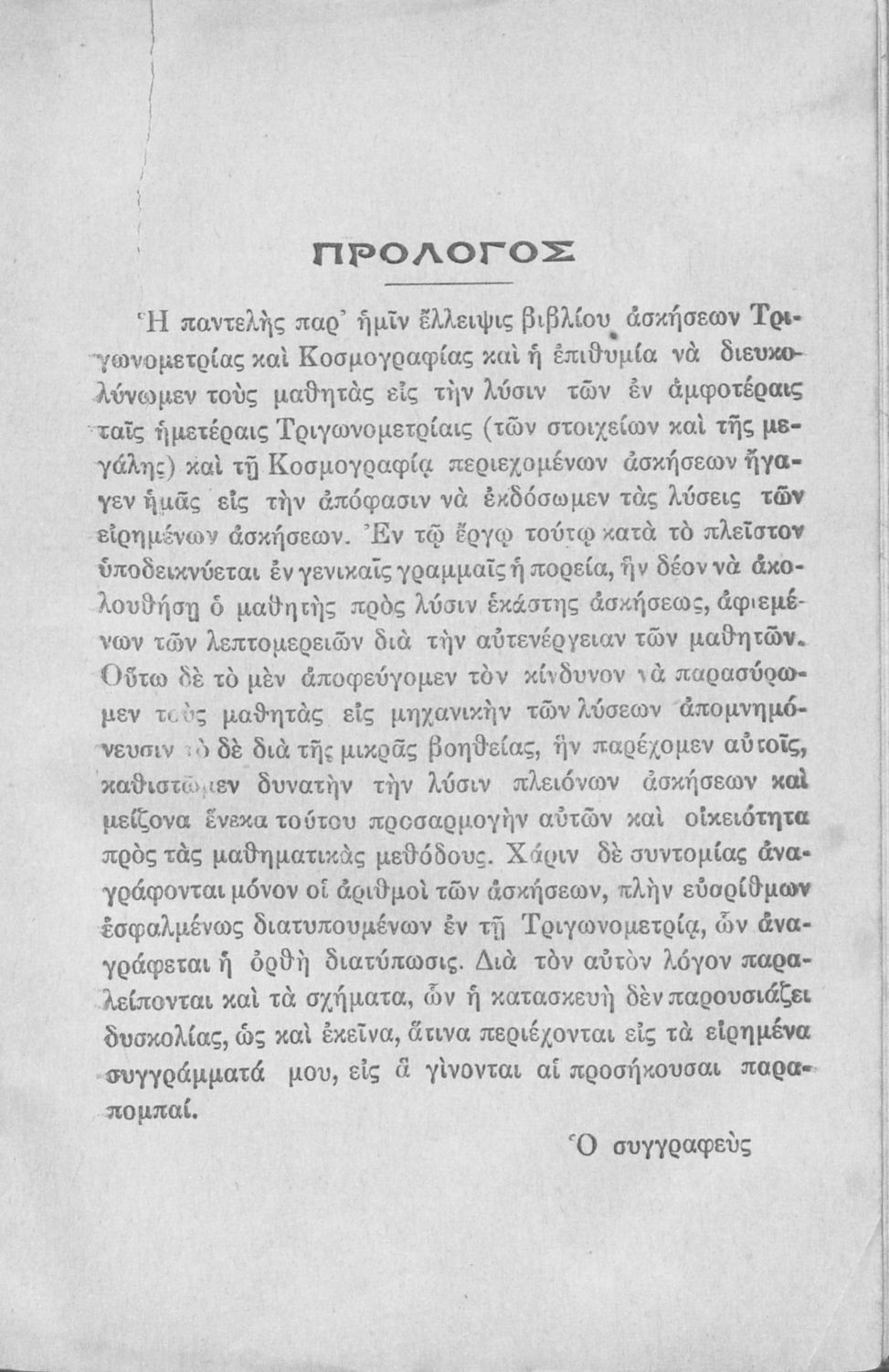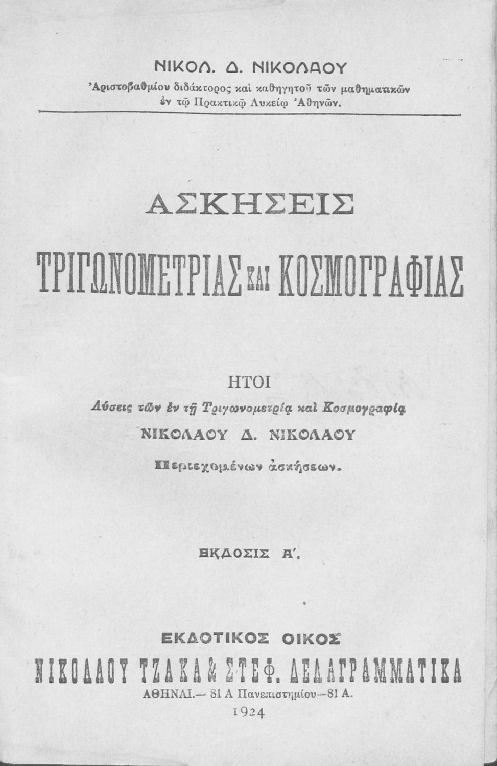 Μαθητικό βοήθημα Τριγωνομετρίας και Κοσμογραφίας που περιέχει τις λύσεις των ασκήσεων που περιλαμβάνονται στο εγχειρίδιο Τριγωνομετρία και Κοσμογραφία του ίδιου συγγραφέα.