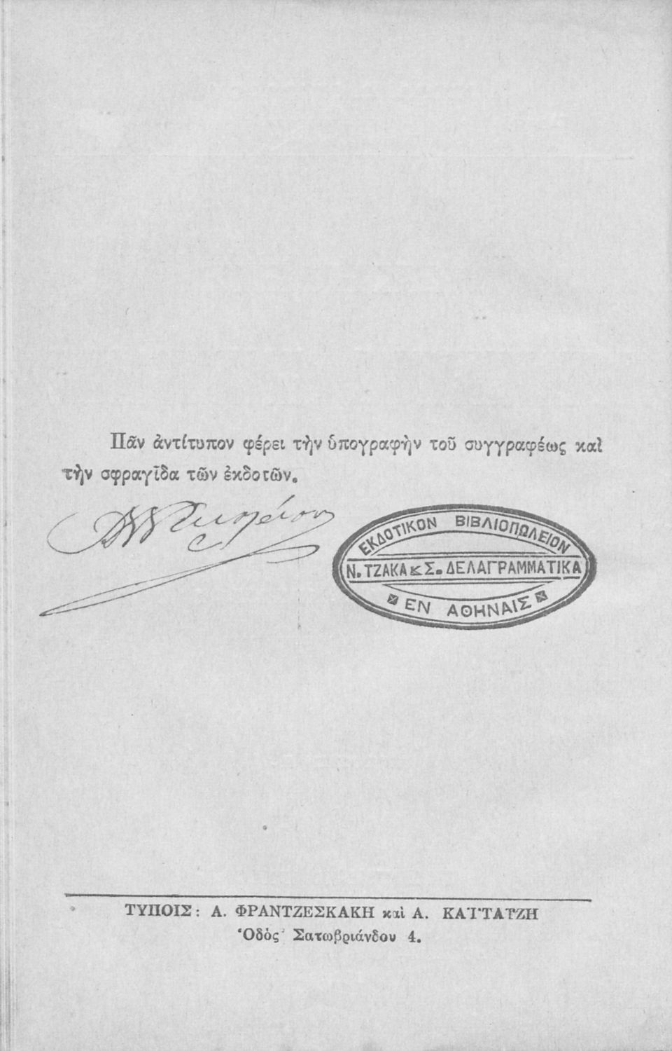 Εκδότης: Δημ. Ν. Τζάκας, Στεφ. Δελαγραμμάτικας Έτος έκδοσης: 1924 Τόπος έκδοσης: Αθήνα Έκδοση: 1η |