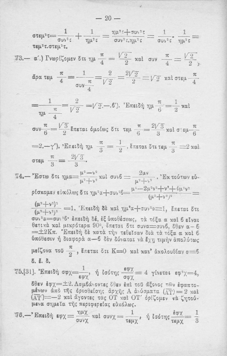 Κωδικός αναγνώρισης: 01-18208b Τίτλος: Ασκήσεις Τριγωνομετρίας και Κοσμογραφίας, ήτοι Λύσεις δια των εν τη Τριγωνομετρία και Κοσμογραφία Νικόλαου Δ. Νικολάου Συγγραφέας: Νικόλαος Δ. Νικολάου Μέγεθος και υπόστρωμα: Μαθητικό βοήθημα, μαλακό εξώφυλλο, 160 σελίδες. |