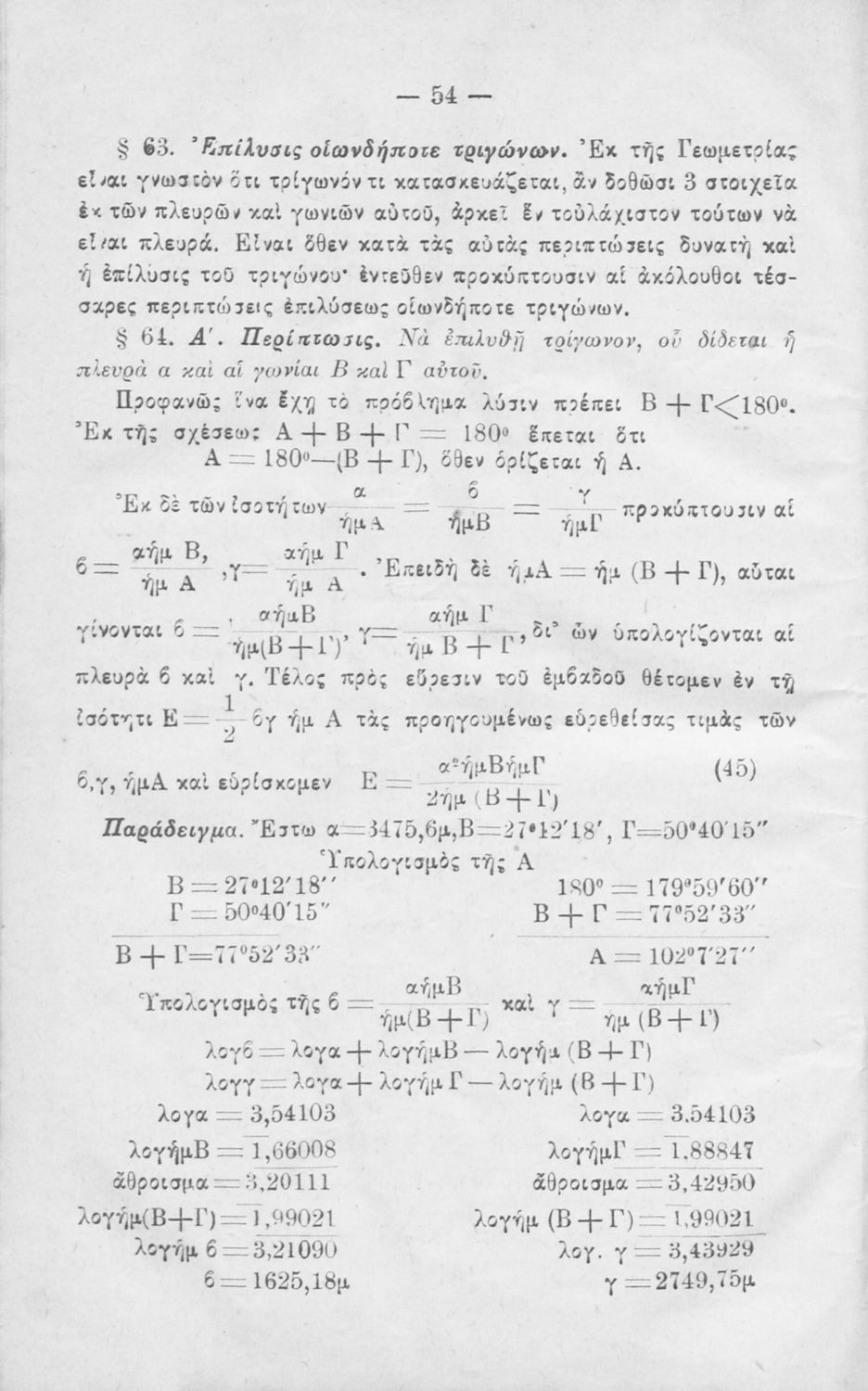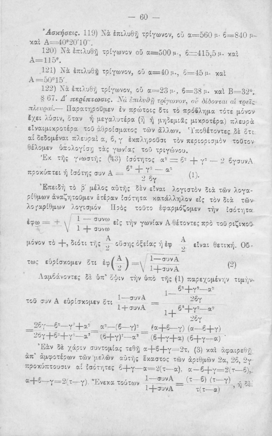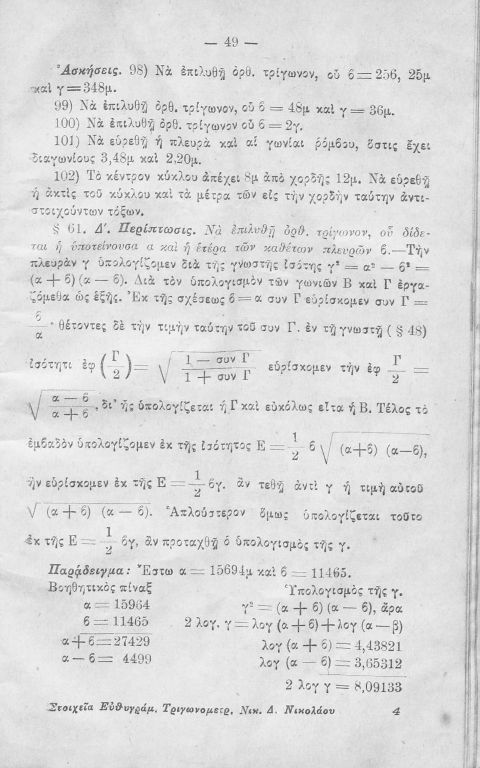 Στοιχεία Ευθύγραμμου Τριγωνομετρίας, Προς χρήσιν των μαθητών και μαθητριών των Γυμνασίων