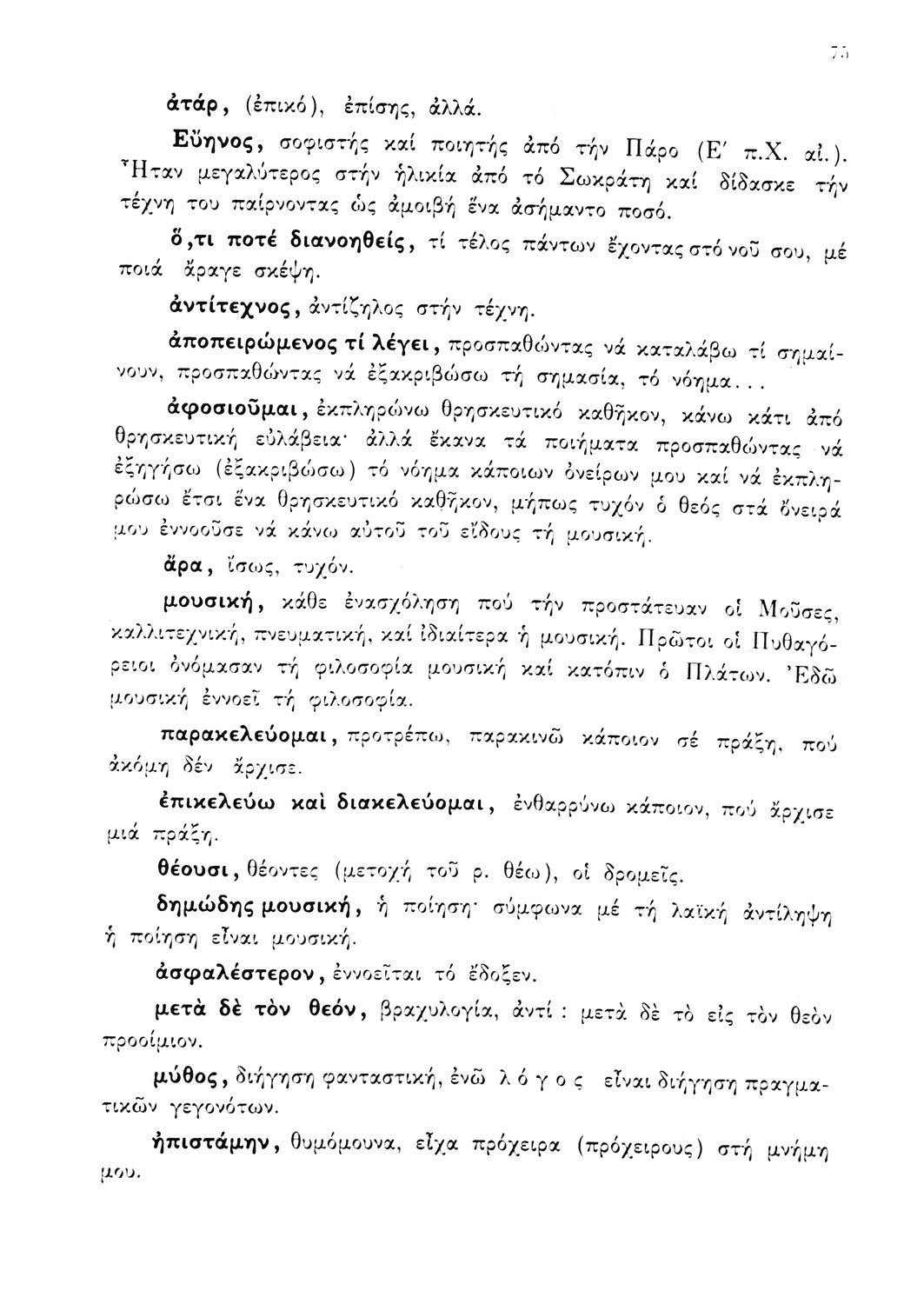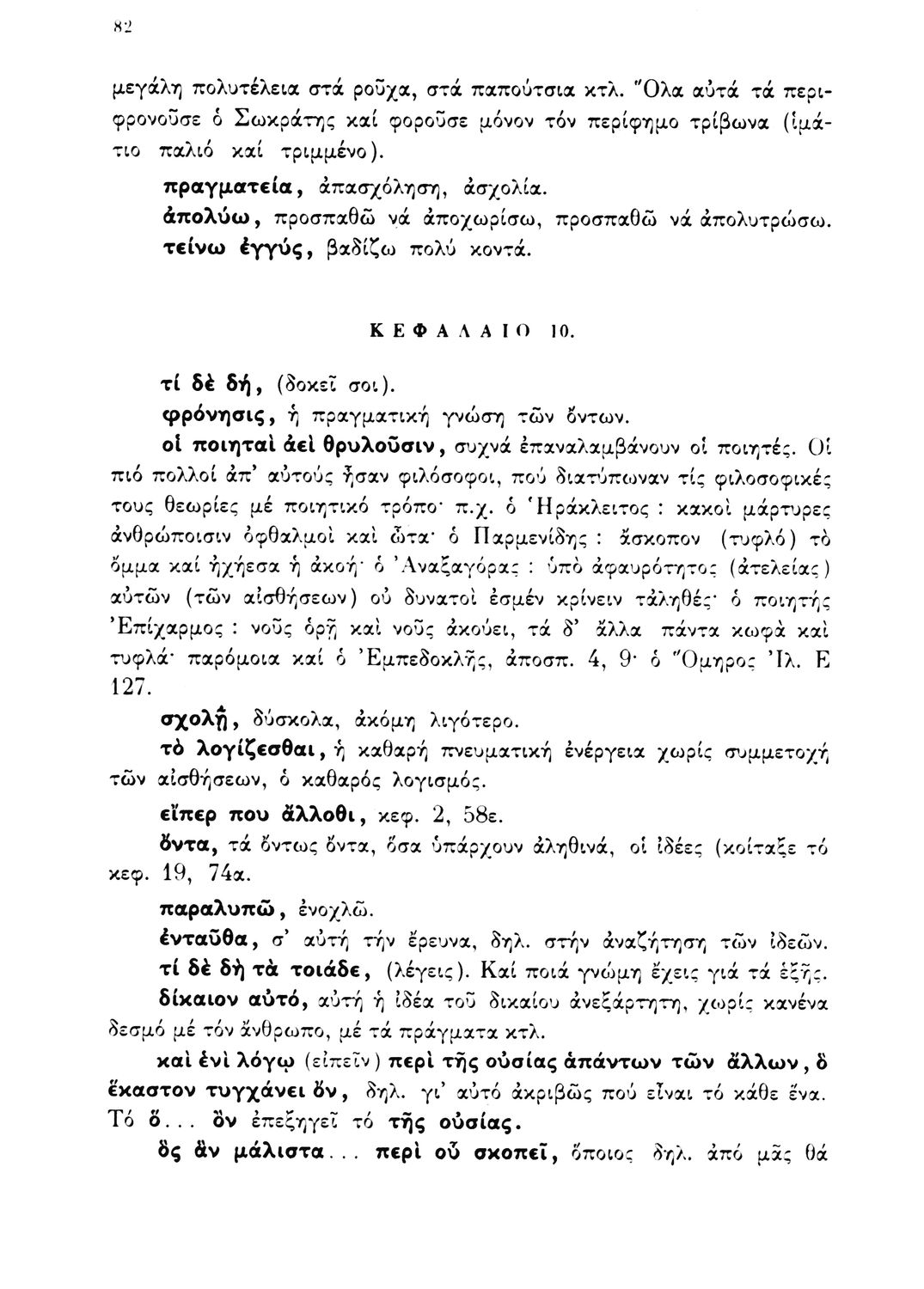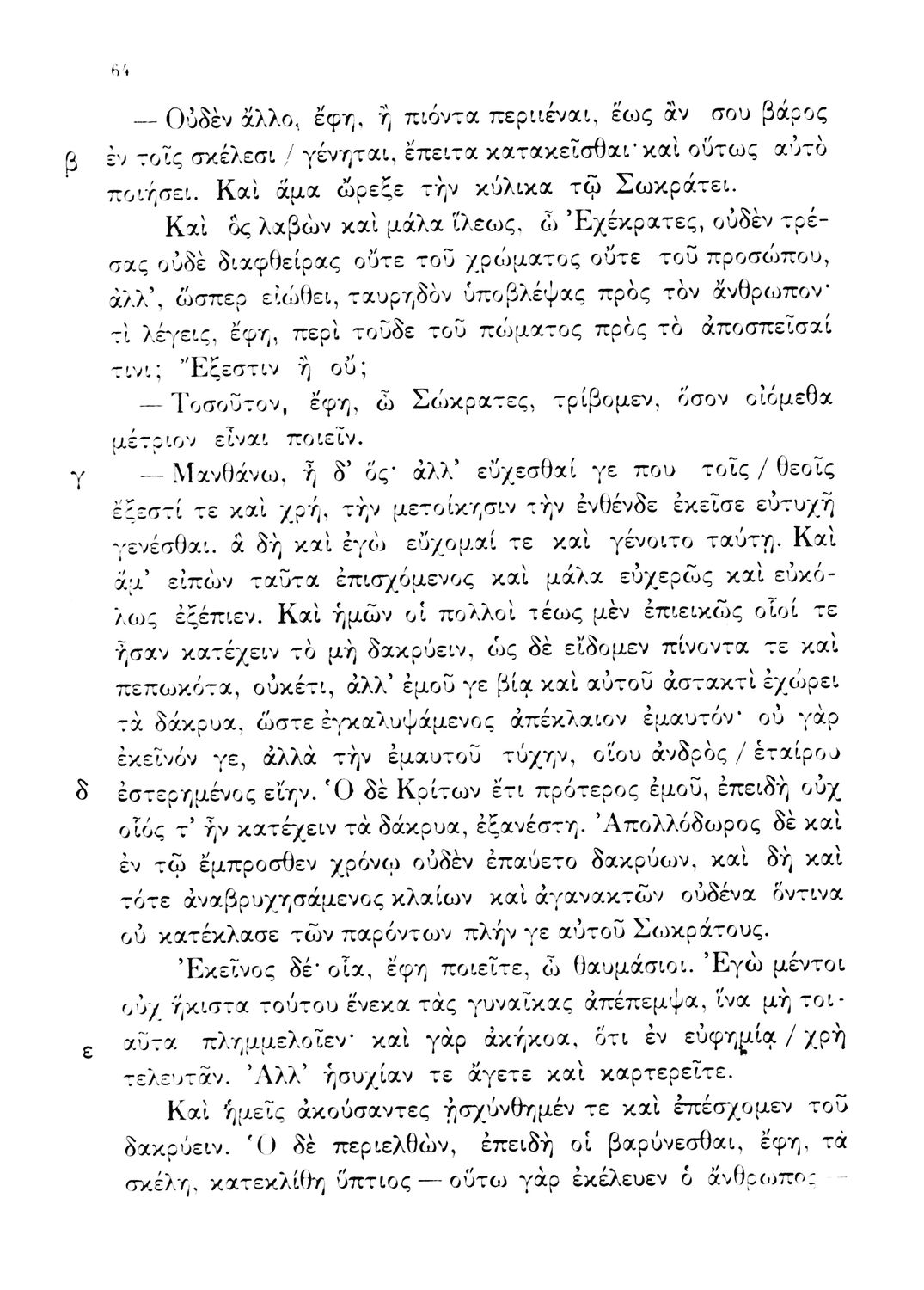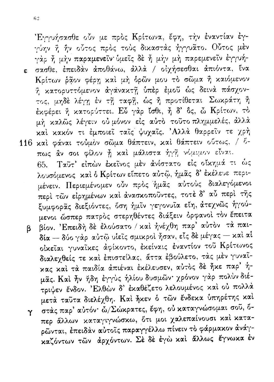 Σχολικό εγχειρίδιο για τις Τάξεις του Γυμνασίου για το μάθημα των Αρχαίων Ελληνικών. Περιλαμβάνει αποσπάσματα του αρχαίου κειμένου από τους διαλόγους του Πλάτωνα. Περιέχει μετάφραση ερμηνευτικά, πραγματολογικά