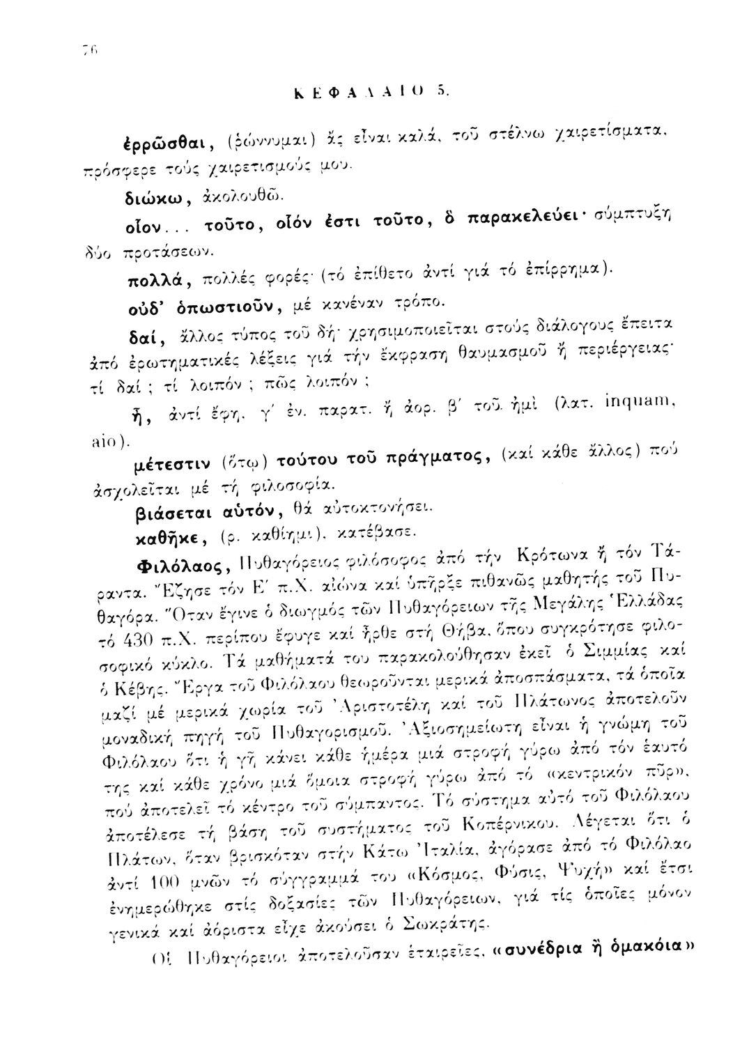 Σχολικό εγχειρίδιο Αρχαίων Ελληνικών της Γ΄ Λυκείου. Το βιβλίο περιέχει δύο έργα του Πλάτωνα, Φαίδων και Πρωταγόρας, όπου ο Σωκράτης συνομιλεί για την έννοια και τις ιδέες της φιλοσοφίας