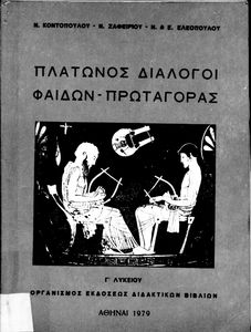 Σχολικό εγχειρίδιο Αρχαίων Ελληνικών της Γ' Λυκείου. Το βιβλίο περιέχει τα δύο έργα του Πλάτωνα, Φαίδων και Πρωταγόρας, όπου ο Σωκράτης συνομιλεί για την έννοια και ιδέες της φιλοσοφίας.