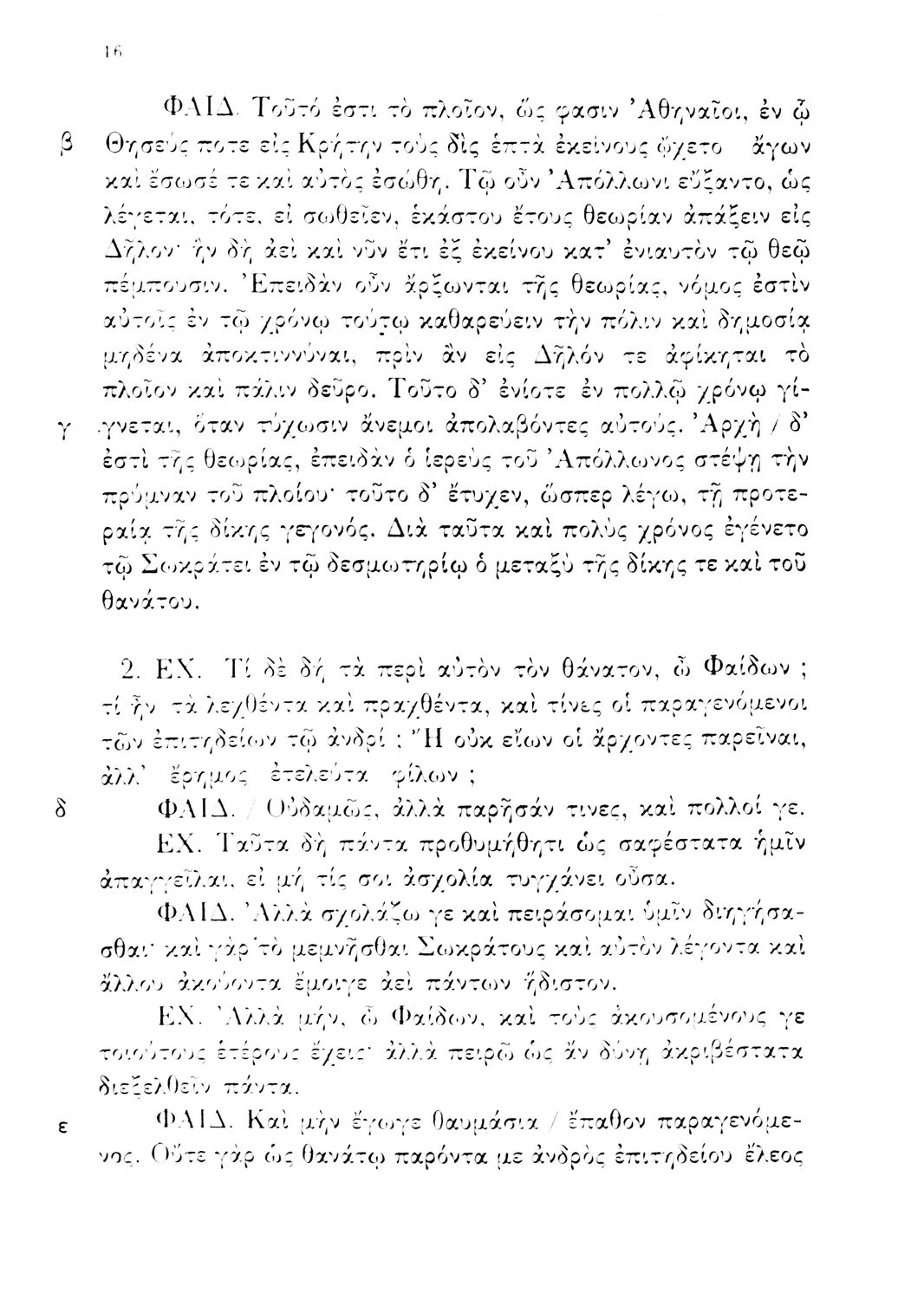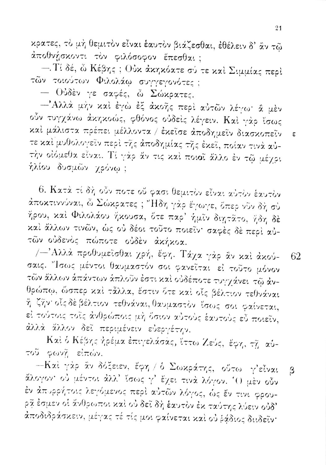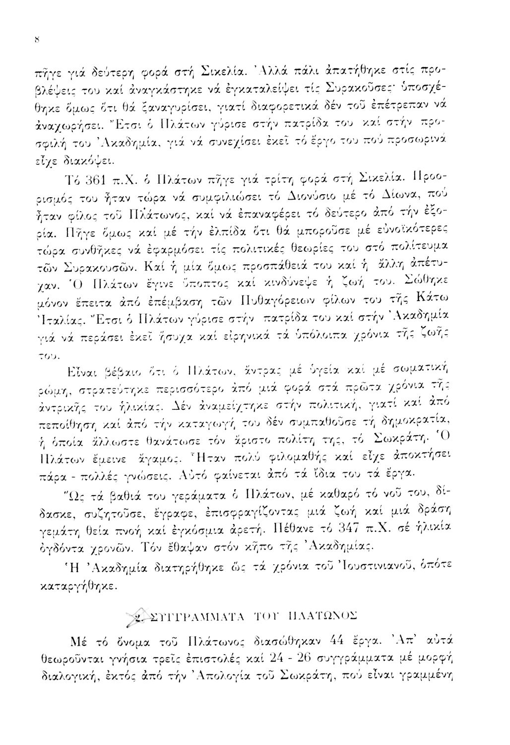 Σχολικό εγχειρίδιο για τις Τάξεις του Γυμνασίου για το μάθημα των Αρχαίων Ελληνικών. Περιλαμβάνει αποσπάσματα του αρχαίου κειμένου από τους διαλόγους του Πλάτωνα. Περιέχει μετάφραση ερμηνευτικά, πραγματολογικά