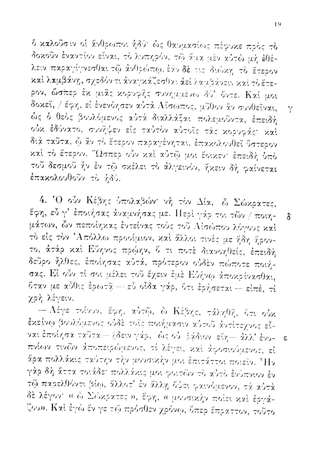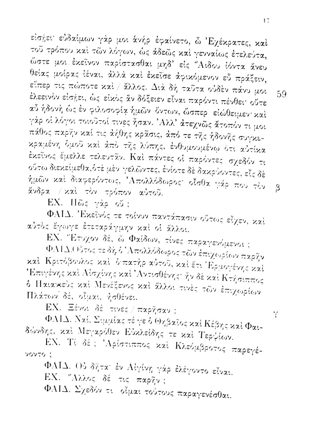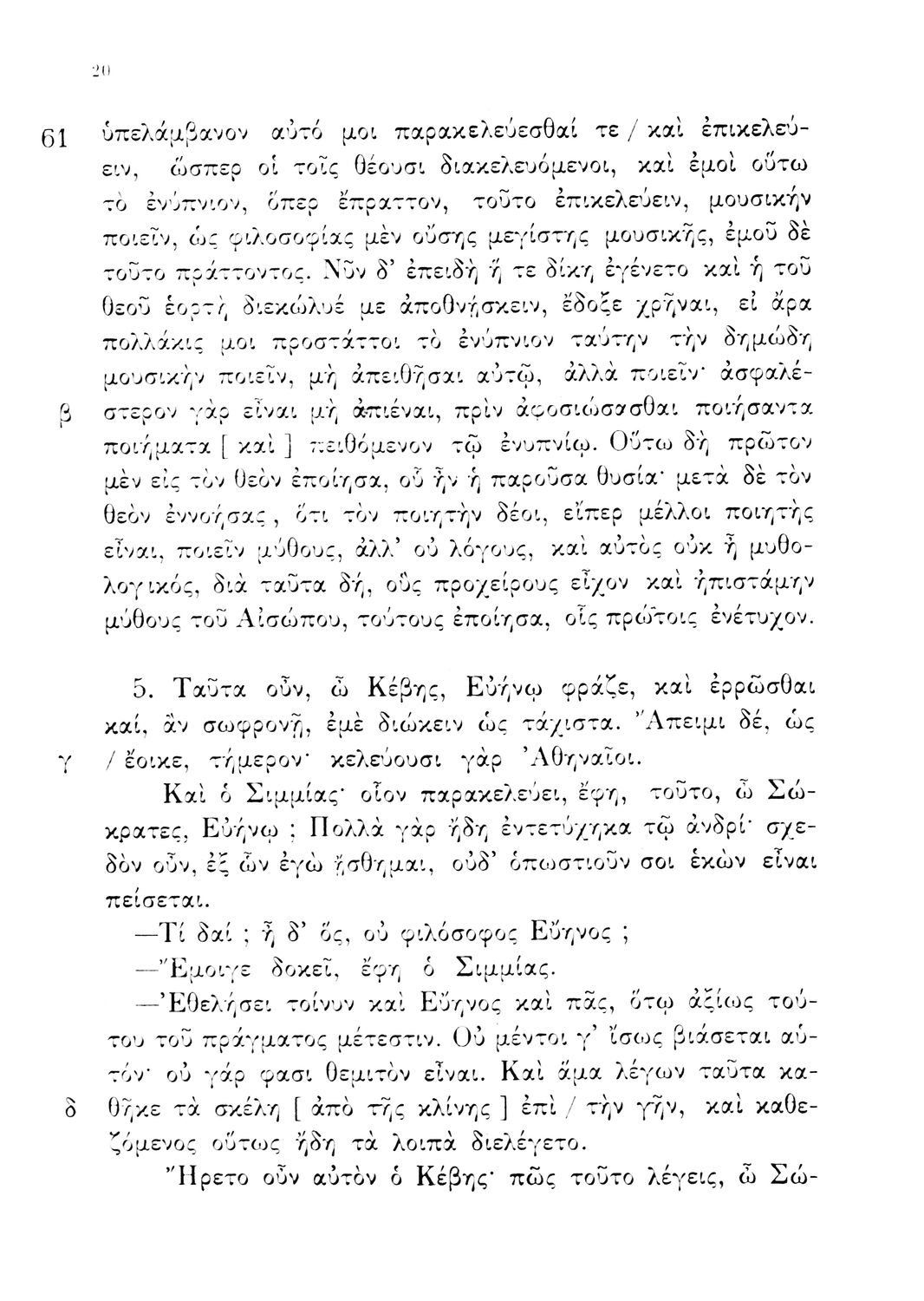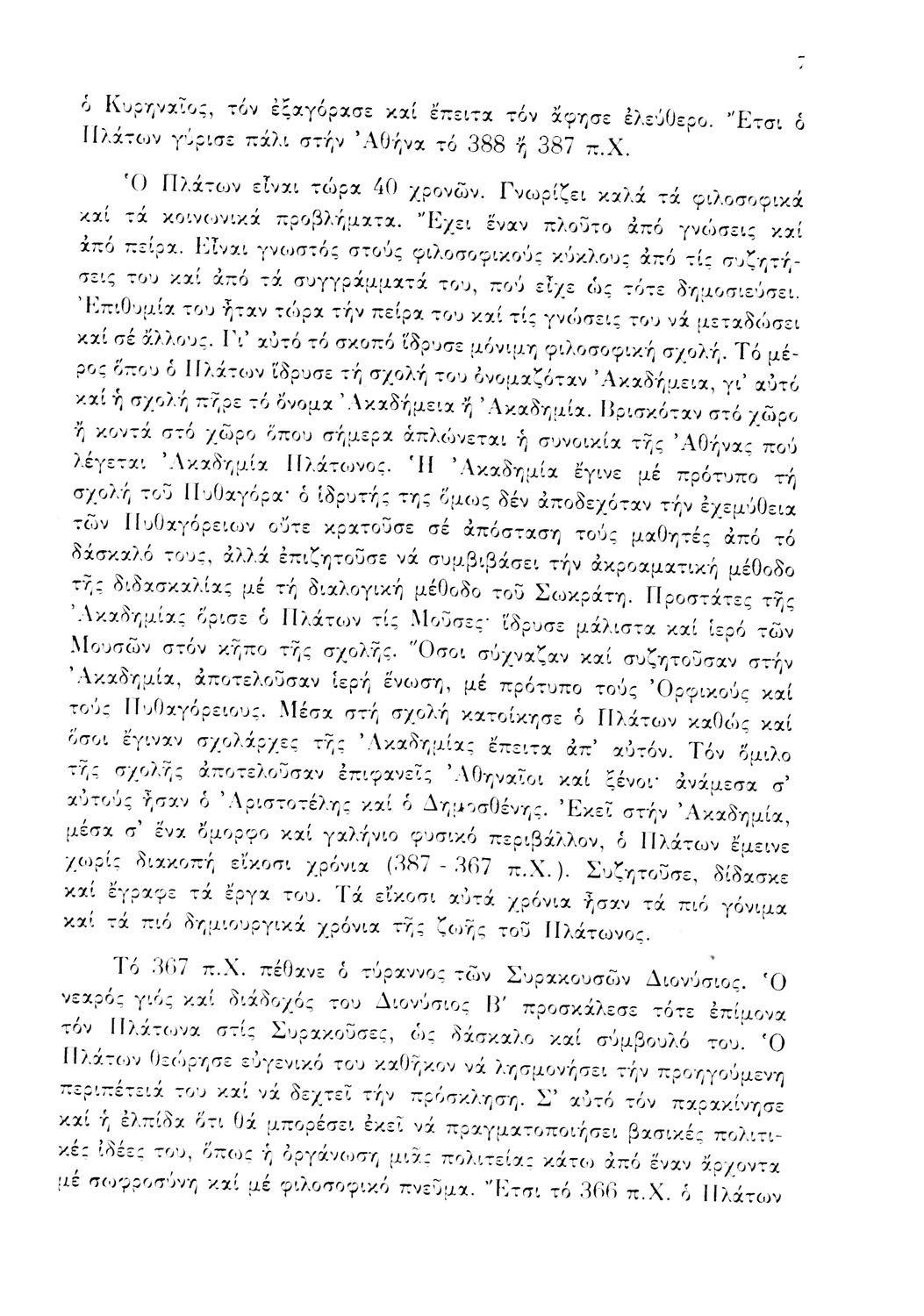 Σχολικό εγχειρίδιο για τις Τάξεις του Γυμνασίου για το μάθημα των Αρχαίων Ελληνικών. Περιλαμβάνει αποσπάσματα του αρχαίου κειμένου από τους διαλόγους του Πλάτωνα. Περιέχει μετάφραση ερμηνευτικά, πραγματολογικά