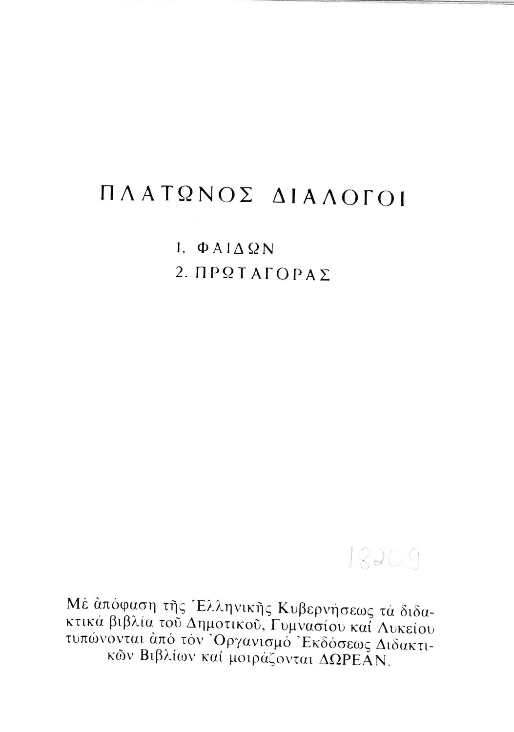 Τίτλος: Πλάτωνος Διάλογοι Φαίδων - Πρωταγόρας Γ΄ Λυκείου