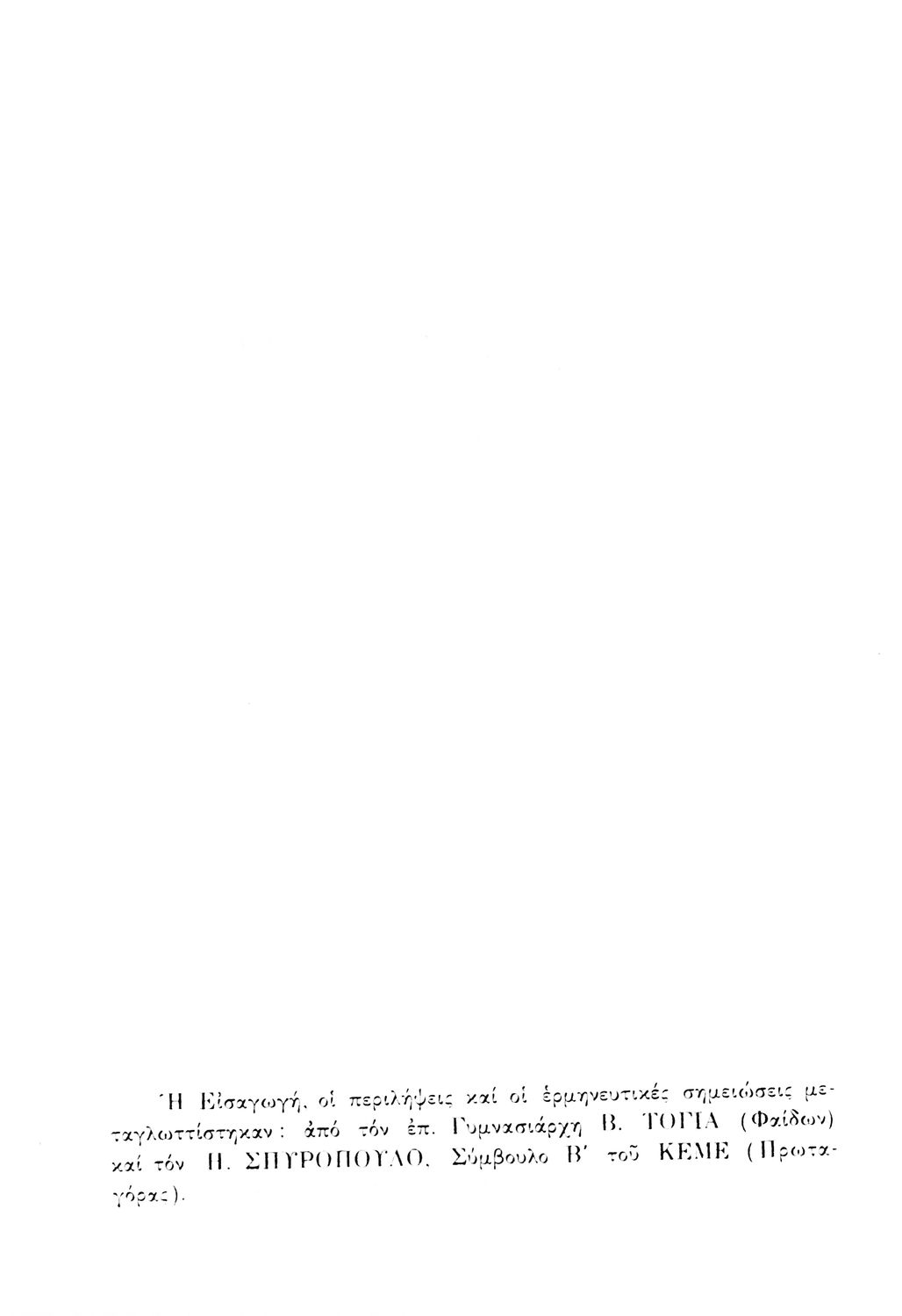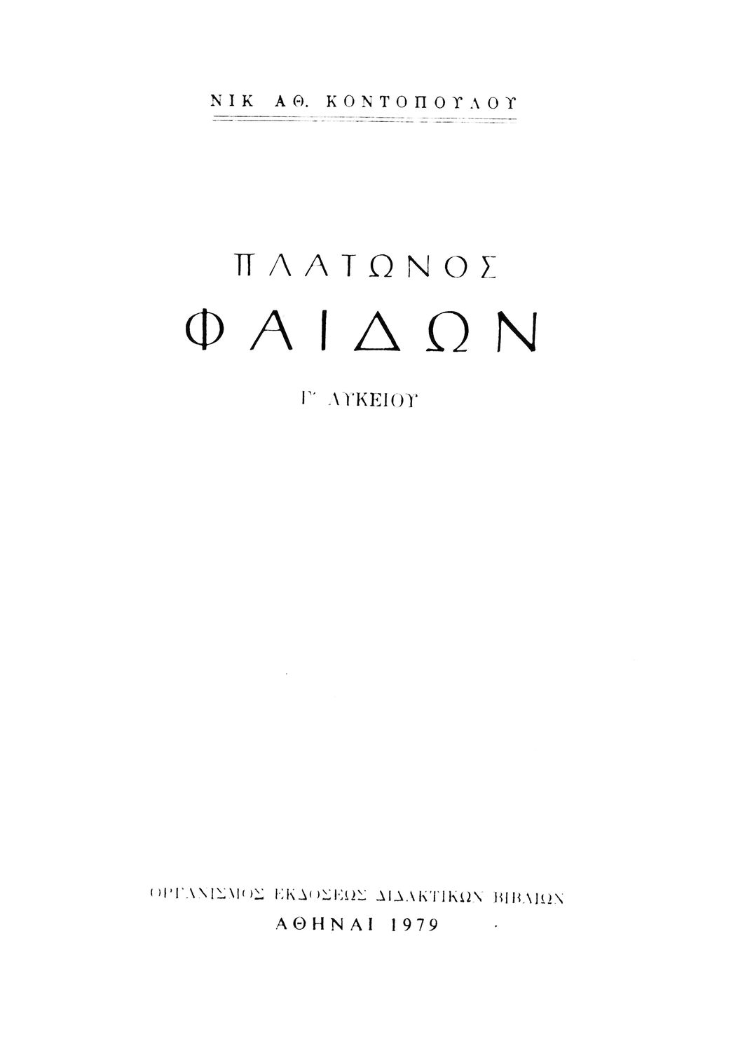 Πλάτων, Ν. Κοντόπουλος, Ν. Ζαφειρίου, Ν. Ελεόπουλος, Ε. Ελεοπούλου (σχόλια)