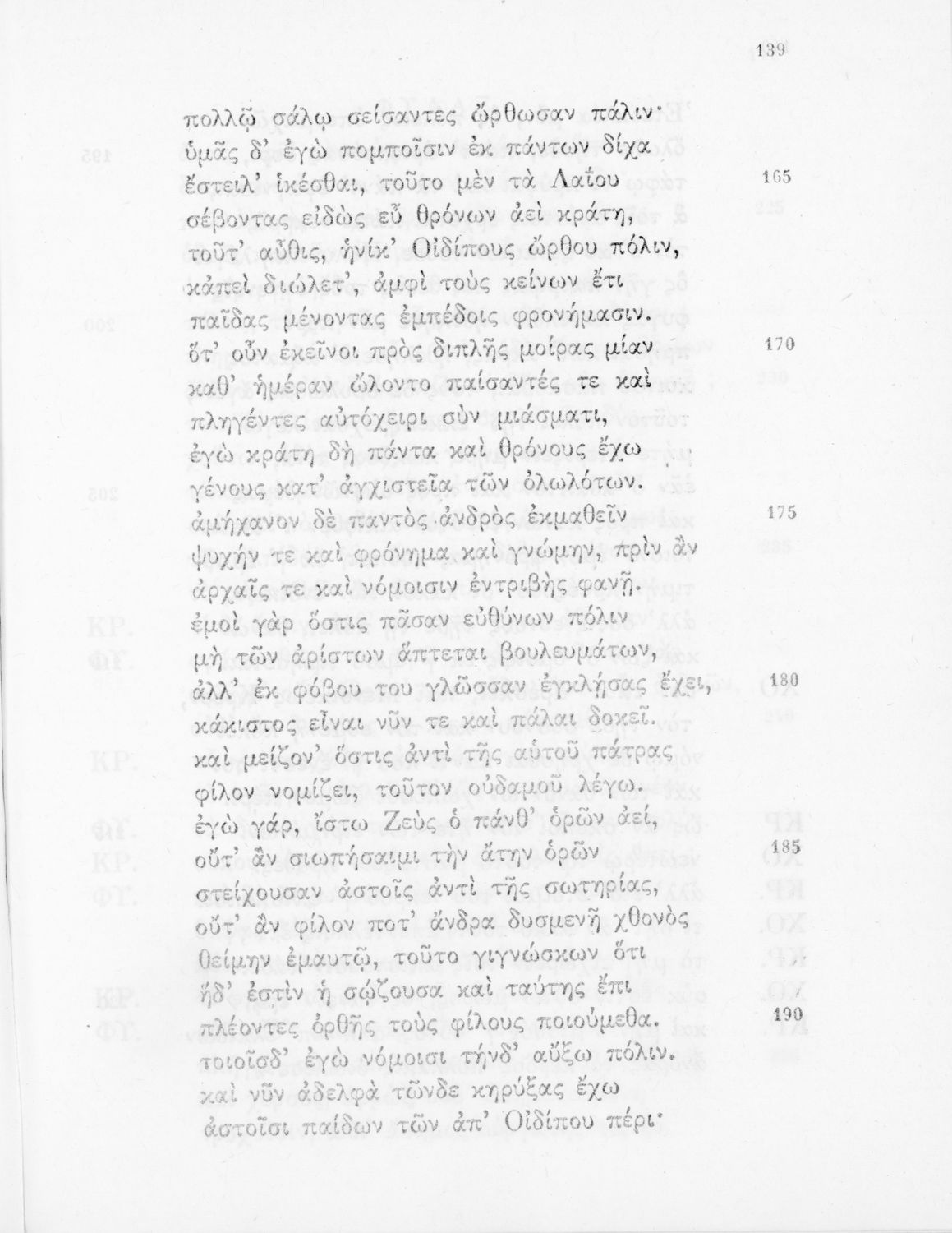 Σχολικό εγχειρίδιο Αρχαίων Ελληνικών που περιλαμβάνει τις τραγωδίες του Σοφοκλή Οιδίπους Τύραννος και Αντιγόνη, εισαγωγή και ερμηνευτικά σχόλια.