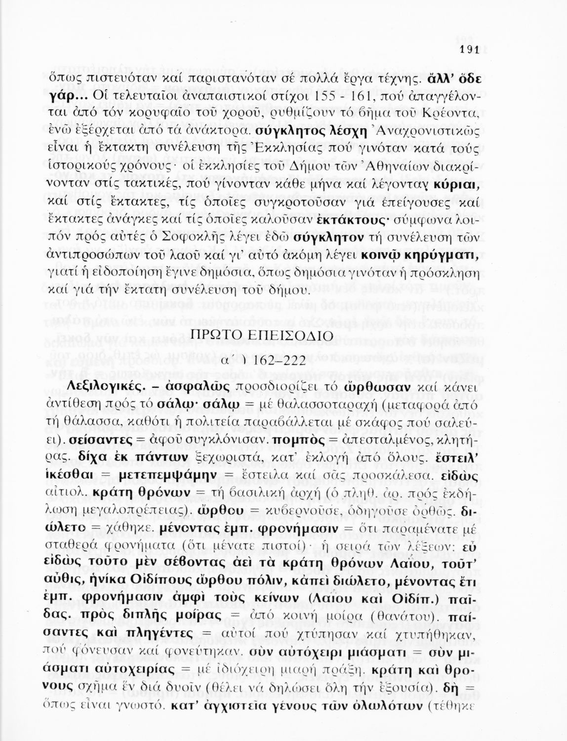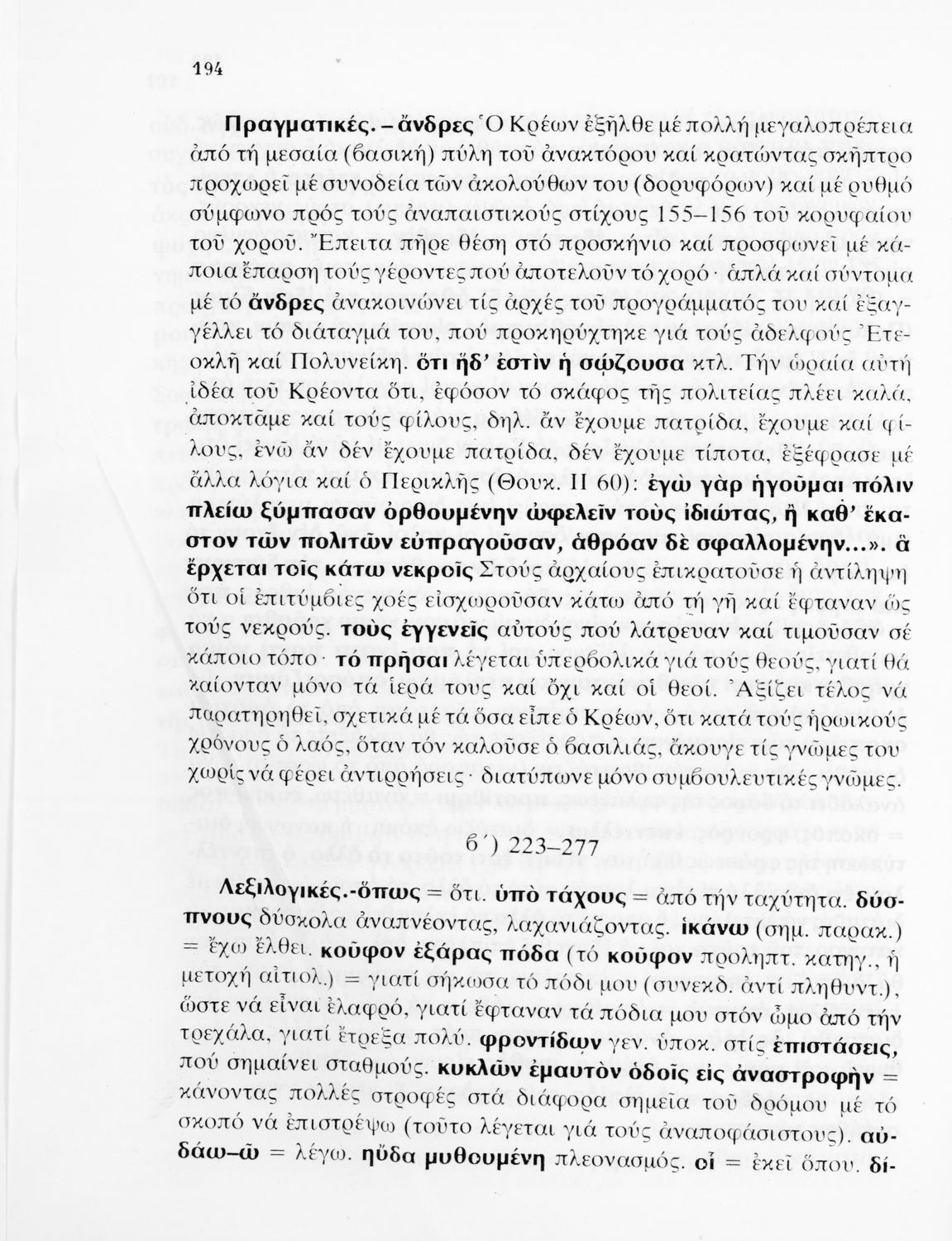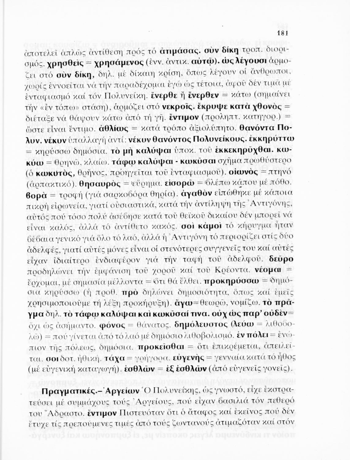 Σχολικό εγχειρίδιο Αρχαίων Ελληνικών που περιλαμβάνει τις τραγωδίες του Σοφοκλή Οιδίπους Τύραννος και Αντιγόνη, εισαγωγή και ερμηνευτικά σχόλια.