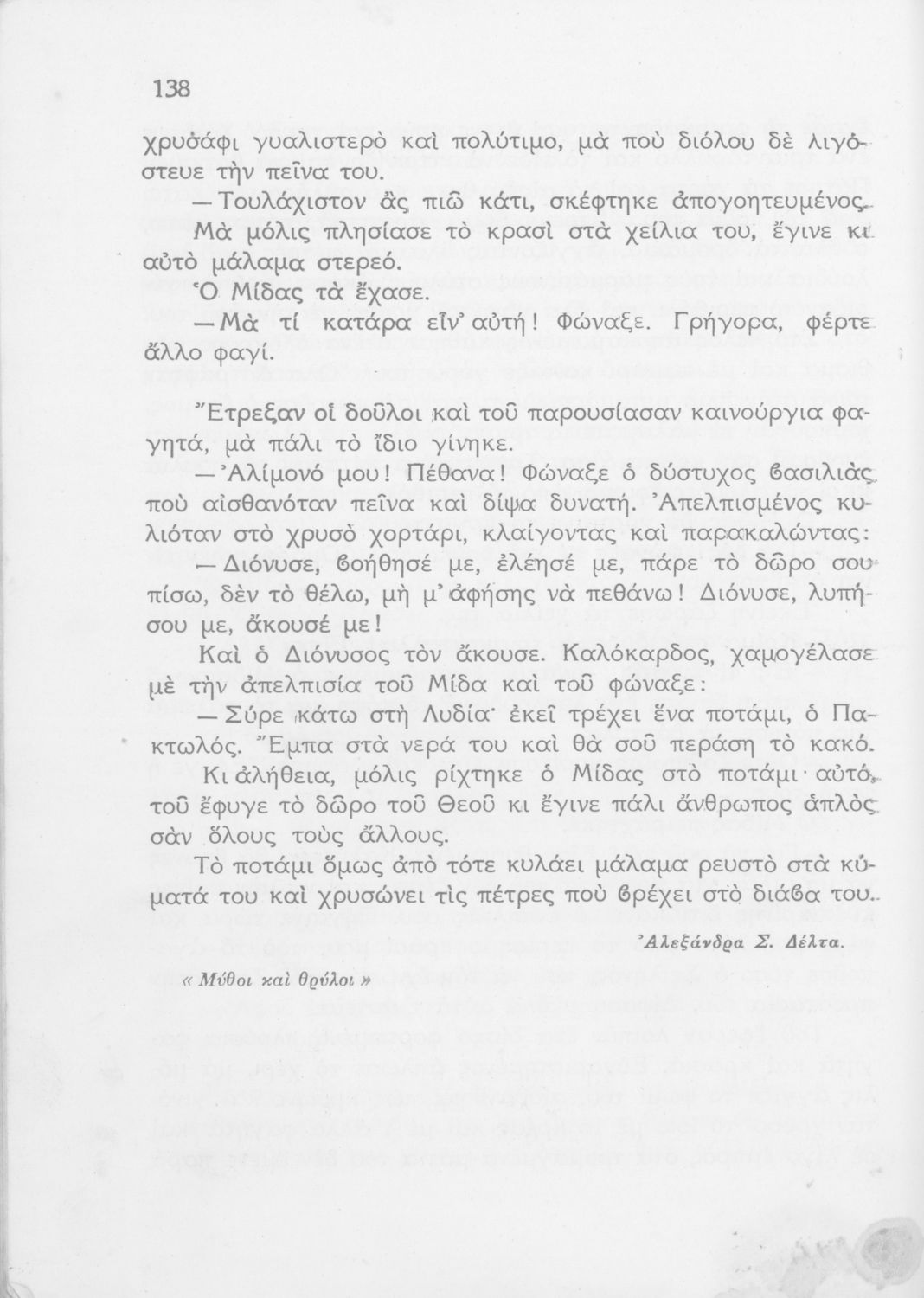 Σχολικό εγχειρίδιο Νέων Ελληνικών Α΄ Γυμνασίου που περιέχει πεζά και ποιήματα Ελλήνων συγγραφέων εμπνευσμένα από τη θρησκευτική και κοινωνική ζωή, την ελληνική μυθολογία, την αρχαία και σύγχρονη ελληνική ιστορία, και την ελληνική φύση. Περιέχει παράρτημα με βιογραφίες των συγγραφέων και λεξιλόγιο.
