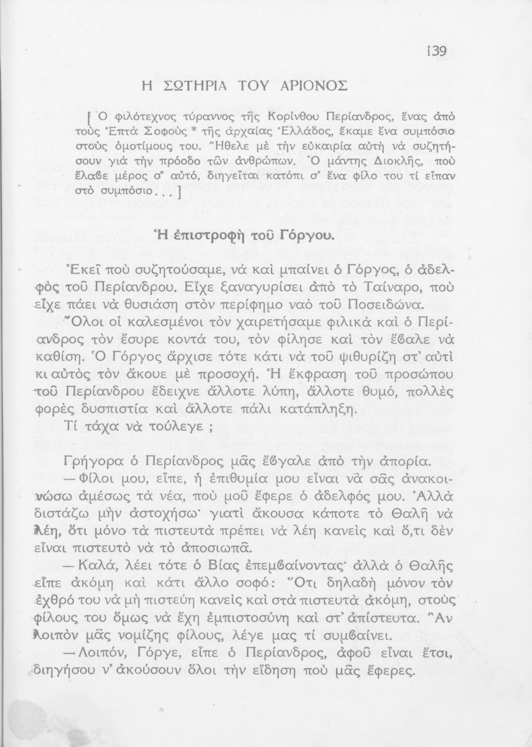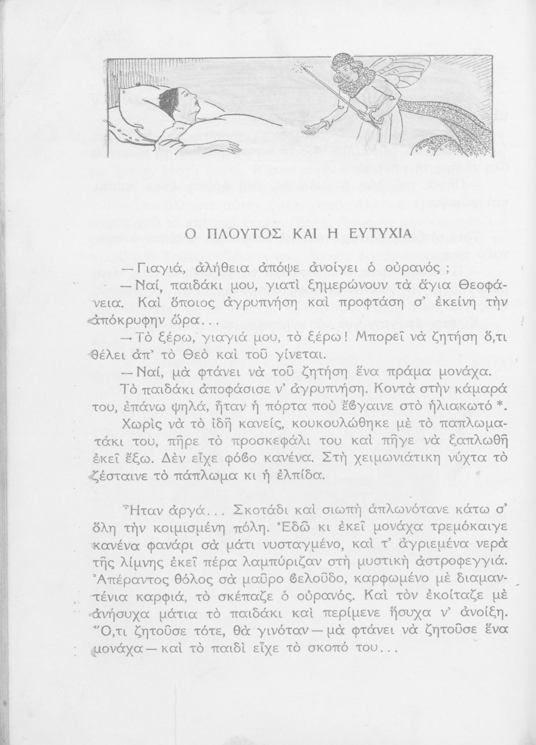 Σχολικό εγχειρίδιο Νέων Ελληνικών Γ΄ Γυμνασίου και Α' Αστικού Σχολείου που περιέχει πεζά και ποιήματα Ελλήνων συγγραφέων εμπνευσμένα από τη θρησκευτική και κοινωνική ζωή, την ελληνική μυθολογία, την αρχαία και