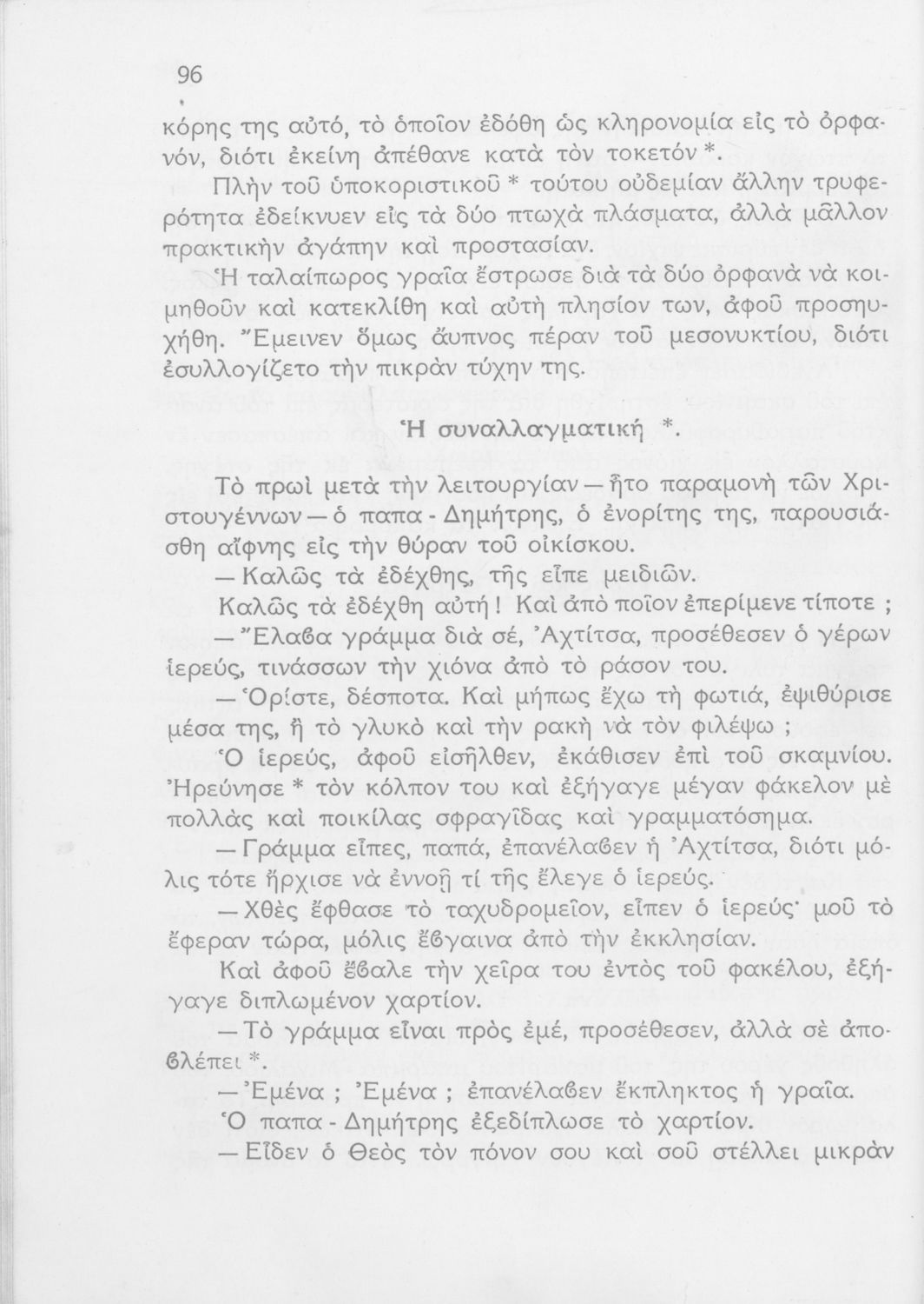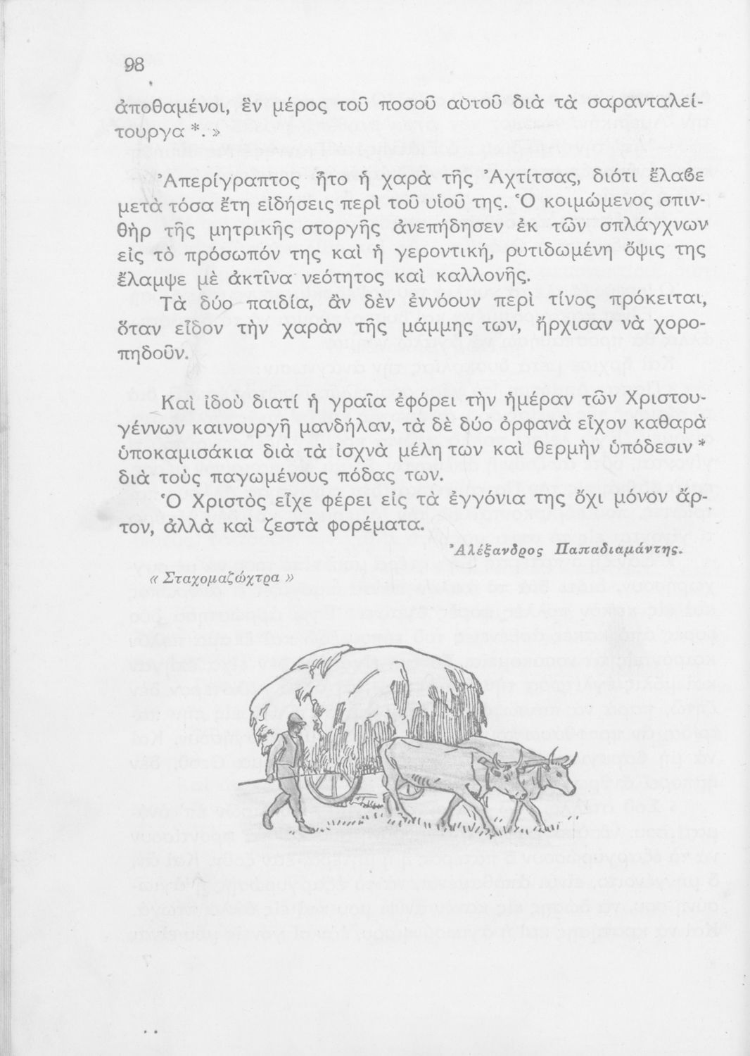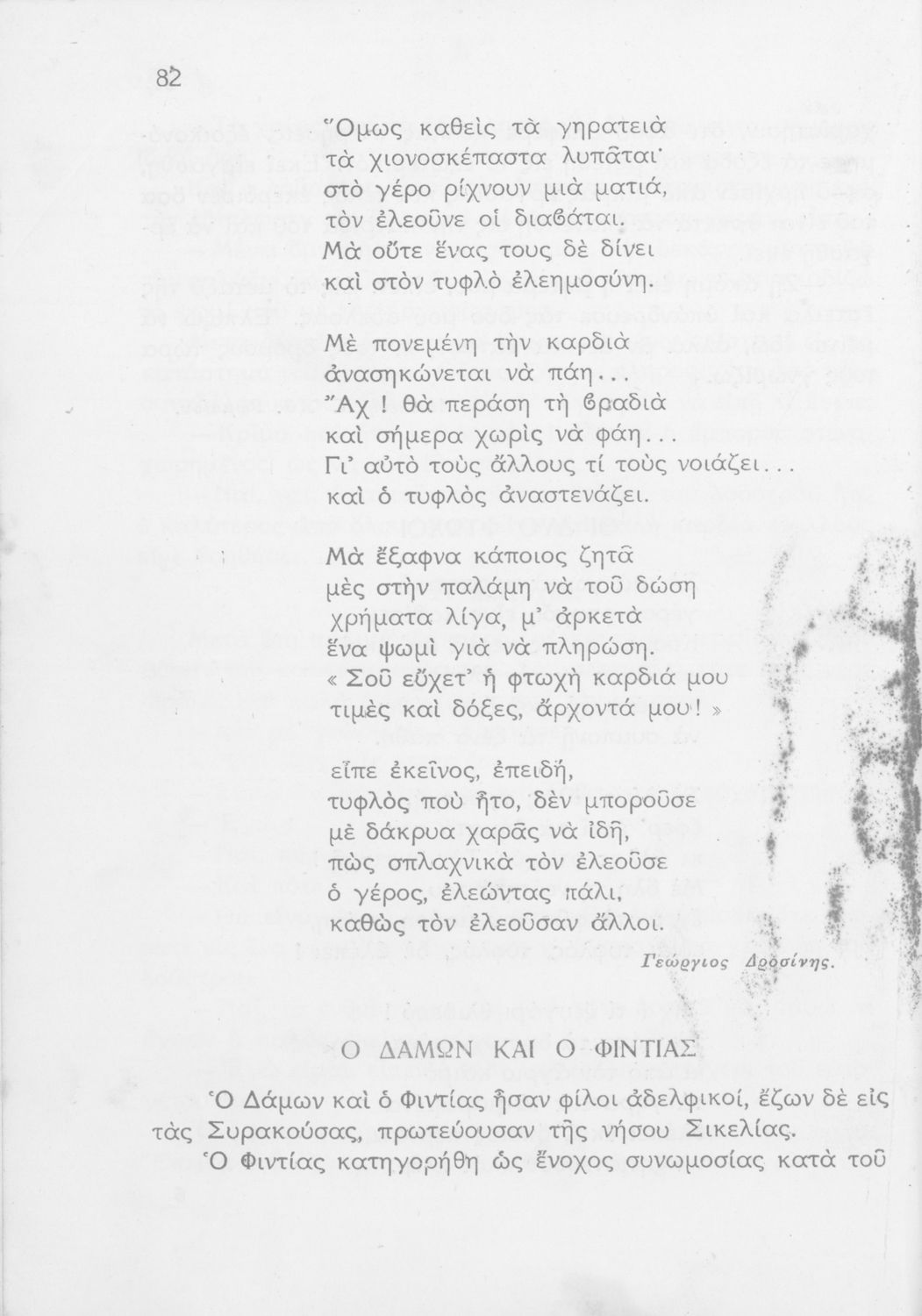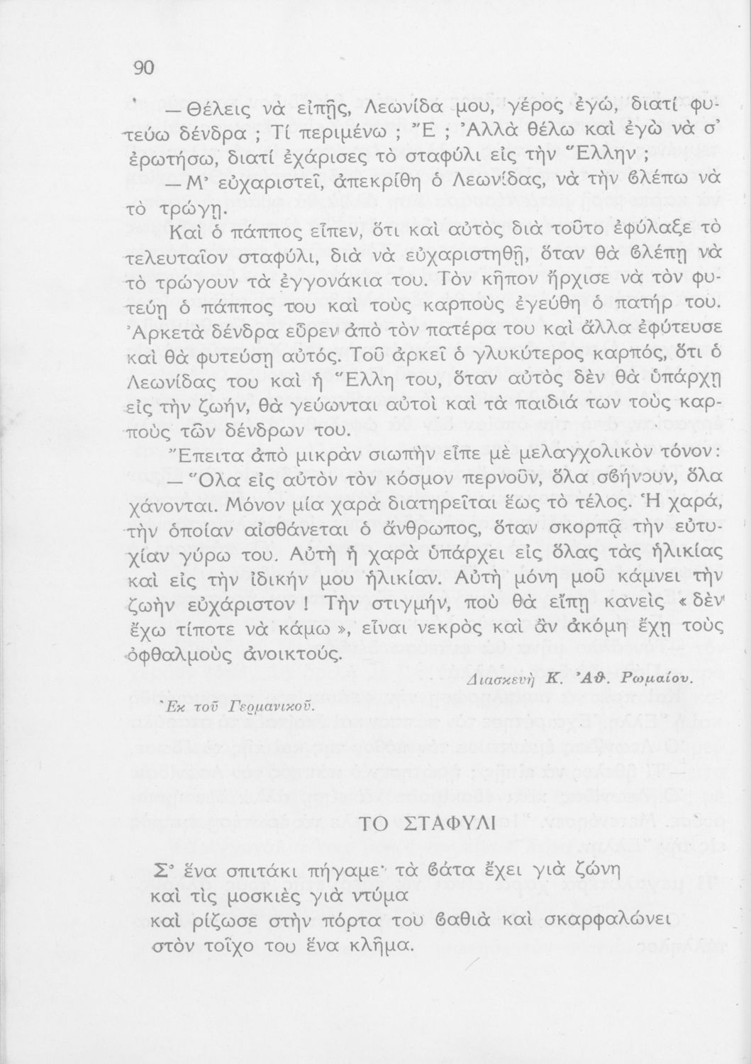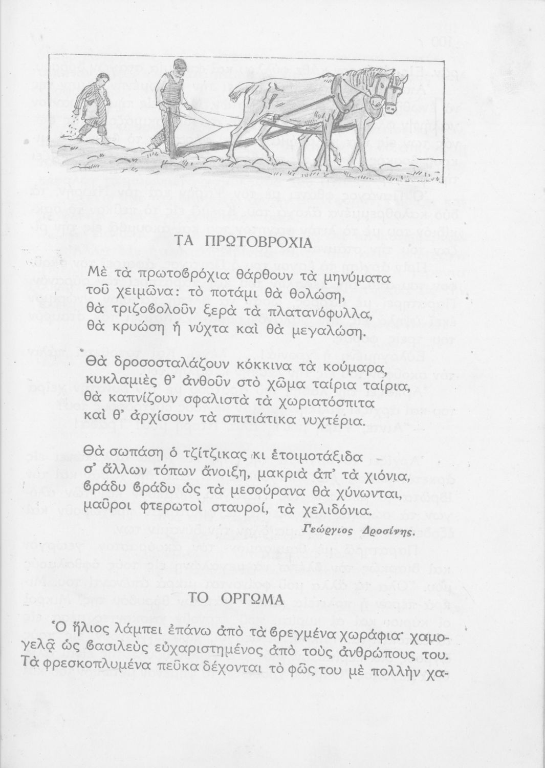 Σχολικό εγχειρίδιο Νέων Ελληνικών Γ΄ Γυμνασίου και Α' Αστικού Σχολείου που περιέχει πεζά και ποιήματα Ελλήνων συγγραφέων εμπνευσμένα από τη θρησκευτική και κοινωνική ζωή, την ελληνική μυθολογία, την αρχαία και
