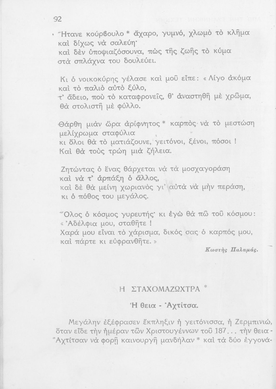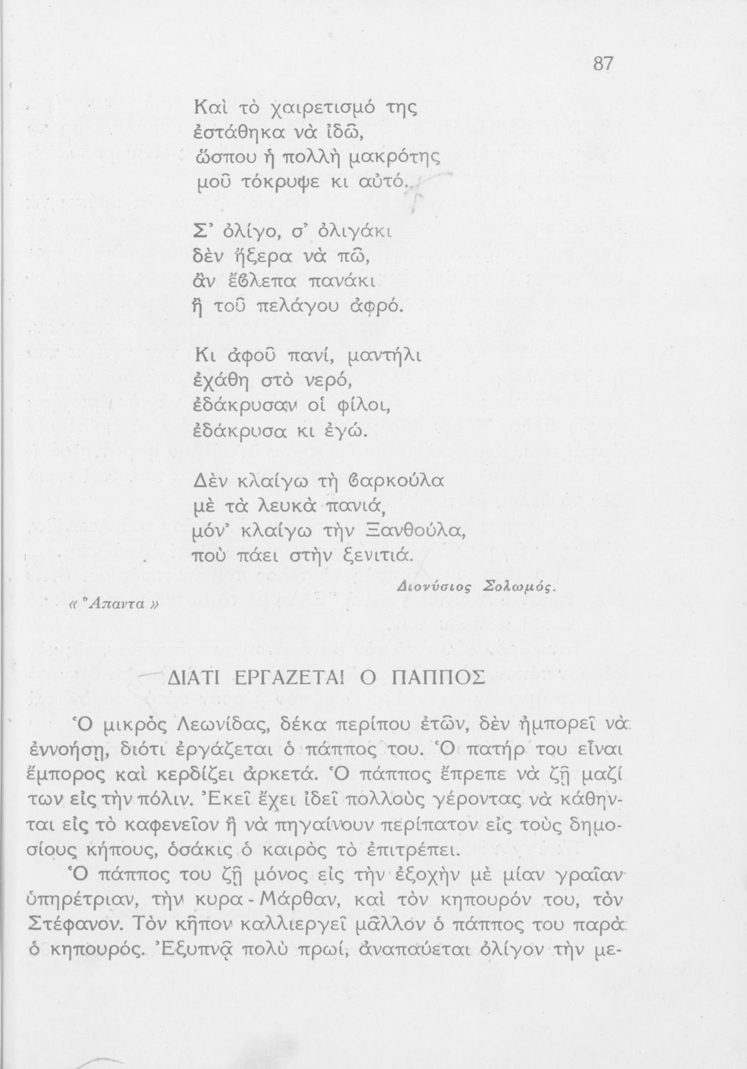 Σχετιζόμενοι όροι:  Παπαντωνίου, Πολέμης, Παλαμάς, Βηλαράς