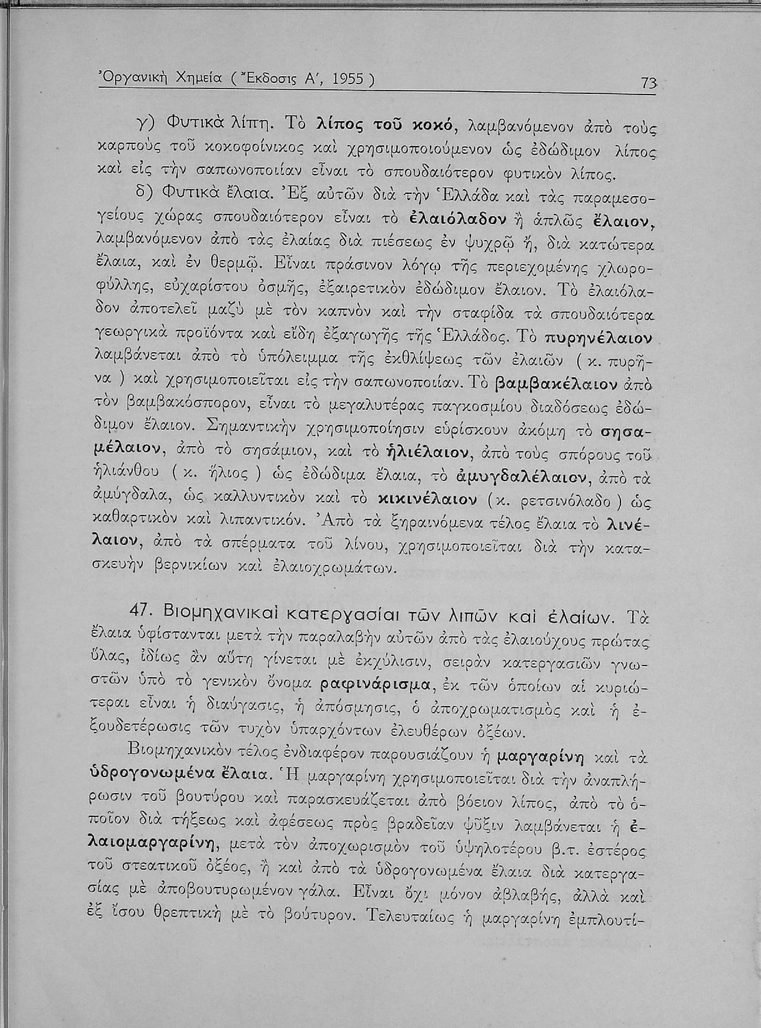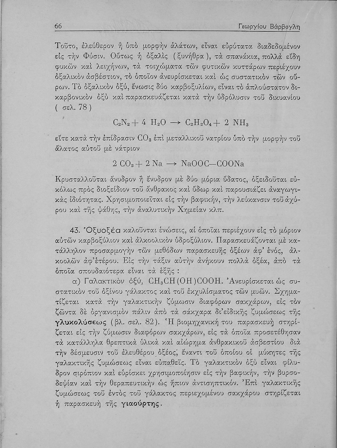 Βαθμίδα εκπαίδευσης: Δευτεροβάθμια Τάξη: Γυμνάσιο Μάθημα: Χημεία Γλώσσα: Καθαρεύουσα Παρουσίαση περιεχομένου: Σχολικό εγχειρίδιο Χημείας που προσδιορίζει έννοιες οργανικής χημείας, τη σύσταση οργανικών ενώσεων, κορεσμένων και ακόρεστων υδρογονανθράκων και προσδιορίζει τη δράση των οργανικών ζυμώσεων. Μερικά κεφάλαια συνοδεύονται από ασκήσεις αντιδράσεων. |