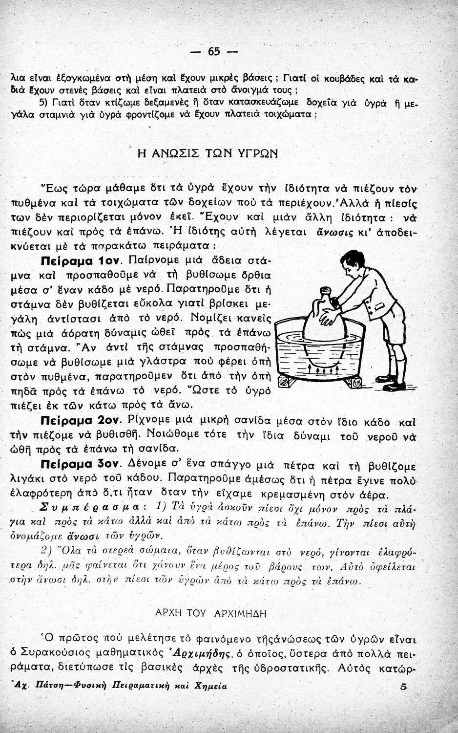 Μαθητικό βοήθημα της Ε΄ Δημοτικού για το μάθημα της Φυσικής. Παρέχει βασικές γνώσεις της Φυσικής επιστήμης και της Χημείας. Αναλύει τις ιδιότητες των σωμάτων, καθώς και της θερμότητας, του ηλεκτρισμού και του μαγνητισμού, την υδροστατική, την βαρύτητα και την αεροστατική. Σχετικά με τη χημεία αναφέρεται στα μέταλλα, στα οξέα, τις βάσεις, τα άλατα. Αναφέρεται στην πρακτική εφαρμογή της φυσικής και της χημείας στην καθημερινότητά. Επίσης, περιλαμβάνει πολλά από τα όργανα, που χρησιμοποιούνται στη φυσική, και τη χημεία. Περιέχει εικόνες και σχεδιαγράμματα τα οποία βοηθούν τη διδασκαλία.