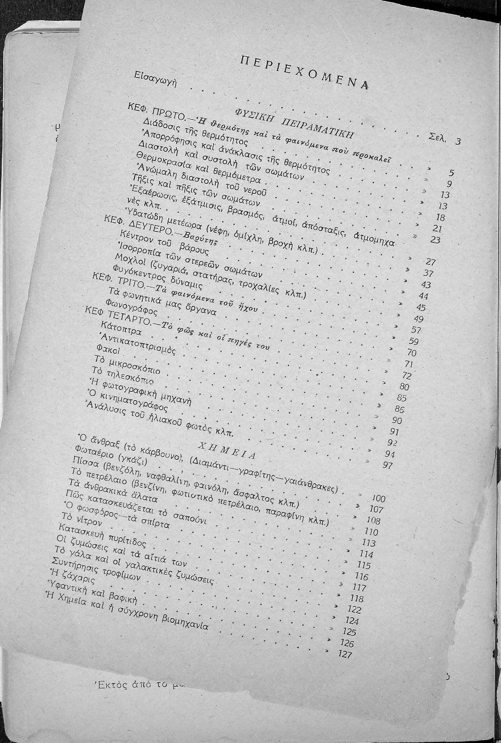 Το σύγγραμμα ήταν μαθητικό βοήθημα για το μάθημα της Φυσικής στο Δημοτικό . Παρέχει βασικές γνώσεις της φυσικής επιστήμης και της χημείας. Αναλύει τις ιδιότητες των σωμάτων, καθώς και της οπτικής, ακουστικής, ...