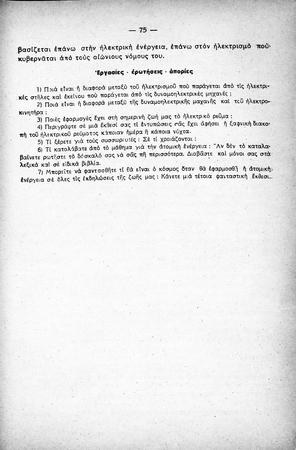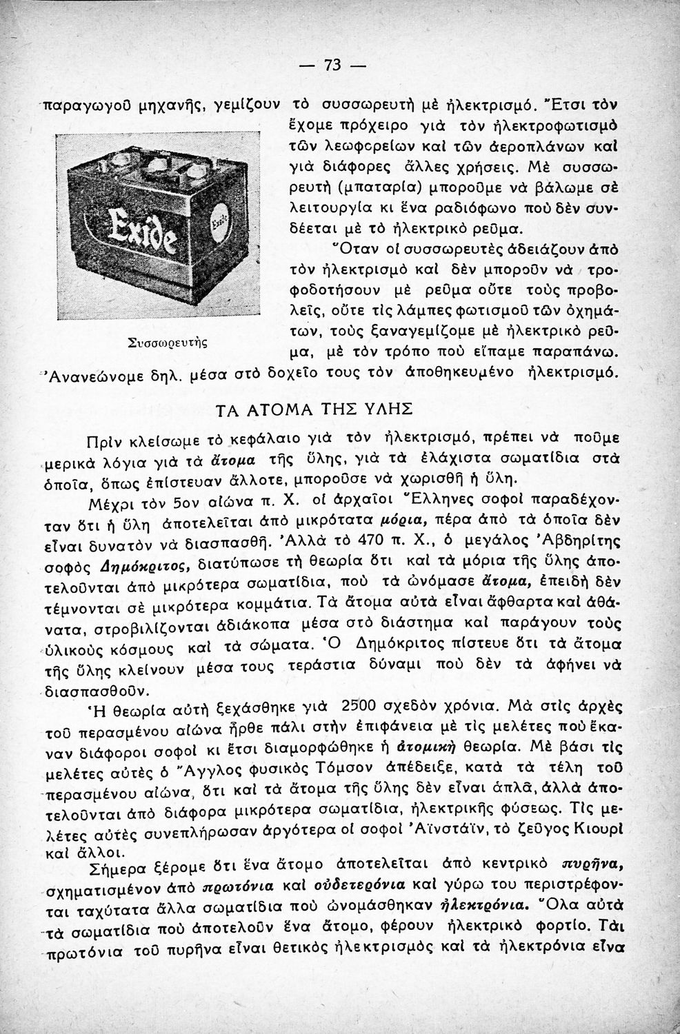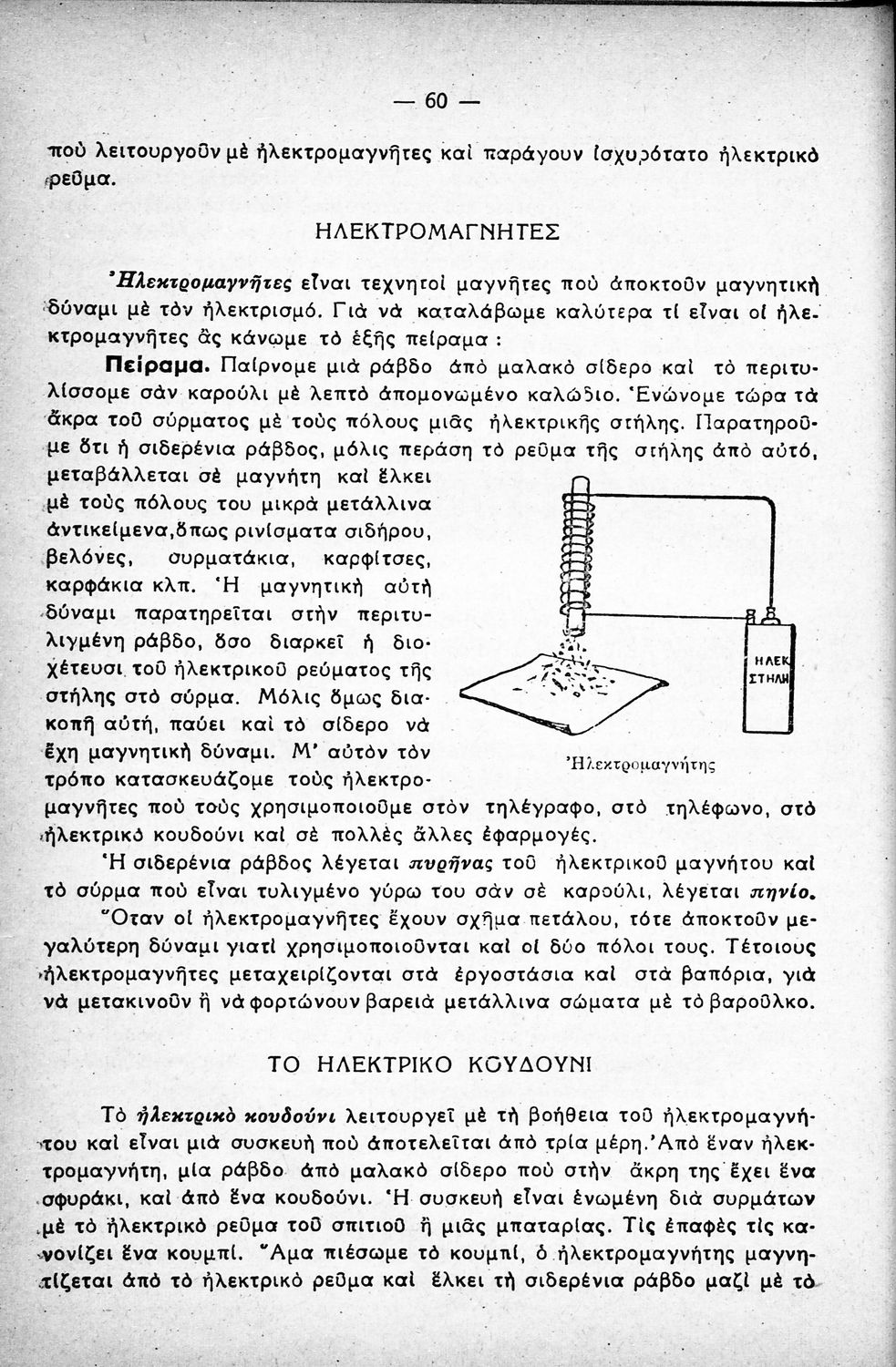 Βαθμίδα εκπαίδευσης: Πρωτοβάθμια Τάξη: Ε' Δημοτικού / ΣΤ' Δημοτικού Μάθημα: Φυσική Γλώσσα: Απλή καθαρεύουσα Παρουσίαση περιεχομένου: Μαθητικό βοήθημα της Ε΄ και ΣΤ΄ Δημοτικού για το μάθημα της Φυσικής. Παρέχει βασικές γνώσεις της φυσικής επιστήμης και της χημείας. Αναλύει τις ιδιότητες των σωμάτων, καθώς και της θερμότητας, του ηλεκτρισμού και του μαγνητισμού, την υδροστατική, την βαρύτητα και την αεροστατική. Σχετικά με τη χημεία αναφέρεται στα μέταλλα, στα οξέα, τις βάσεις, τα άλατα. Αναφέρεται στην πρακτική εφαρμογή της φυσικής και της χημείας στην καθημερινότητά. Επίσης, περιλαμβάνει πολλά από τα όργανα, που χρησιμοποιούνται στη φυσική, και τη χημεία. Περιέχει εικόνες και σχεδιαγράμματα τα οποία βοηθούν τη διδασκαλία. |