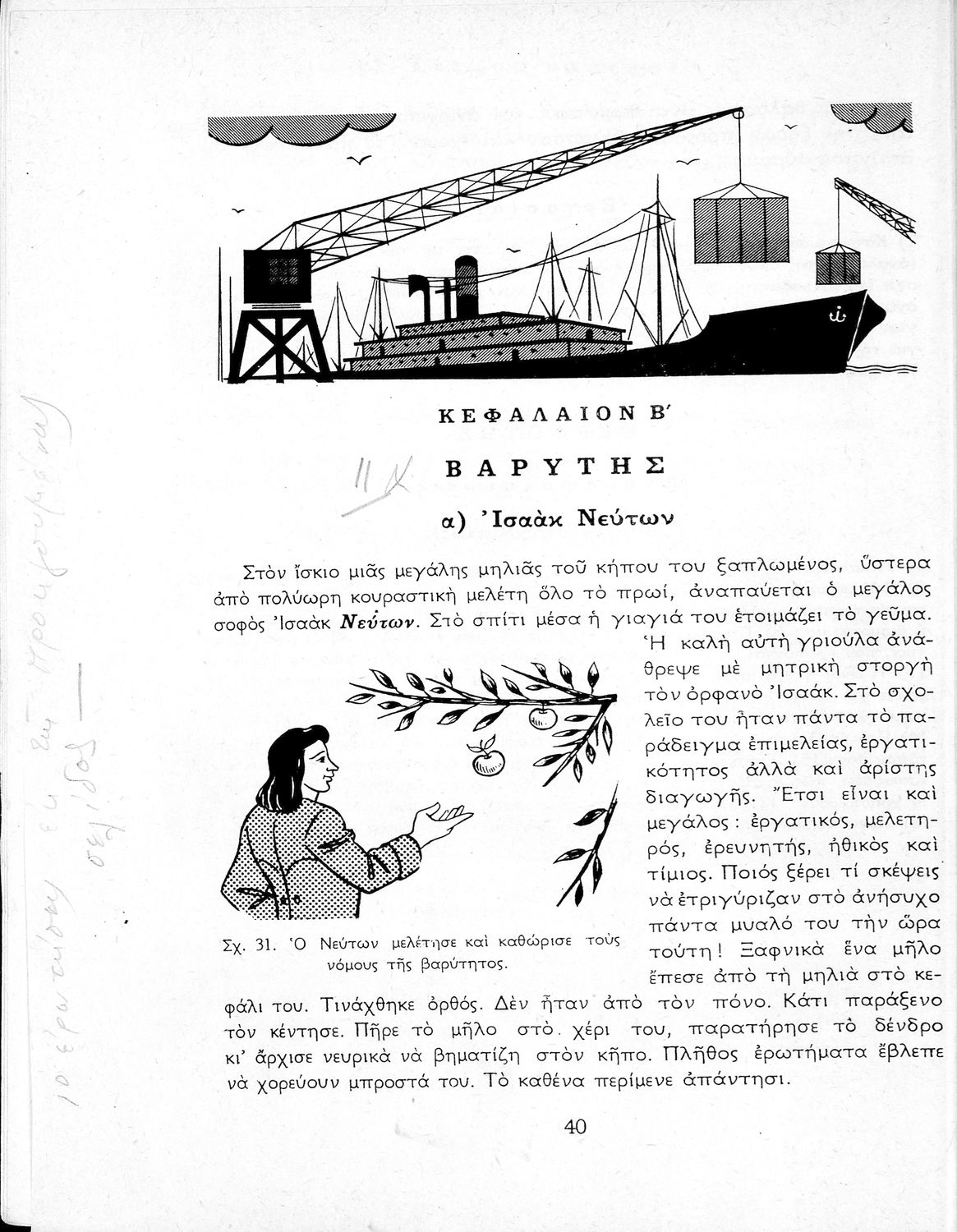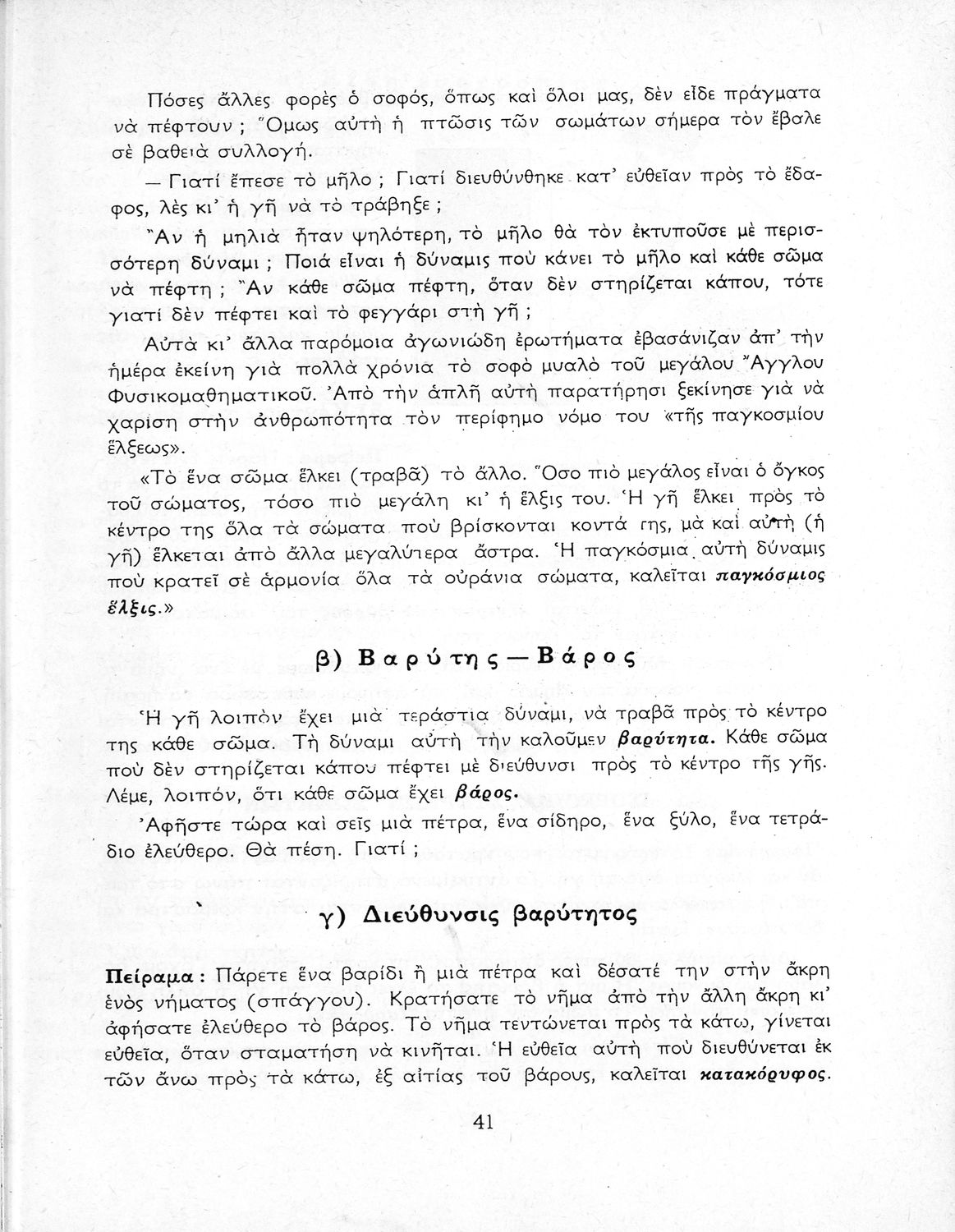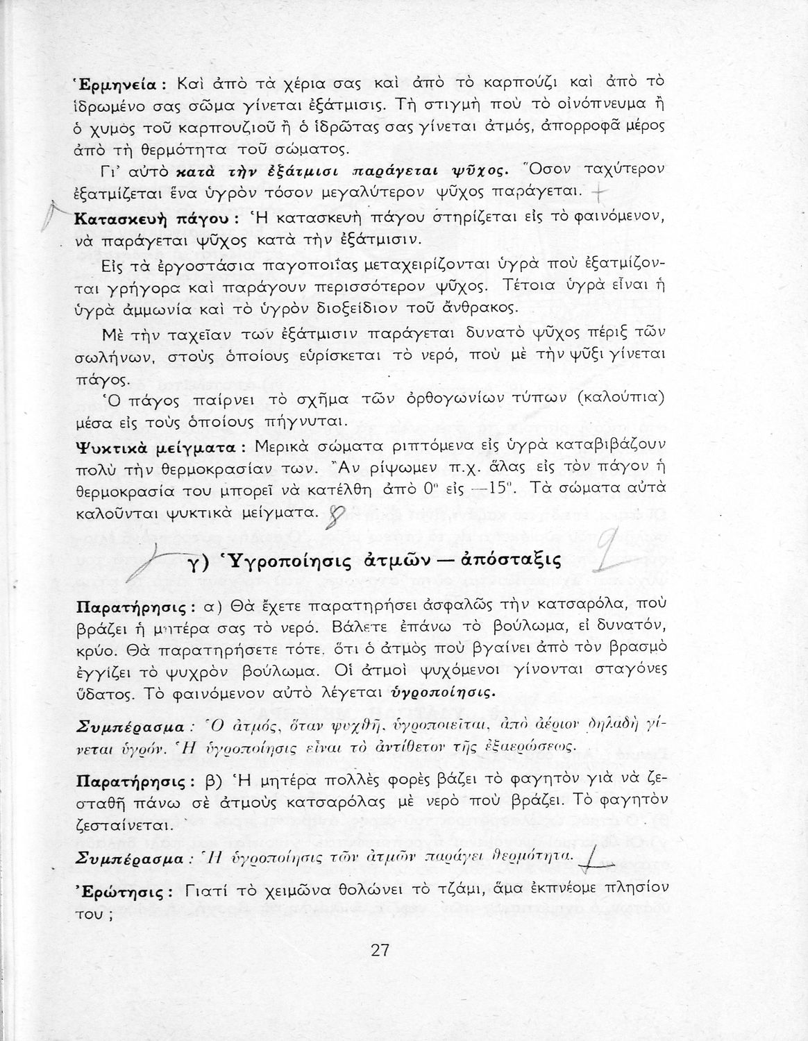 Το σύγγραμμα ήταν μαθητικό βοήθημα για το μάθημα της Φυσικής στο Δημοτικό . Παρέχει βασικές γνώσεις της φυσικής επιστήμης και της χημείας. Αναλύει τις ιδιότητες των σωμάτων, καθώς και της οπτικής, ακουστικής, ...