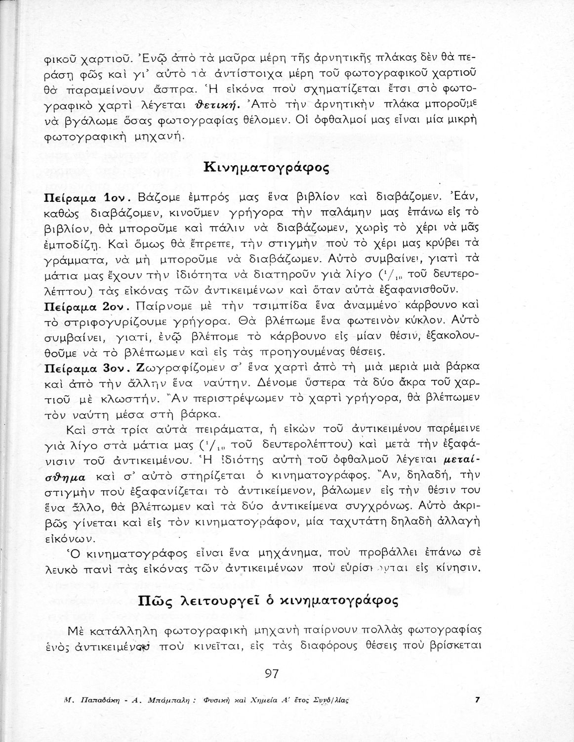 Το σύγγραμμα ήταν μαθητικό βοήθημα για το μάθημα της Φυσικής στο Δημοτικό . Παρέχει βασικές γνώσεις της φυσικής επιστήμης και της χημείας. Αναλύει τις ιδιότητες των σωμάτων, καθώς και της οπτικής, ακουστικής, ...