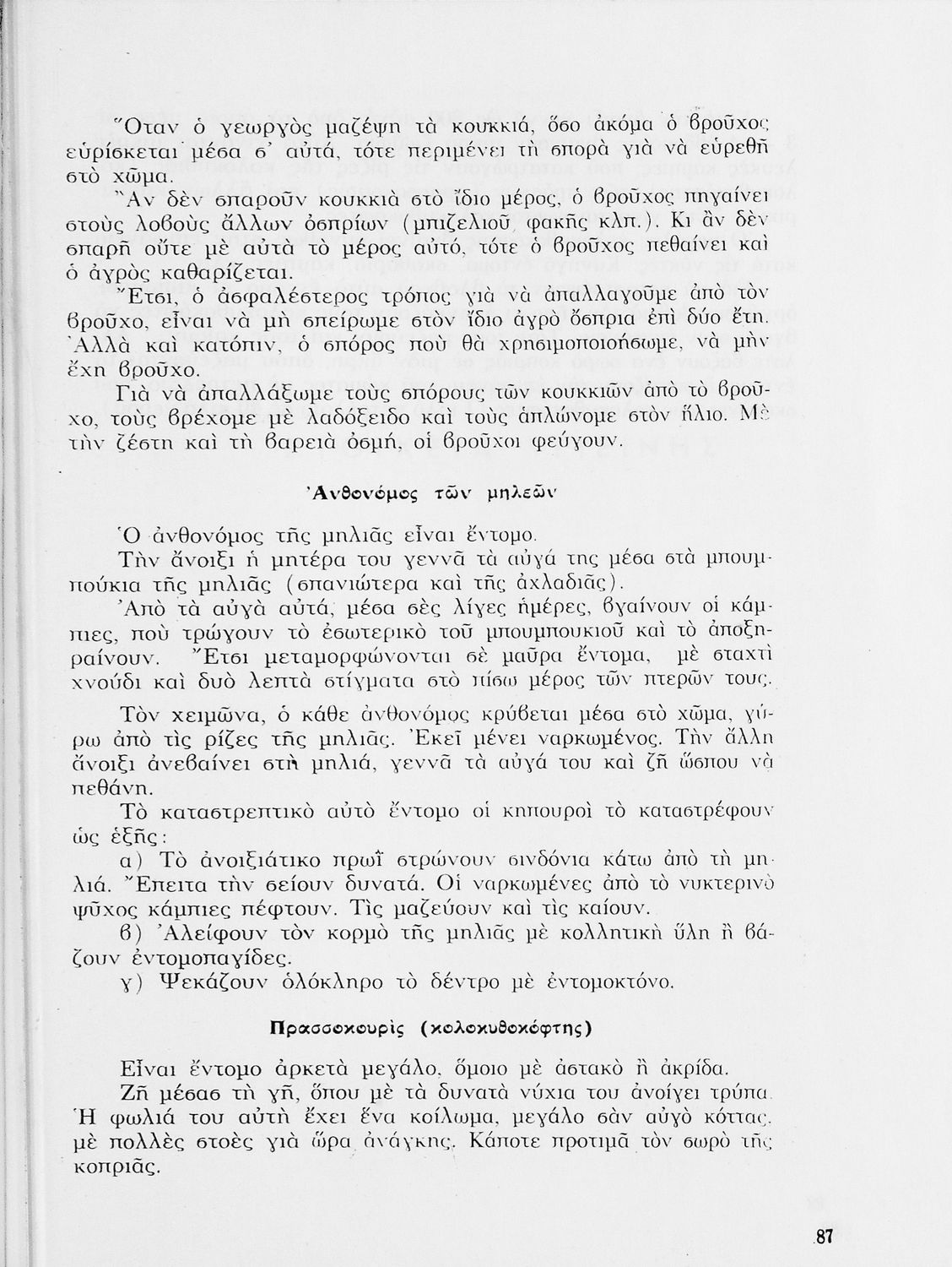 Σχολικό εγχειρίδιο Φυτολογίας και Ζωολογίας της Γ ΄ Δημοτικού το οποίο παρουσιάζει τα είδη των φυτών και ζώων του σπιτιού, του κήπου και του λιβαδιού.