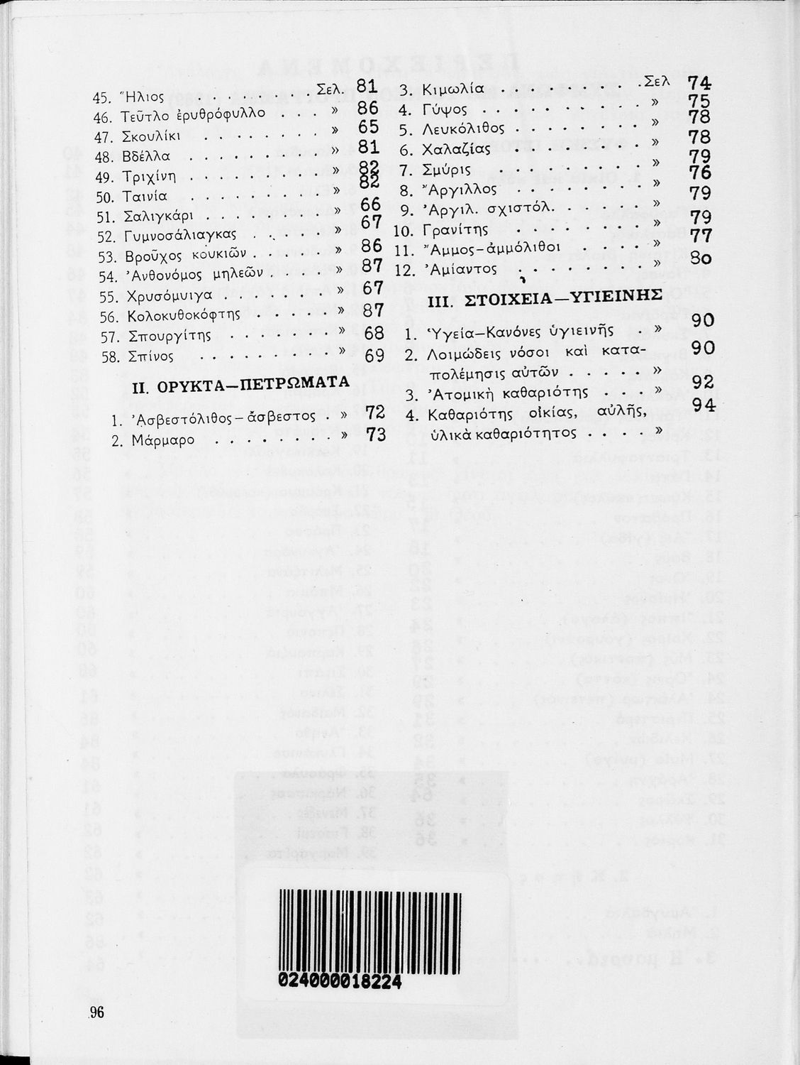 Παρουσίαση περιεχομένου: Μαθητικό βοήθημα της Δ΄ Δημοτικού για το μάθημα της Φυσικής Ιστορίας. Περιέχει πληροφορίες για την ζωολογία, τη φυτολογία και την ορυκτολογία. Στο τελευταίο κεφάλαιο περιλαμβάνονται πληροφορίες για την υγιεινή. Το βιβλίο έχει εικόνες, οι οποίες διευκολύνουν τη διδασκαλία. Ο λόγος των κειμένων είναι απλός και κατανοητός για τους μαθητές.