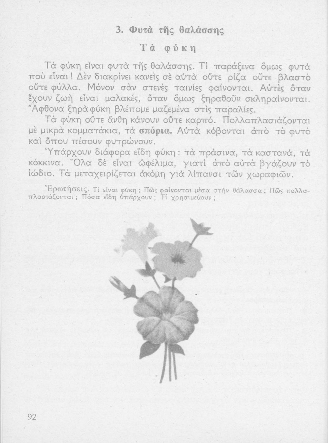 Μαθητικό βοήθημα Φυτολογίας για τη Δ΄ Δημοτικού με στοιχεία ζωολογίας, φυτολογίας και ορυκτολογίας. Οι αναφορές που γίνονται είναι για είδη που υπάρχουν στην φυσικό περιβάλλον της Ελλάδας.
