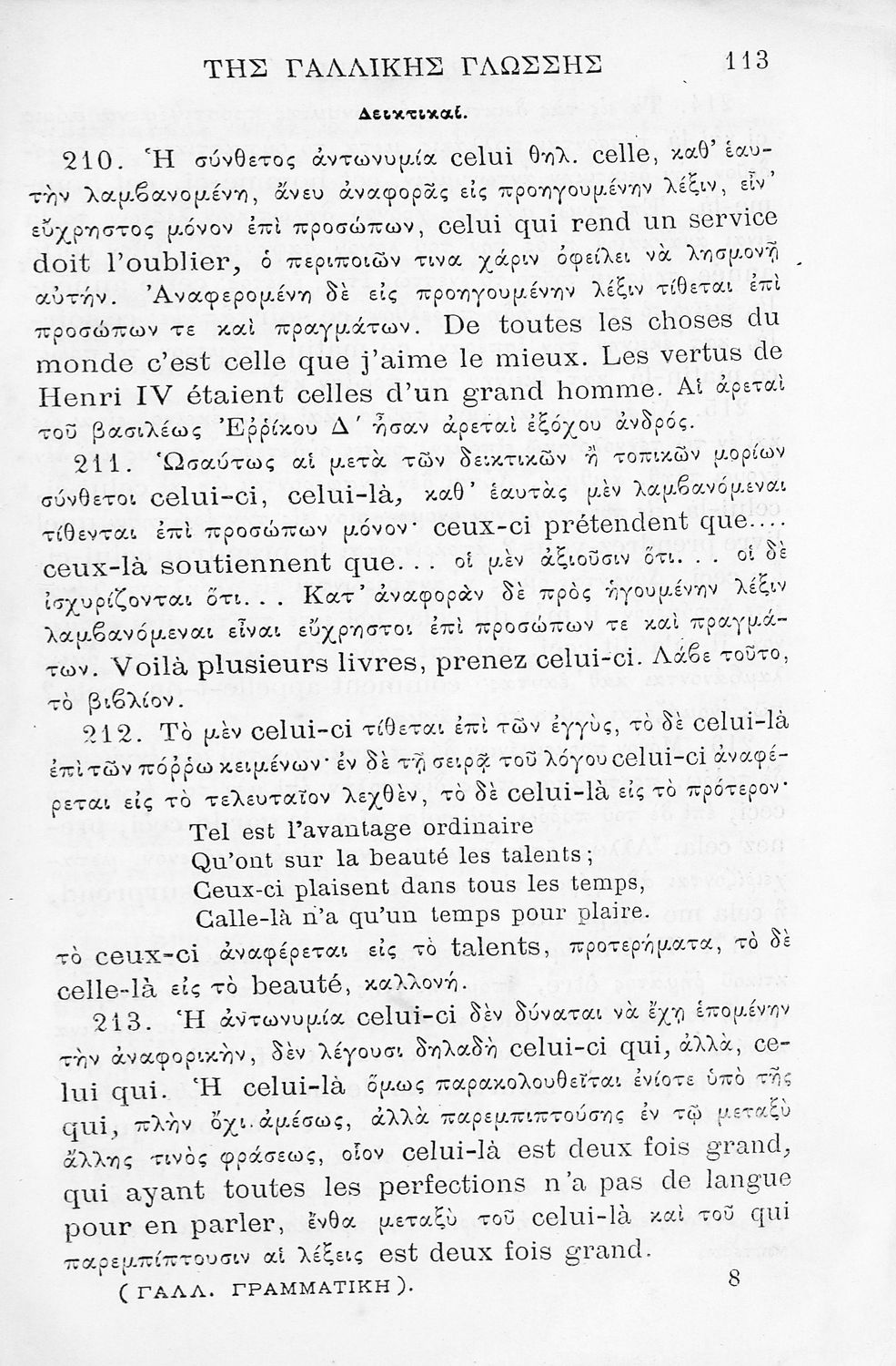 LDR 00941 2200217 4500 035 ## _a01-18227 040 ## _aΙνστιτούτο Εκπαιδευτικής Πολιτικής 041 ## _ael 100 ## _aΙ. Καρασούτσας 110 ## _a18227 245 0# _aΓραμματική της Γαλλικής Γλώσσης συνταχθείσα προς χρήσιν των σχολείων και Γυμνασίων της Ελλάδος 250 ## _a9η Έκδοση 260 ## _aΑθήνα _bΣ.Κ.Βλαστός _c1884 300 ## _a144 _c20 520 ## _aΣχολικό εγχειρίδιο Γαλλικών Γυμνασίου που περιέχει τους κανόνες γραμματικής. 521 ## _aΓυμνάσιο 522 ## _aΕλλάδα 546 ## _aΚαθαρεύουσα 563 ## _aΜαλακό Εξώφυλλο 583 ## _a8175 650 #4 _aΑντωνυμίες _aΕπίθετα _aΟνόματα _aΡήματα