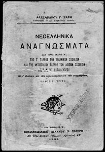 Νεοελληνικά αναγνώσματα διά τους μαθητάς της Γ΄ τάξεως των Ελληνικών Σχολείων και της αντιστοίχου τάξεως των λοιπών σχολείων της Μέσης Εκπαιδεύσεως.