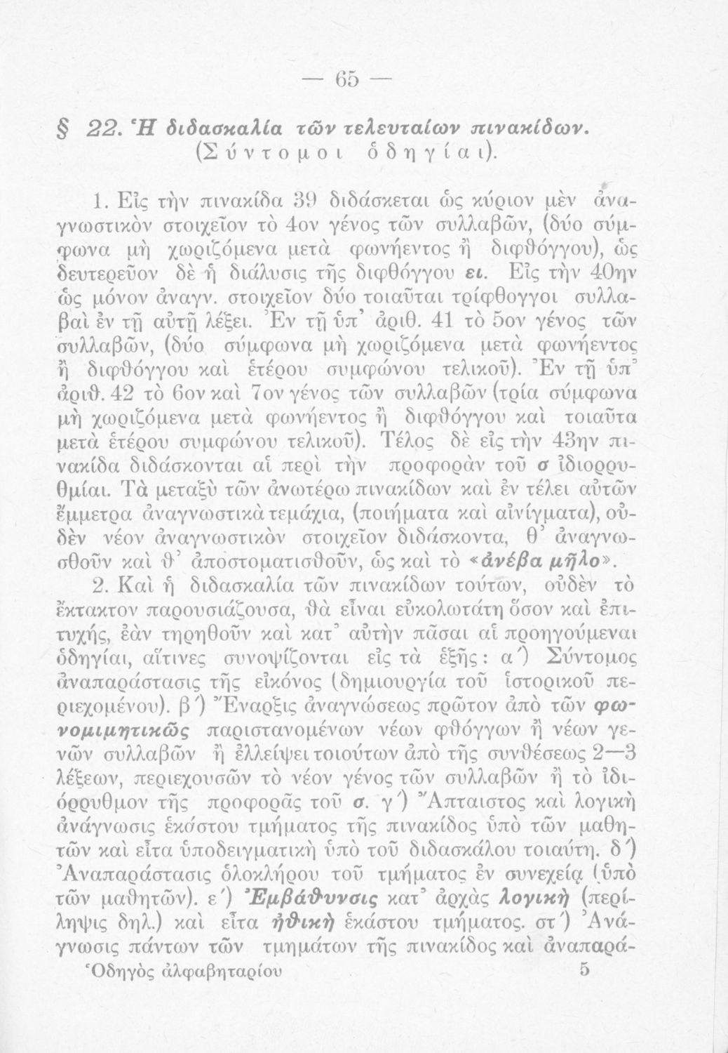 Παιδαγωγικό βοήθημα για τη Γλώσσα. Περιλαμβάνει οδηγίες του συγγραφέα προς τους δασκάλους για την διδασκαλία του αλφαβηταρίου.