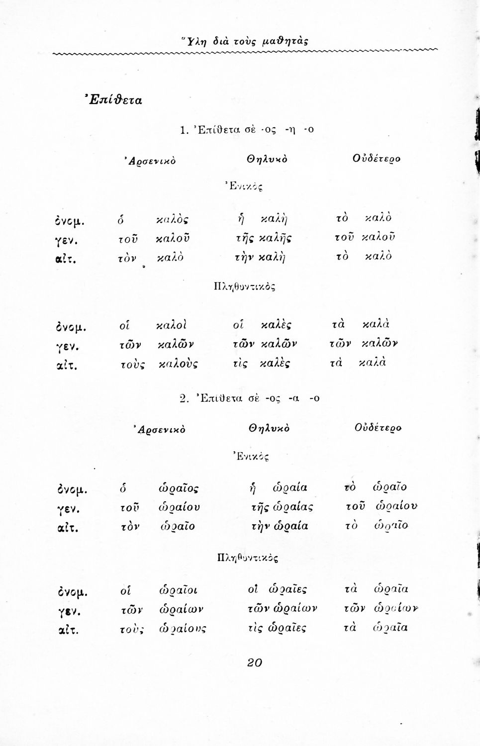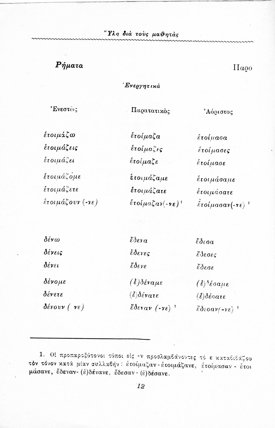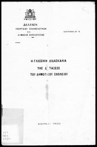 Βαθμίδα εκπαίδευσης: Πρωτοβάθμια Τάξη: Δ' Δημοτικού Μάθημα: Νέα Ελληνικά Γλώσσα: Δημοτική Παρουσίαση περιεχομένου: Έκδοση του Υπουργείου Εκκλησιαστικών και Δημόσιας Εκπαιδεύσεως που περιέχει την ύλη της γλωσσικής διδασκαλίας της Δ΄ τάξης του Δημοτικού Σχολείου. |