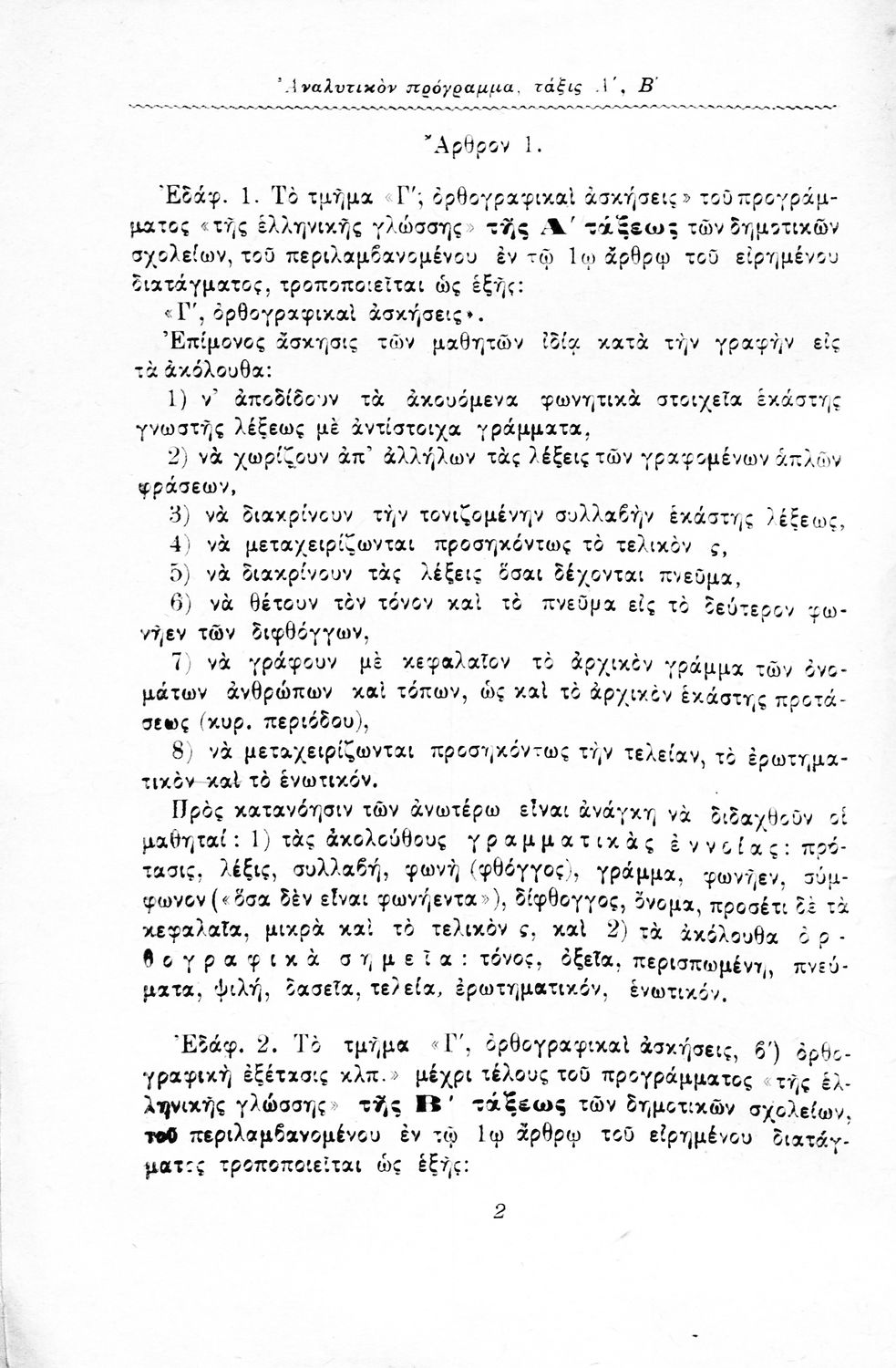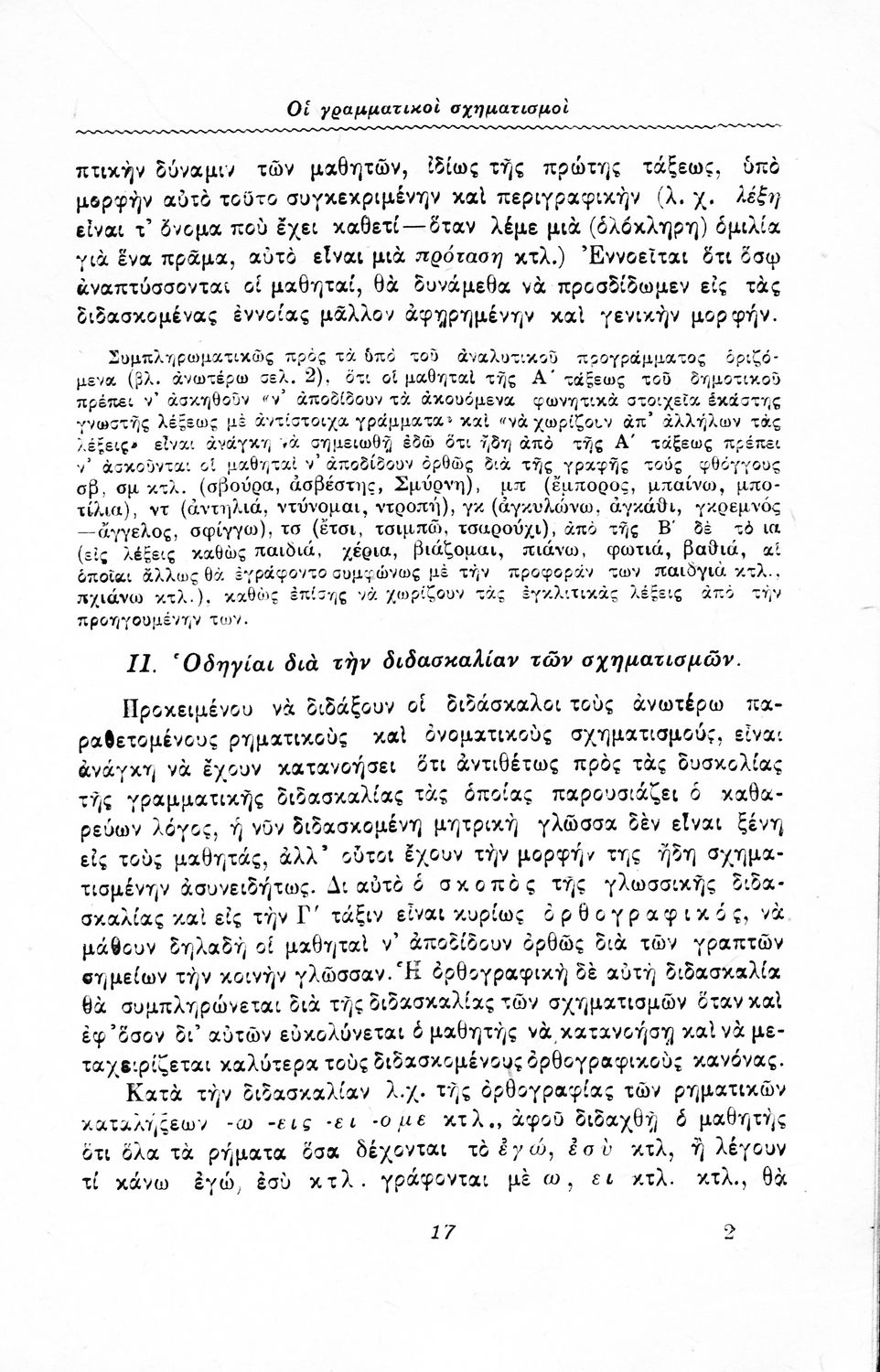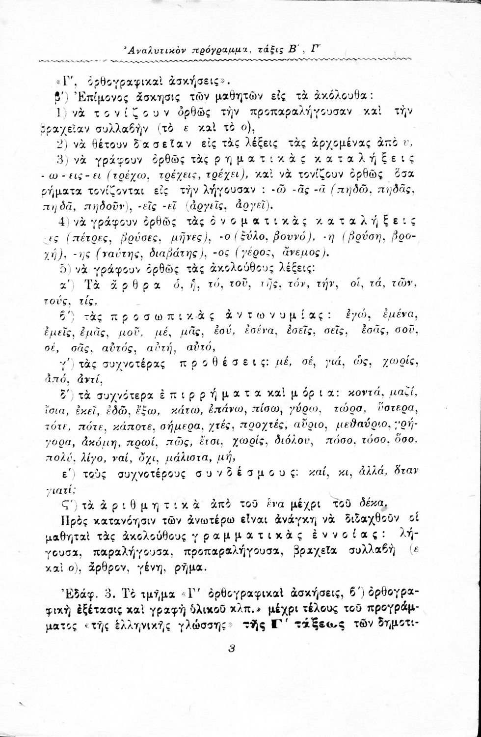Αναλυτικό πρόγραμμα για τη διδασκαλία της γραμματικής στις τρεις πρώτες τάξεις του Δημοτικού.