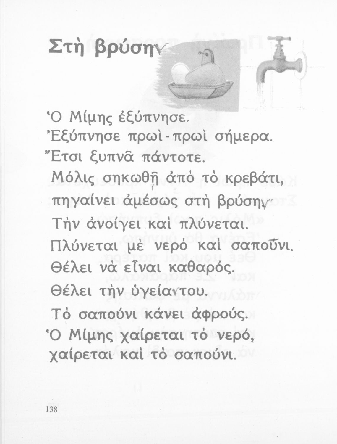 Παρουσίαση περιεχομένου: Αναγνωστικό Α΄ Δημοτικού που περιέχει γράμματα, συλλαβές, λέξεις, προτάσεις, κείμενα και ποιήματα για την εκμάθηση της Γλώσσας. Τα θέματα βασίζονται στην οικογενειακή και κοινωνική ζωή του τόπου. Ήρωες του βιβλίου ο Μίμης και η Άννα.
