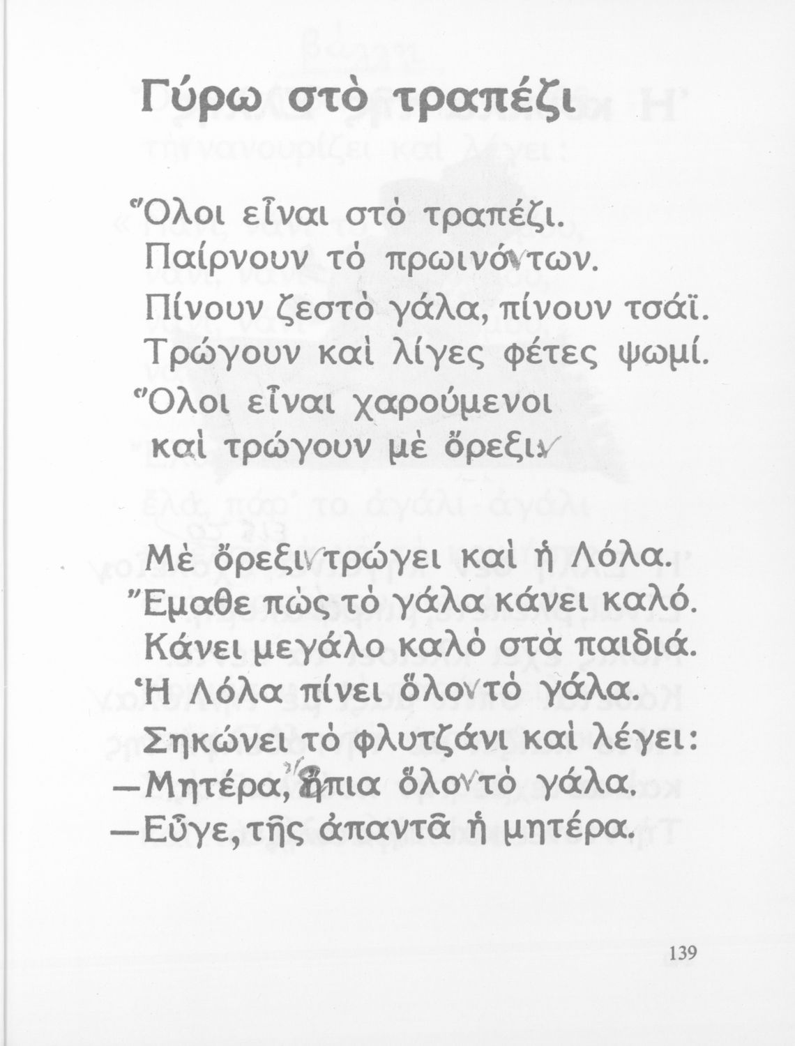 Αναγνωστικό Α΄ Δημοτικού που περιέχει γράμματα, συλλαβές, λέξεις, προτάσεις, κείμενα και ποιήματα για την εκμάθηση της Γλώσσας. Τα θέματα βασίζονται στην οικογενειακή και κοινωνική ζωή του τόπου. Ήρωες του βιβλίου ο Μίμης και η Άννα.