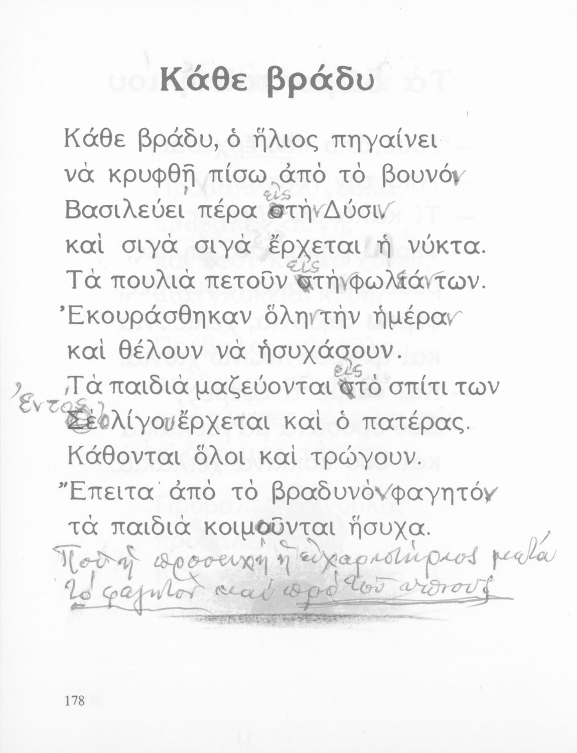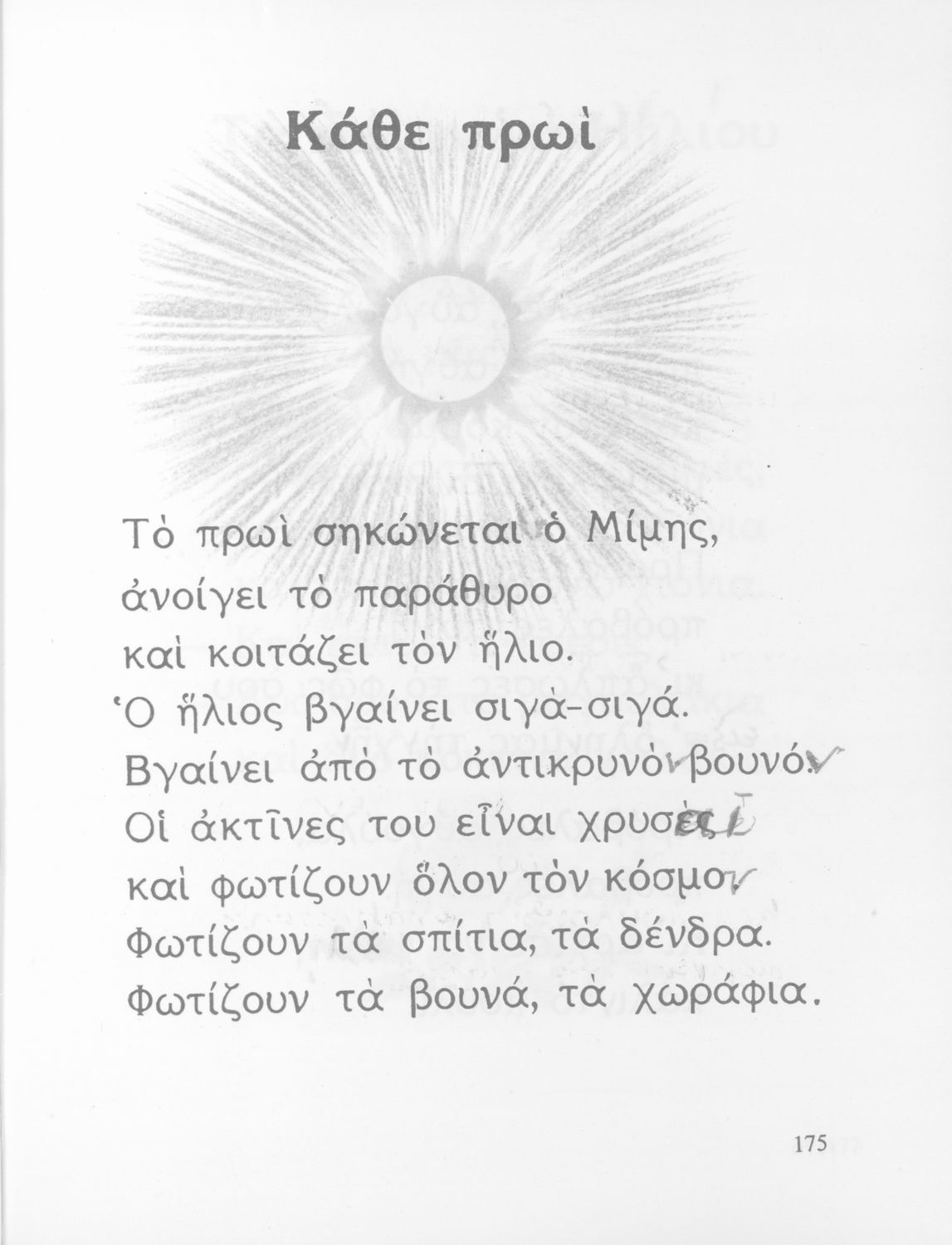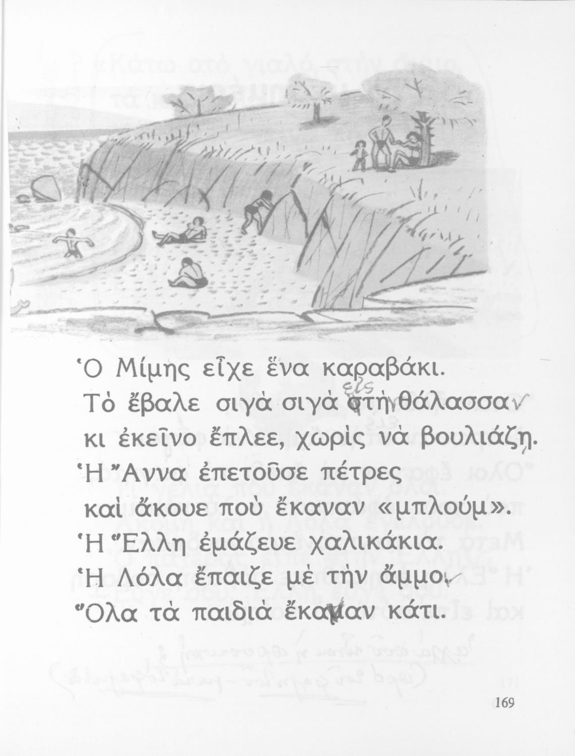 Αναγνωστικό Α΄ Δημοτικού που περιέχει γράμματα, συλλαβές, λέξεις, προτάσεις, κείμενα και ποιήματα για την εκμάθηση της Γλώσσας. Τα θέματα βασίζονται στην οικογενειακή και κοινωνική ζωή του τόπου. Ήρωες του βιβλίου ο Μίμης και η Άννα.