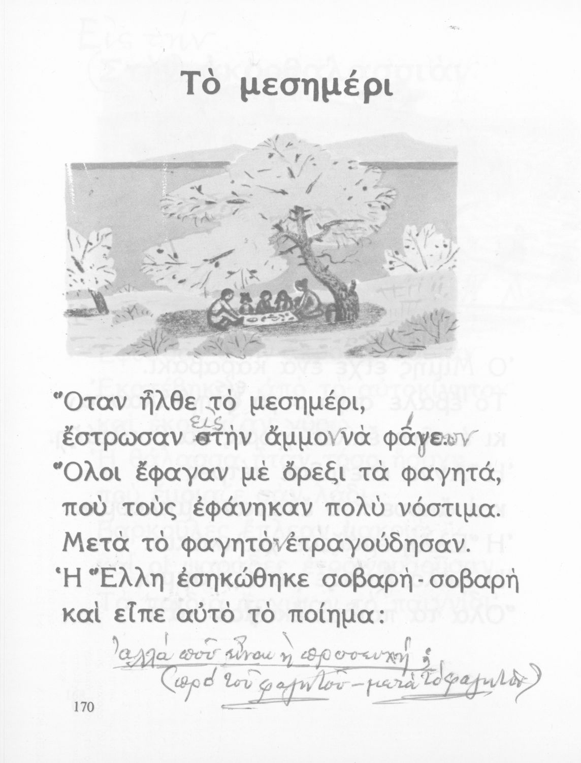 Αναγνωστικό [Α΄ ] Δημοτικού που περιλαμβάνει τα γράμματα, συλλαβές, λέξεις, και ασκήσεις συλλαβισμού.