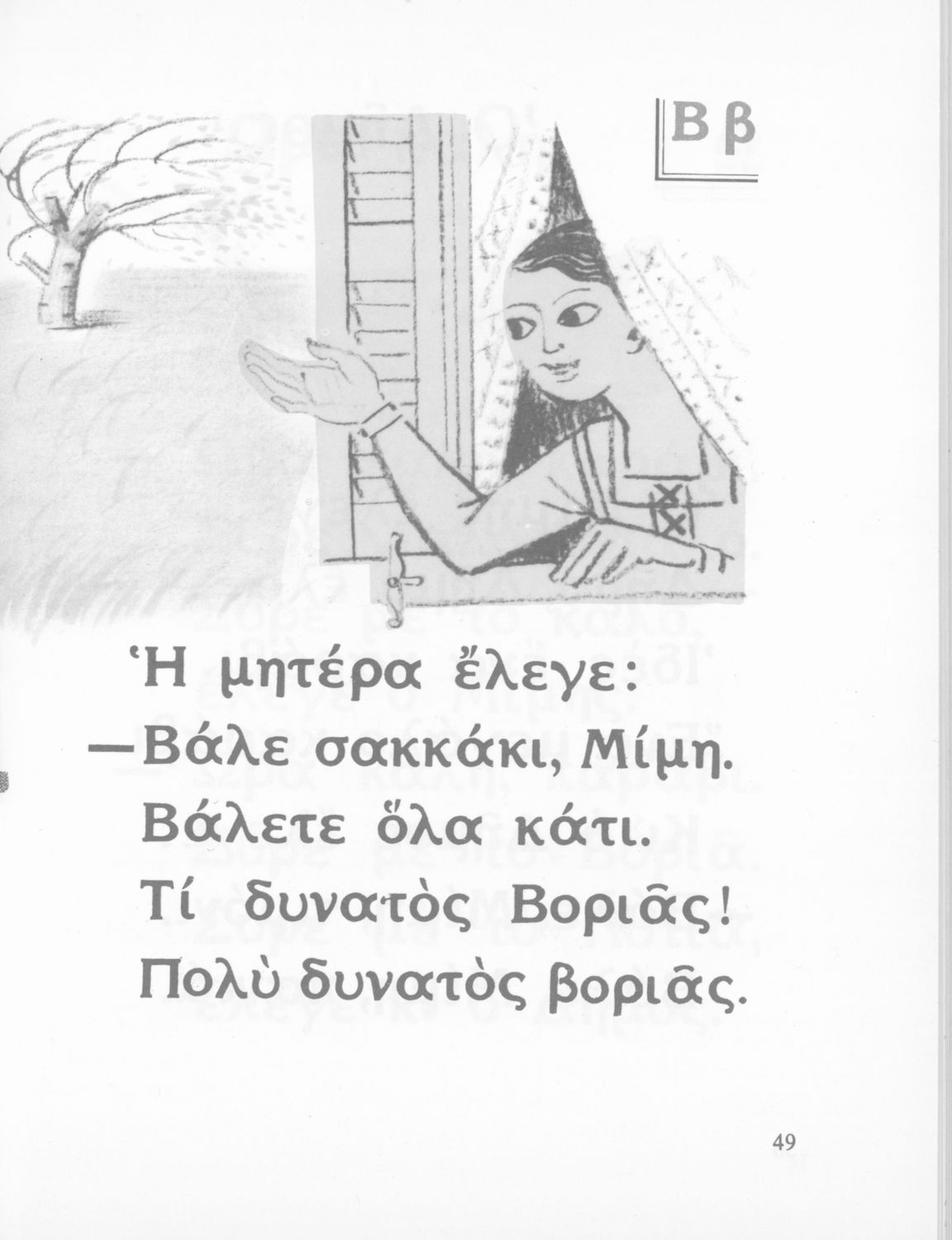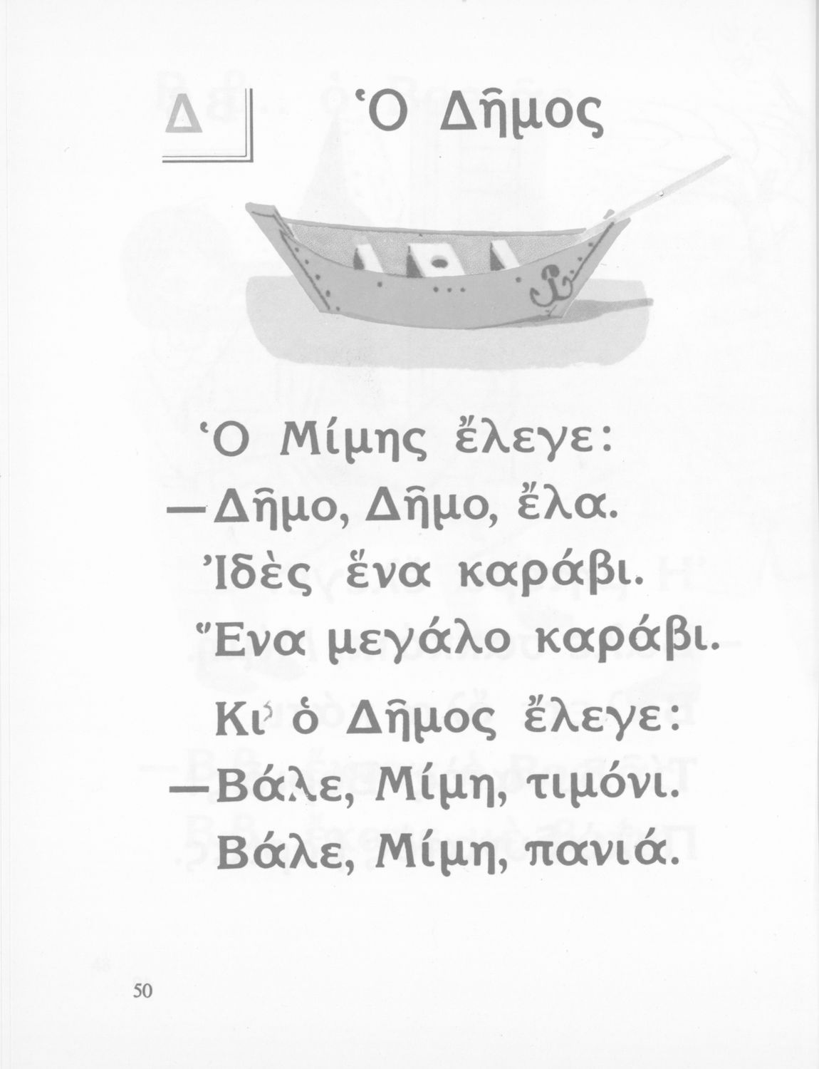 Αναγνωστικό Α΄ Δημοτικού που περιέχει γράμματα, συλλαβές, λέξεις, προτάσεις, κείμενα και ποιήματα για την εκμάθηση της Γλώσσας. Τα θέματα βασίζονται στην οικογενειακή και κοινωνική ζωή του τόπου. Ήρωες του βιβλίου ο Μίμης και η Άννα.