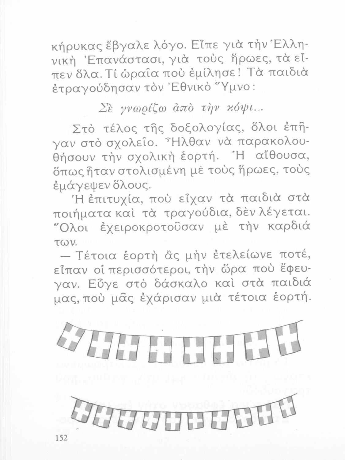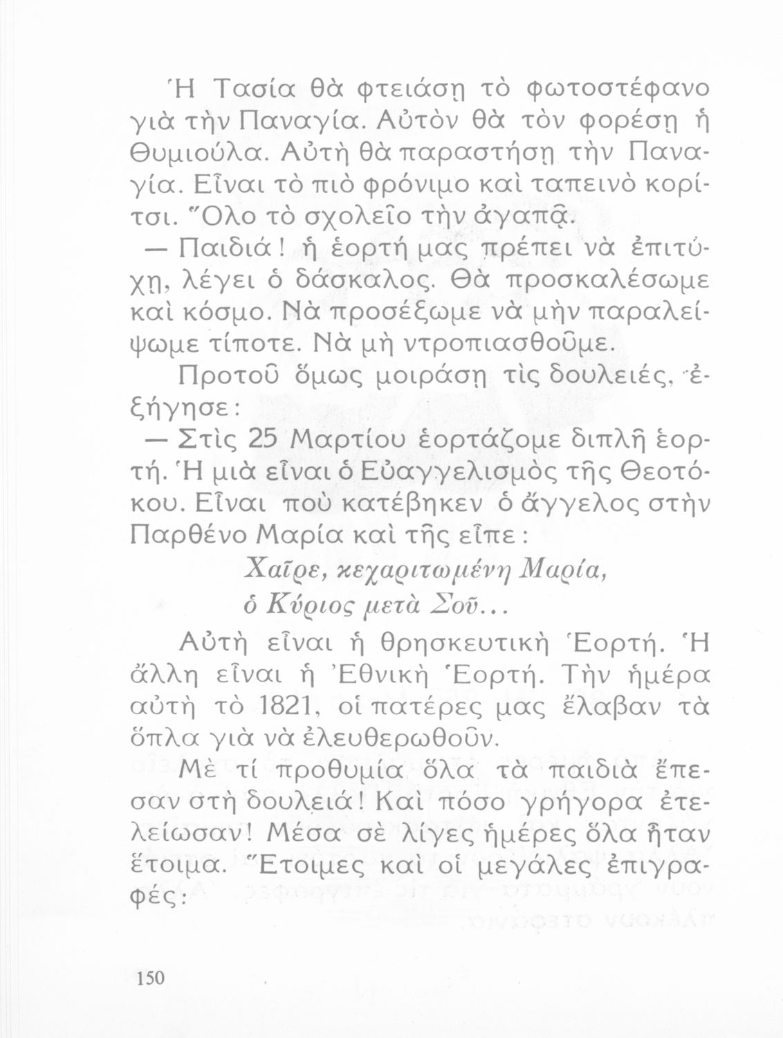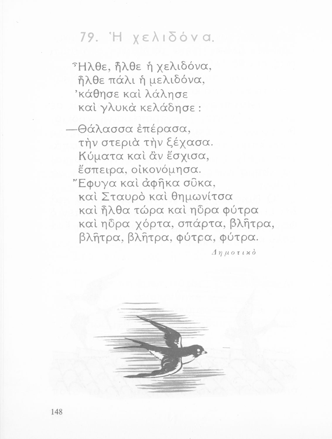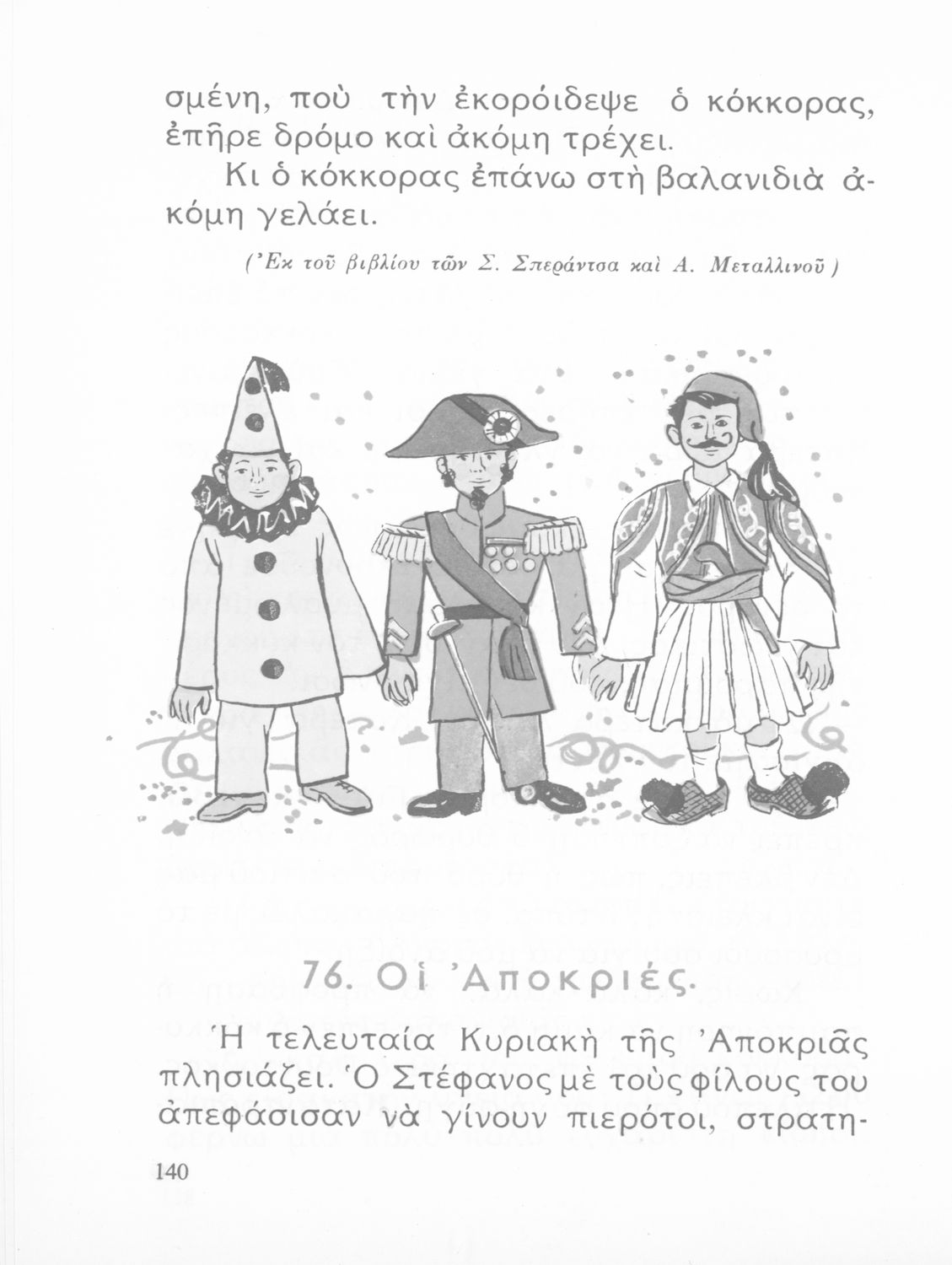 Αναγνωστικό Β' Δημοτικού που είναι χωρισμένο σύμφωνα με τις εποχές του χρόνου και περιλαμβάνει κείμενα ηθοποιητικού περιεχομένου εμπνευσμένα από τη θρησκευτική, εθνική, κοινωνική και οικογενειακή ζωή. Φέρει το σύμβολο της δικτατορίας.