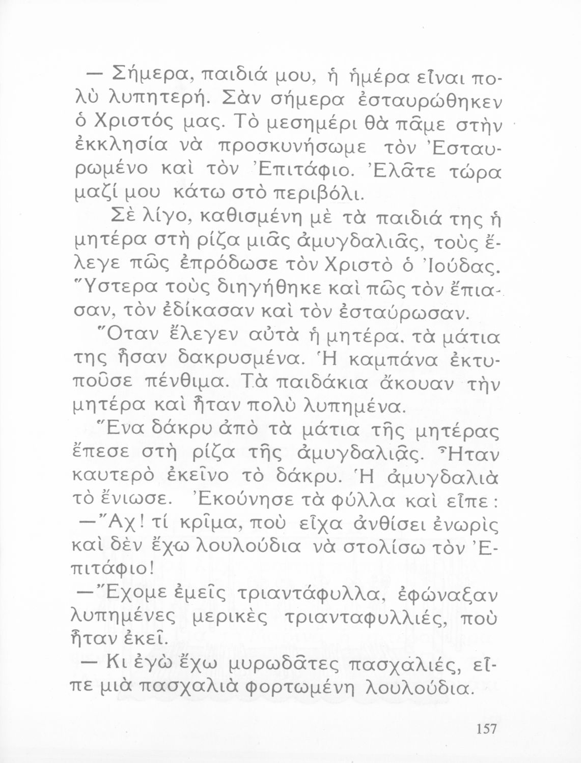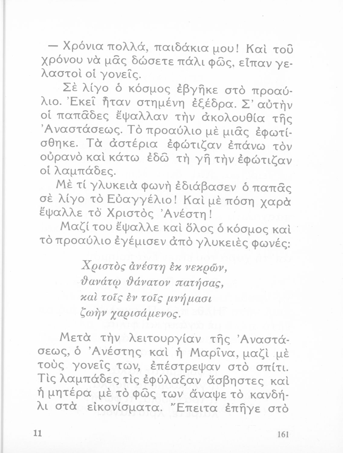 Αναγνωστικό Β' Δημοτικού που είναι χωρισμένο σύμφωνα με τις εποχές του χρόνου και περιλαμβάνει κείμενα ηθοποιητικού περιεχομένου εμπνευσμένα από τη θρησκευτική, εθνική, κοινωνική και οικογενειακή ζωή.