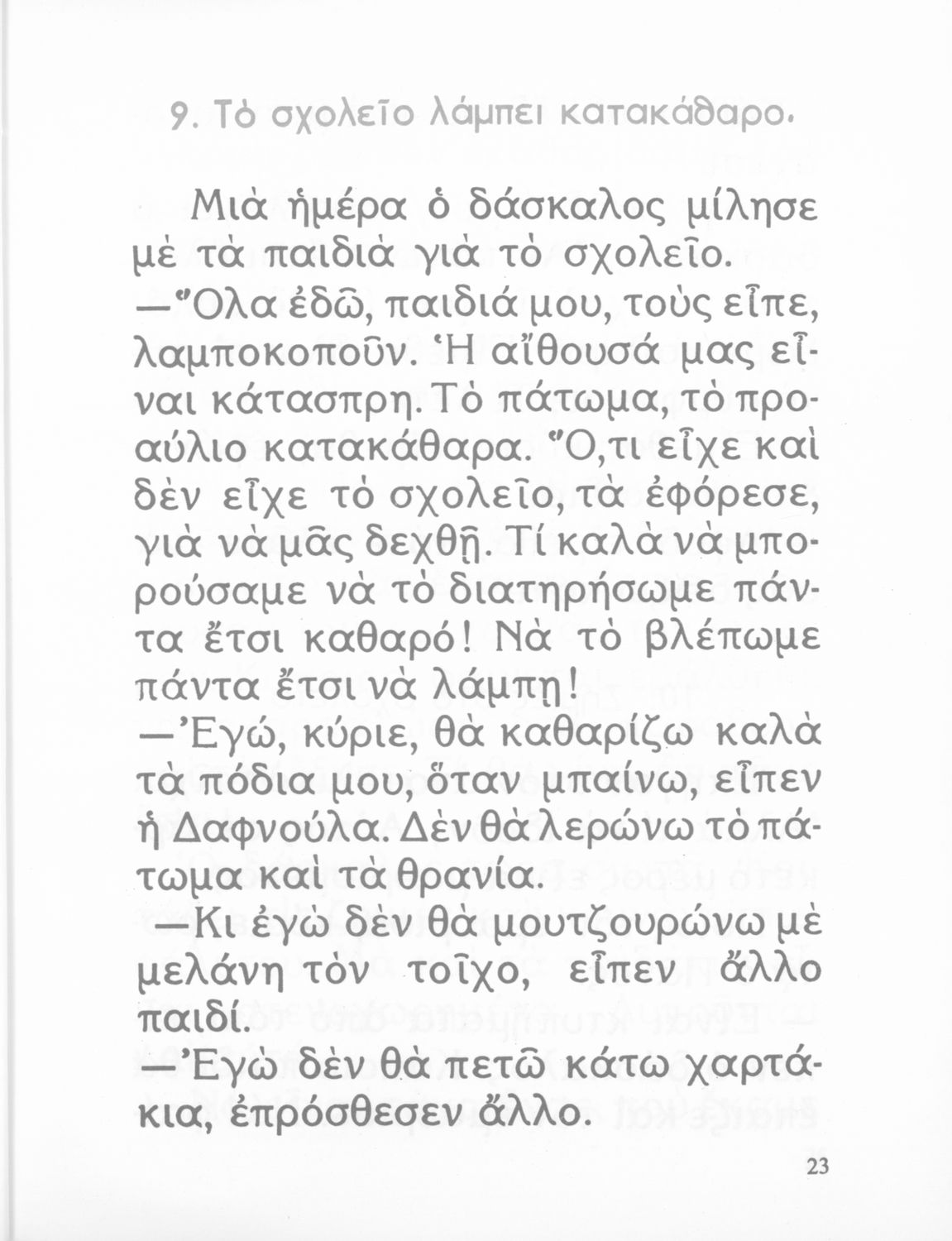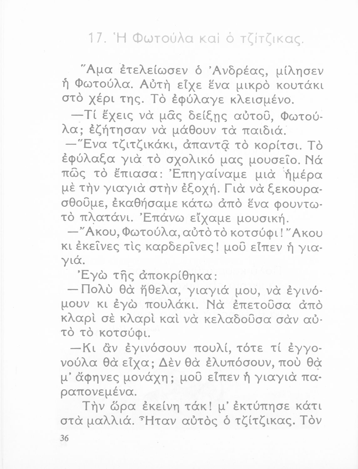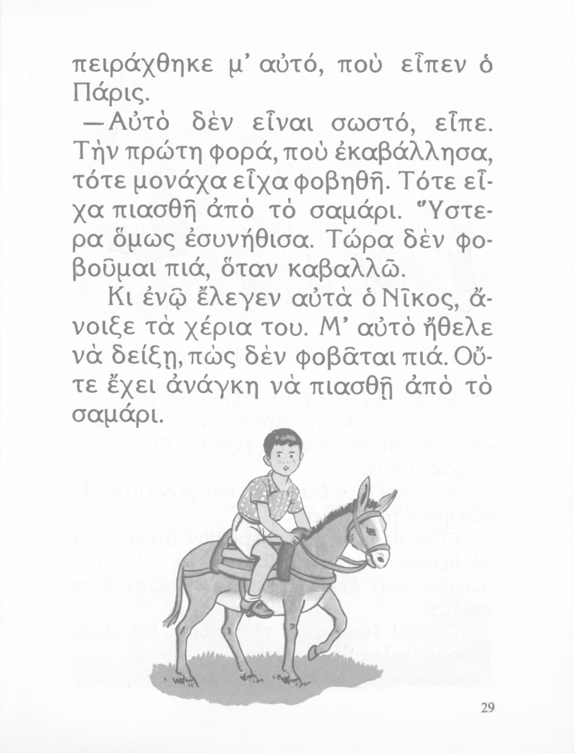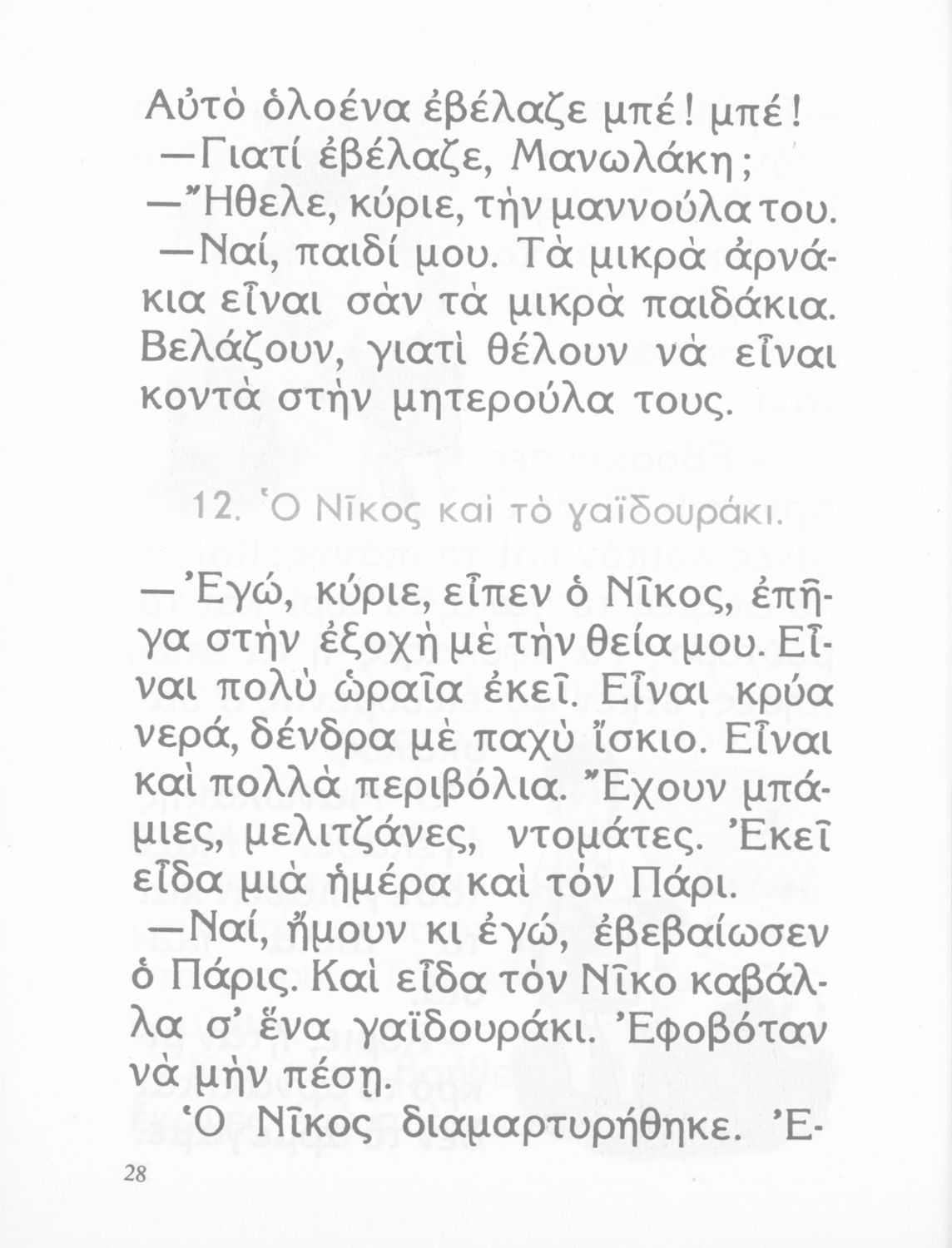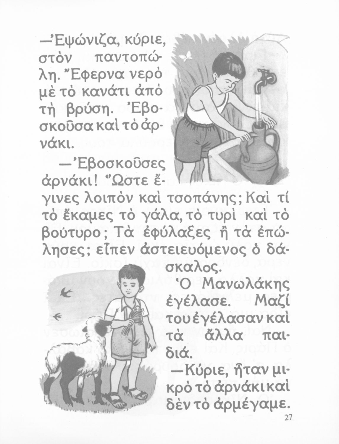 Βαθμίδα εκπαίδευσης: Πρωτοβάθμια Τάξη: Β' Δημοτικού Μάθημα: Νέα Ελληνικά Γλώσσα: Δημοτική Παρουσίαση περιεχομένου: Αναγνωστικό Β' Δημοτικού που είναι χωρισμένο σύμφωνα με τις εποχές του χρόνου και περιλαμβάνει κείμενα ηθοποιητικού περιεχομένου εμπνευσμένα από τη θρησκευτική, εθνική, κοινωνική και οικογενειακή ζωή. Φέρει το σύμβολο της δικτατορίας. |